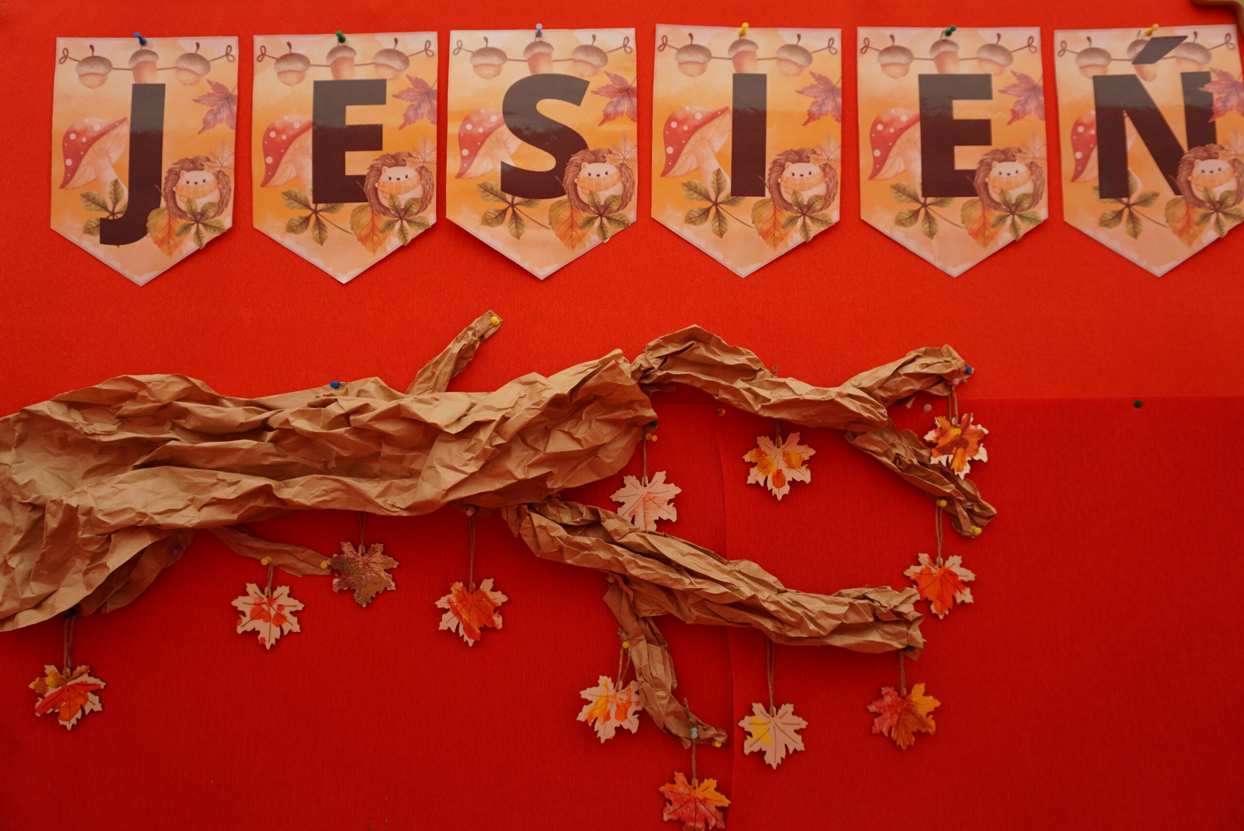 Staramy się, aby jesień dla naszych podopiecznych nie była porą roku ponurą i smutną, ale czasem pełnym kolorów i radosnych zabaw. Dajemy dzieciom możliwość uczestnictwa w różnych aktywnościach zabawowych: ruchowych, z wykorzystaniem muzyki, manipulacyjnych. Wprowadzamy zabawy dydaktyczne, podczas których dzieci poszerzają wiedzę o świecie. Zapoznajemy z oznakami jesieni (kolorowe liście, kasztany, żołędzie), uczymy piosenek i wierszyków o tematyce jesiennej.