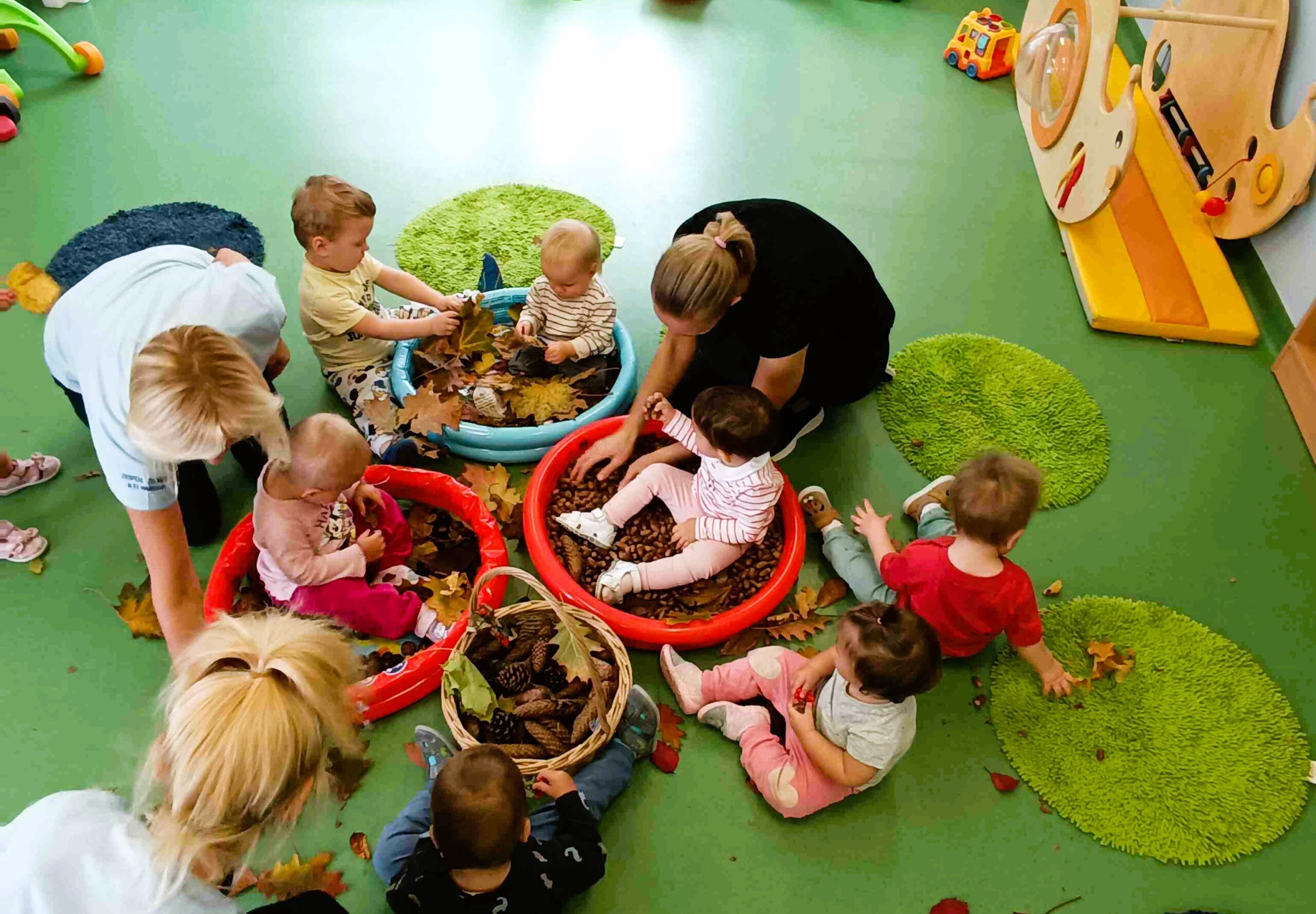 Nie brakowało również wspólnych zabaw ruchowych, muzycznych oraz sensorycznych, które rozwijały zmysły i wyobraźnię najmłodszych.