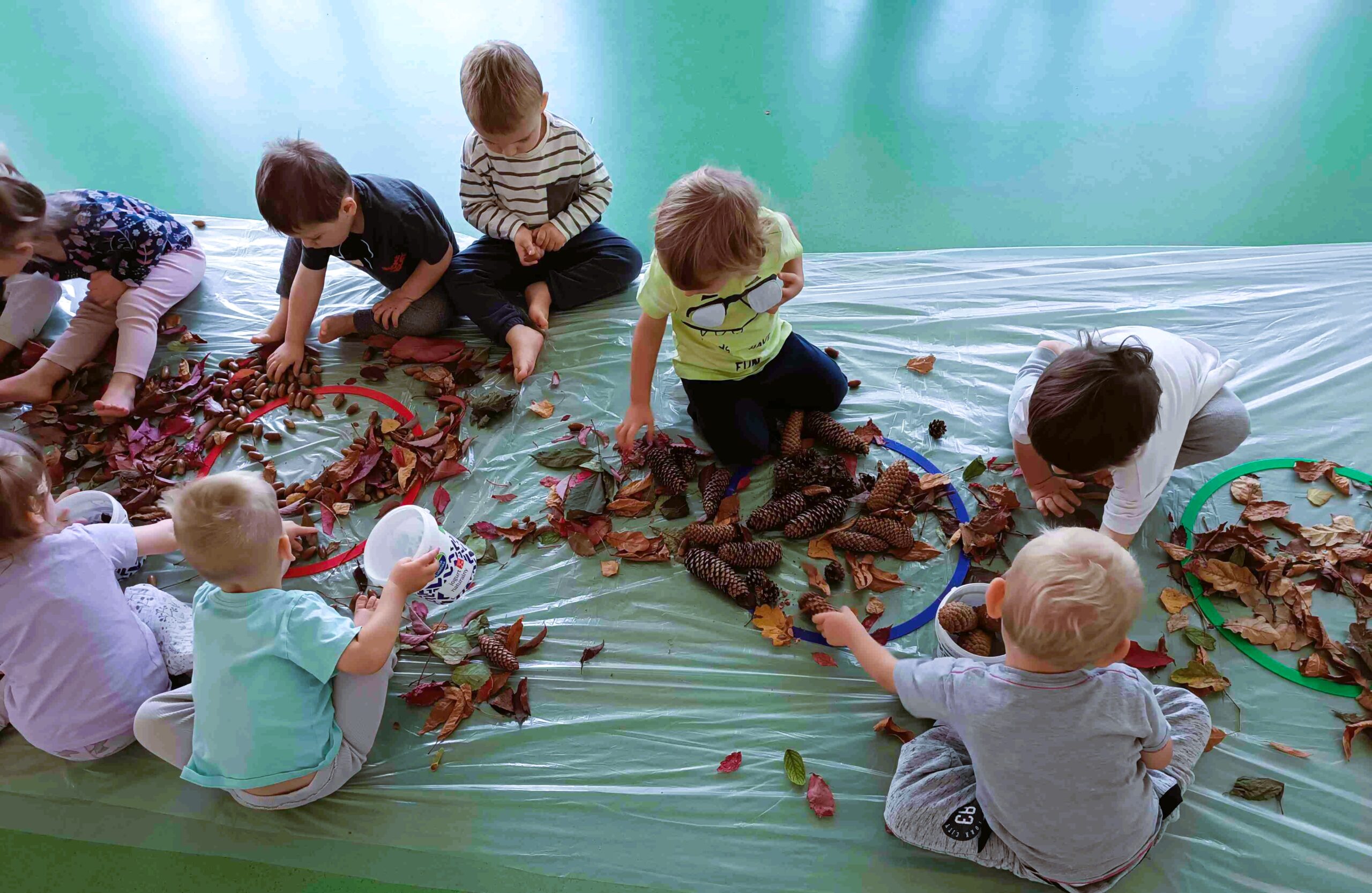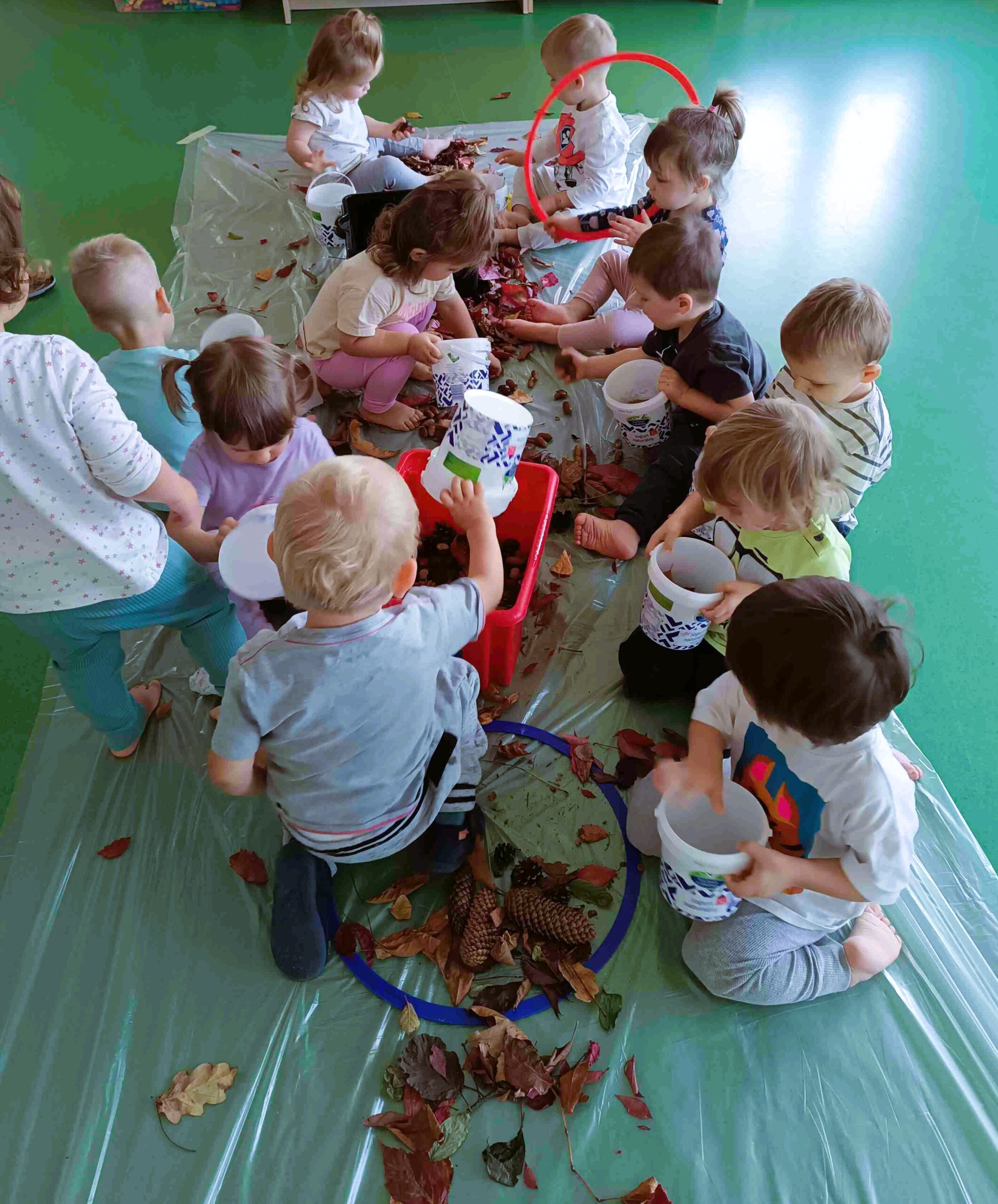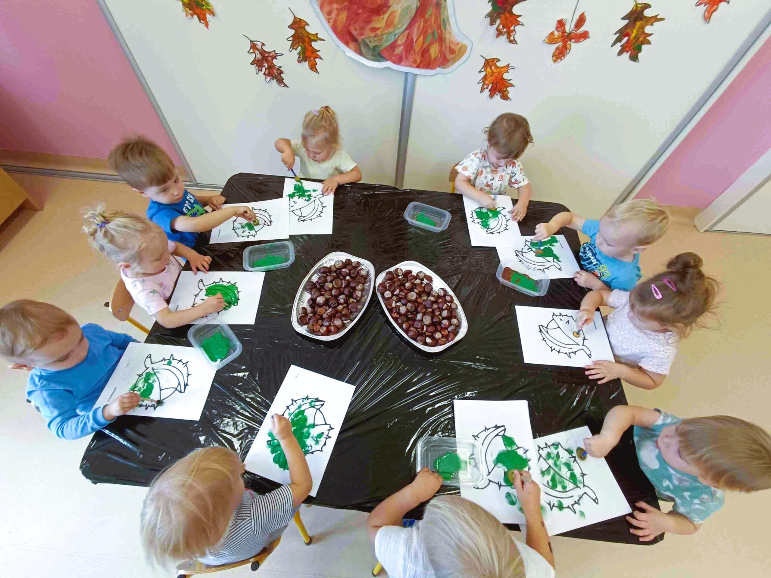 Dzieci odkrywały uroki tej pięknej pory roku – obserwowały zmieniającą się przyrodę i tworzyły prace plastyczne z darów jesieni 🙂