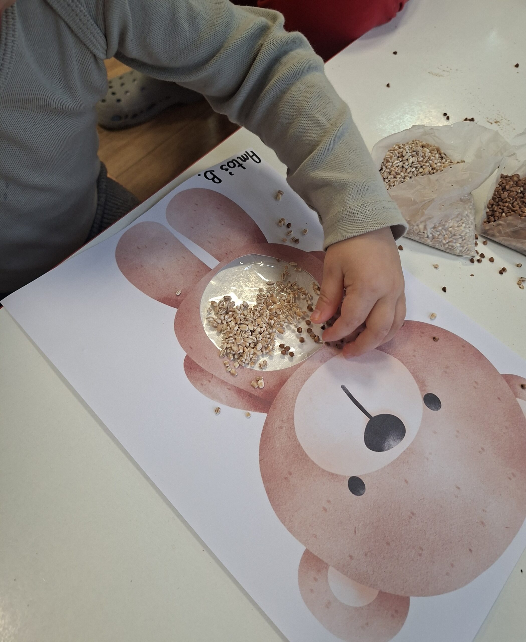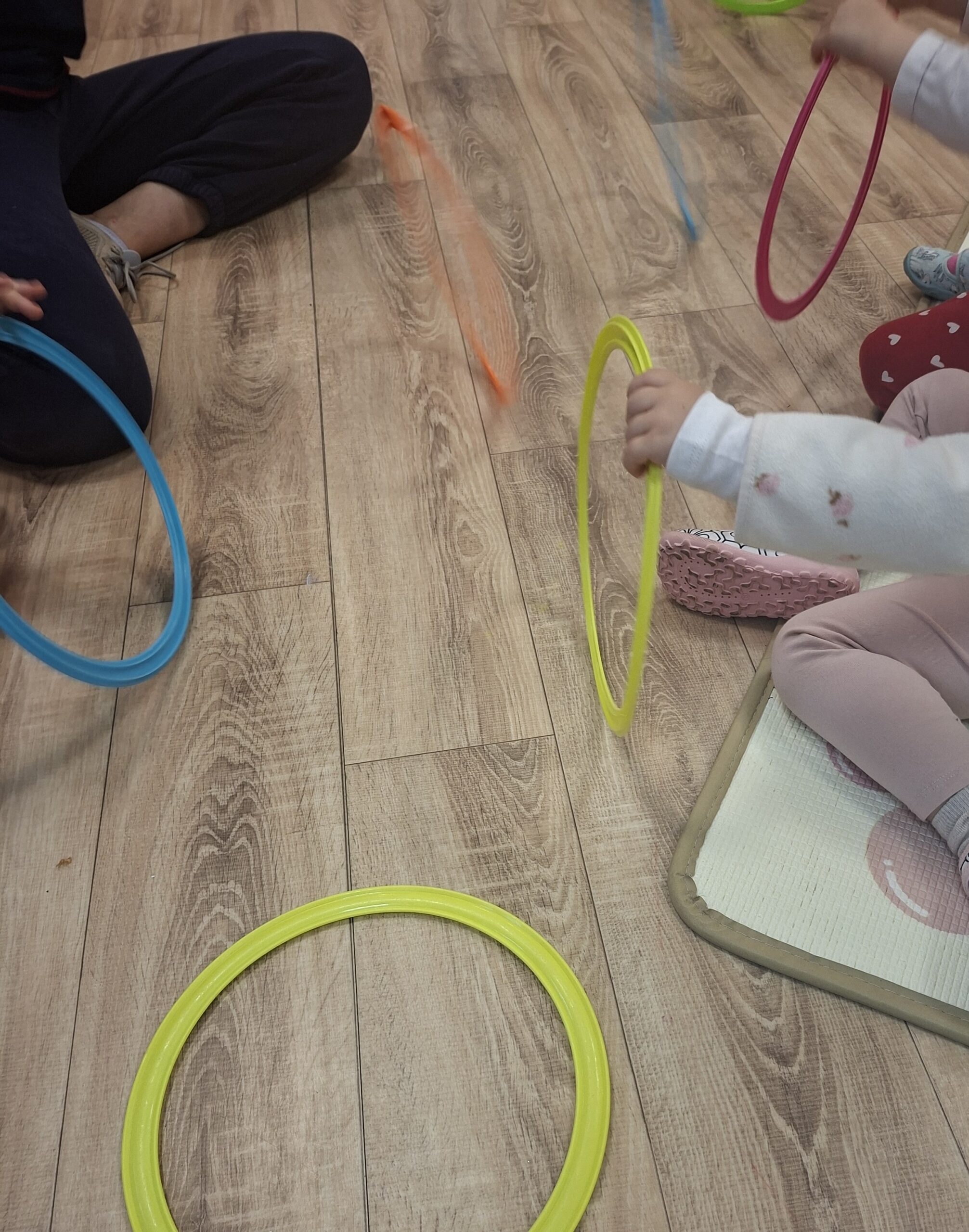 W trakcie zabaw rozwijających spostrzegawczość dzieci z wielkim zaangażowaniem odkrywały znikające prezenty, a podczas zajęć sensorycznych świetnie bawiły się folią malarską i kulami styropianowymi, poznając różne faktury i bodźce.