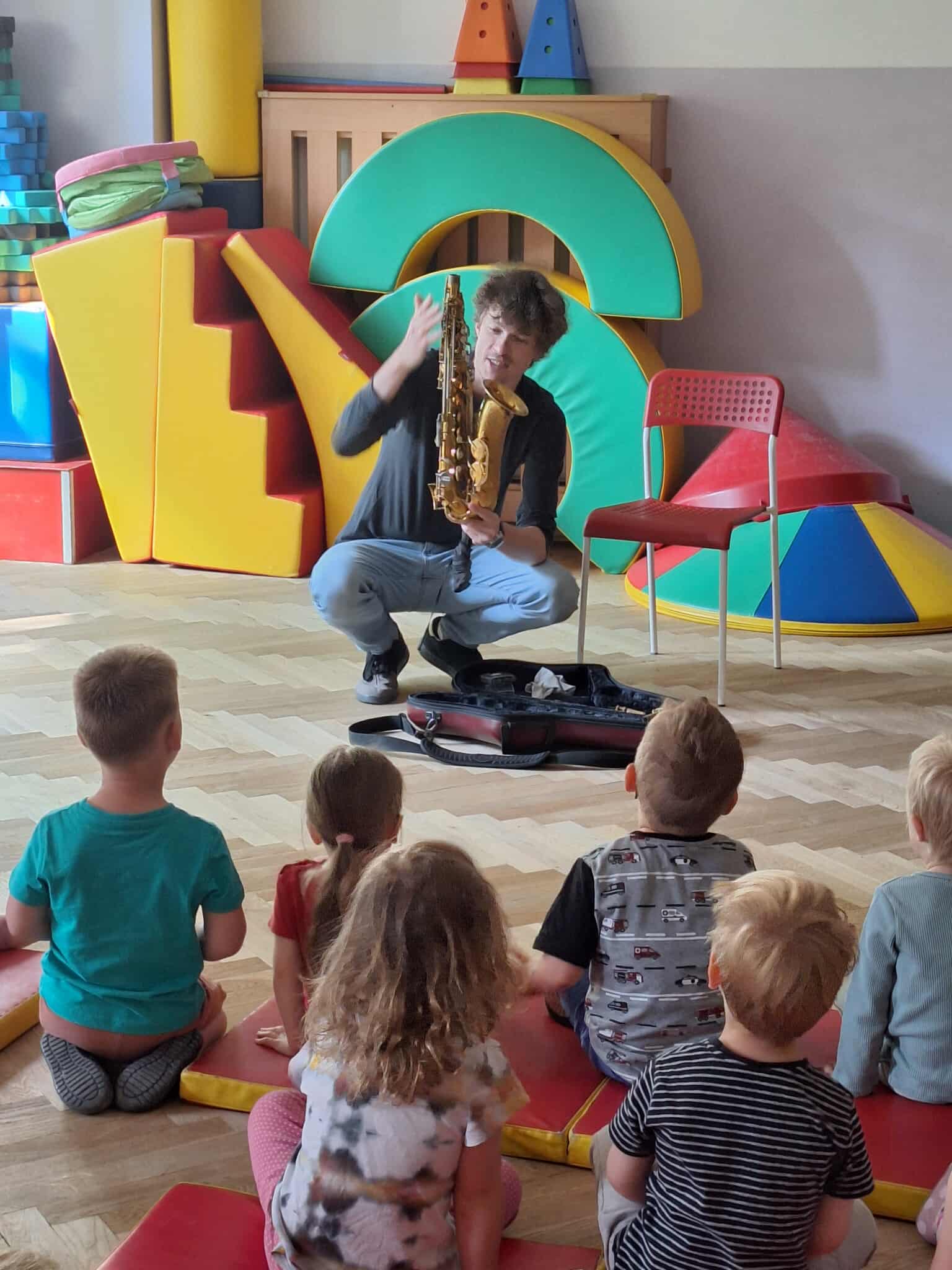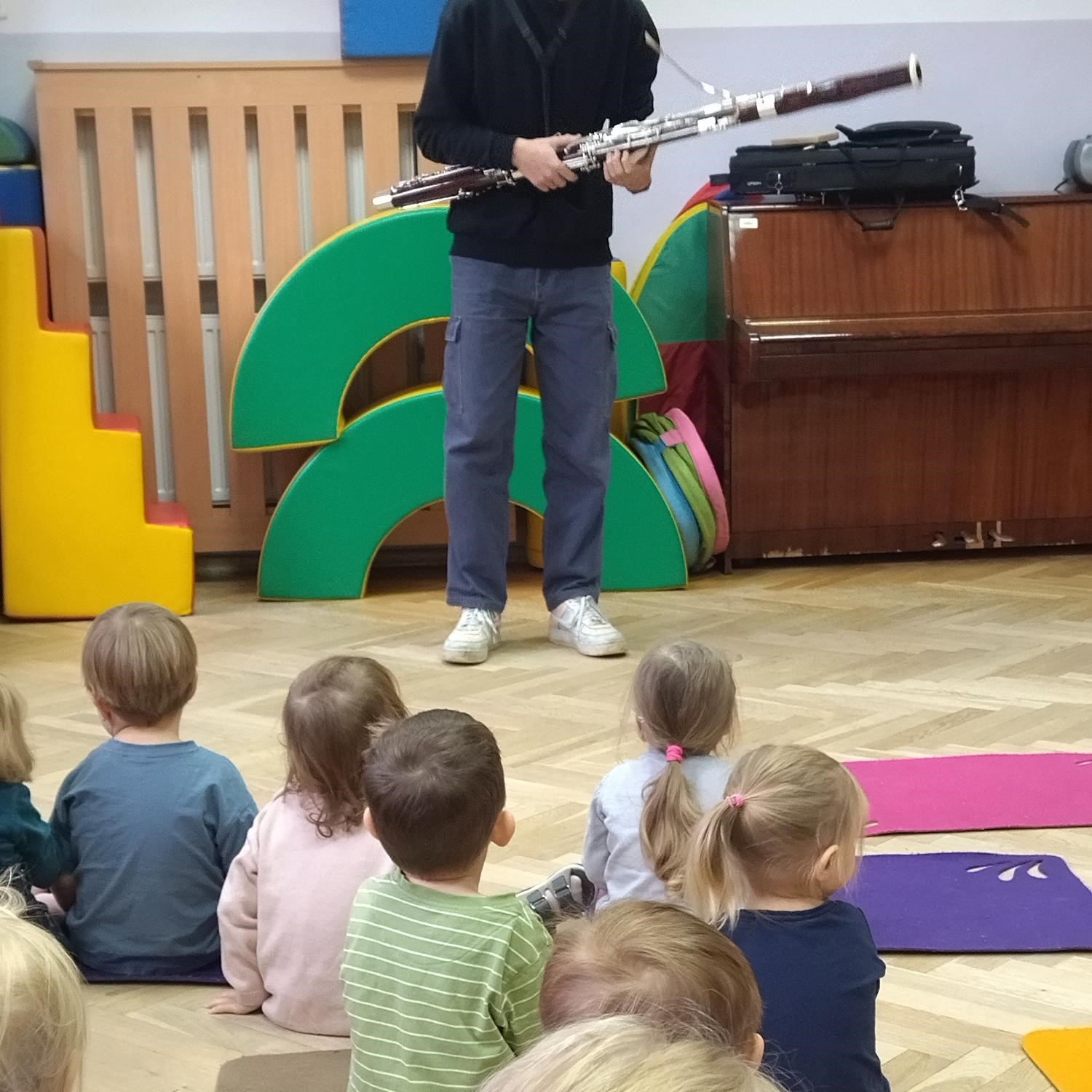 Za pośrednictwem artystów JMJ Royal Spółka Z o.o. dzieci poznały instrumenty muzyczne; waltornie, klarnet, fagot.