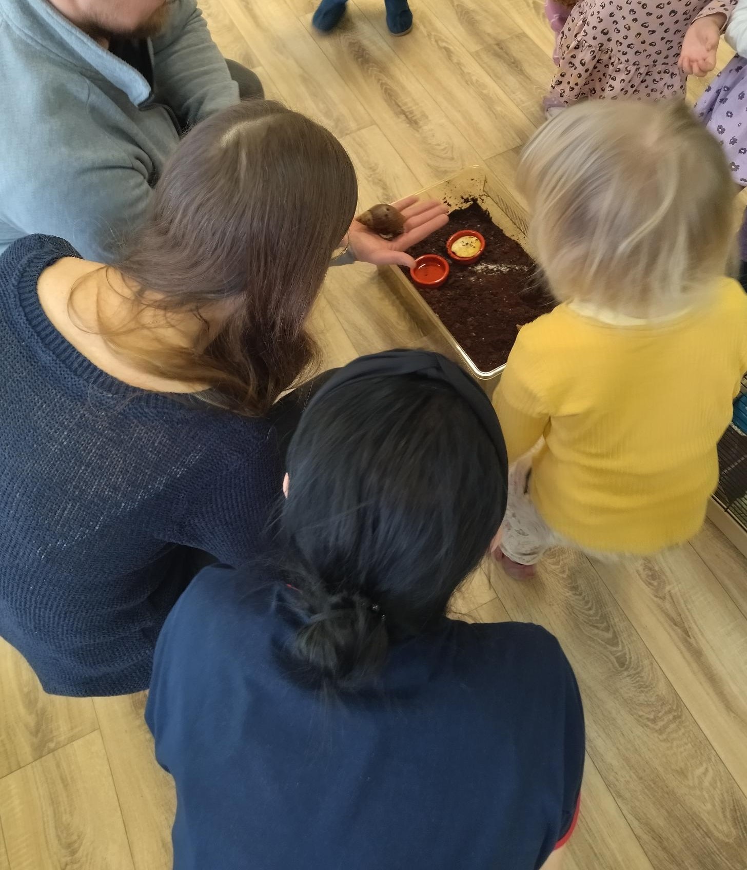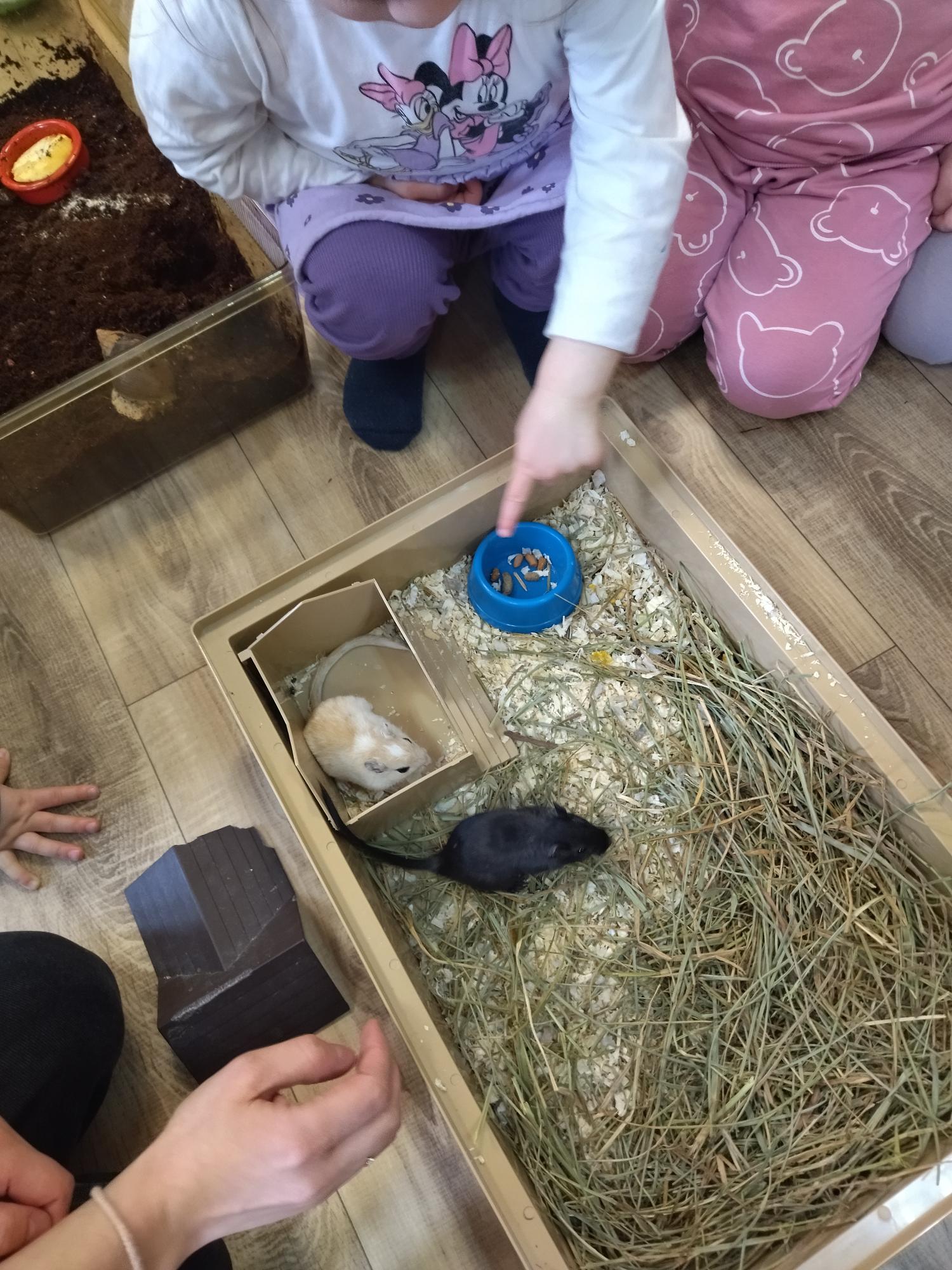 – spotkanie dzieci ze zwierzakami, które gościły w żłobku dzięki zaangażowaniu rodziców ( myszki, ślimaki, świnki morskie),