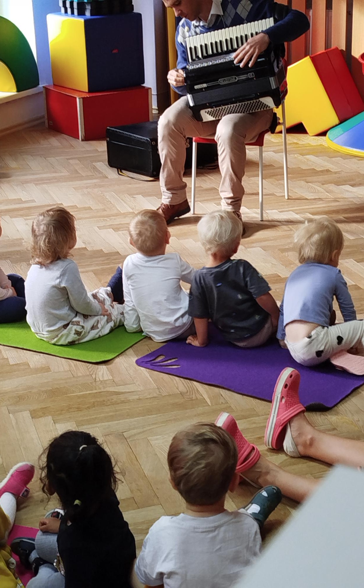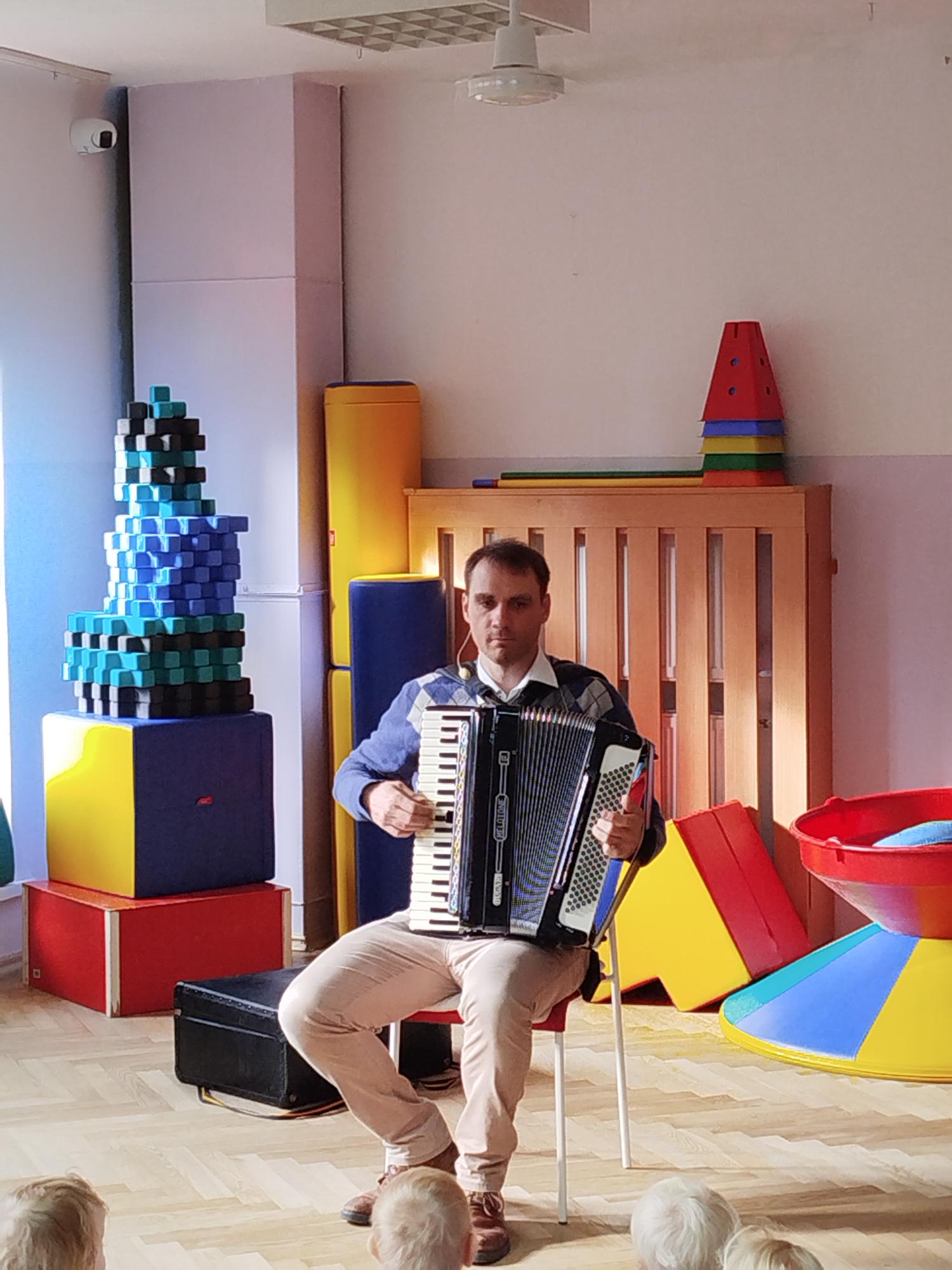 - w naszych zabawach towarzyszyły nam instrumenty i muzyka. Odwiedził nas muzyk, który opowiedział nam o akordeonie i zagrał dla nas koncert na tym ciekawym instrumencie