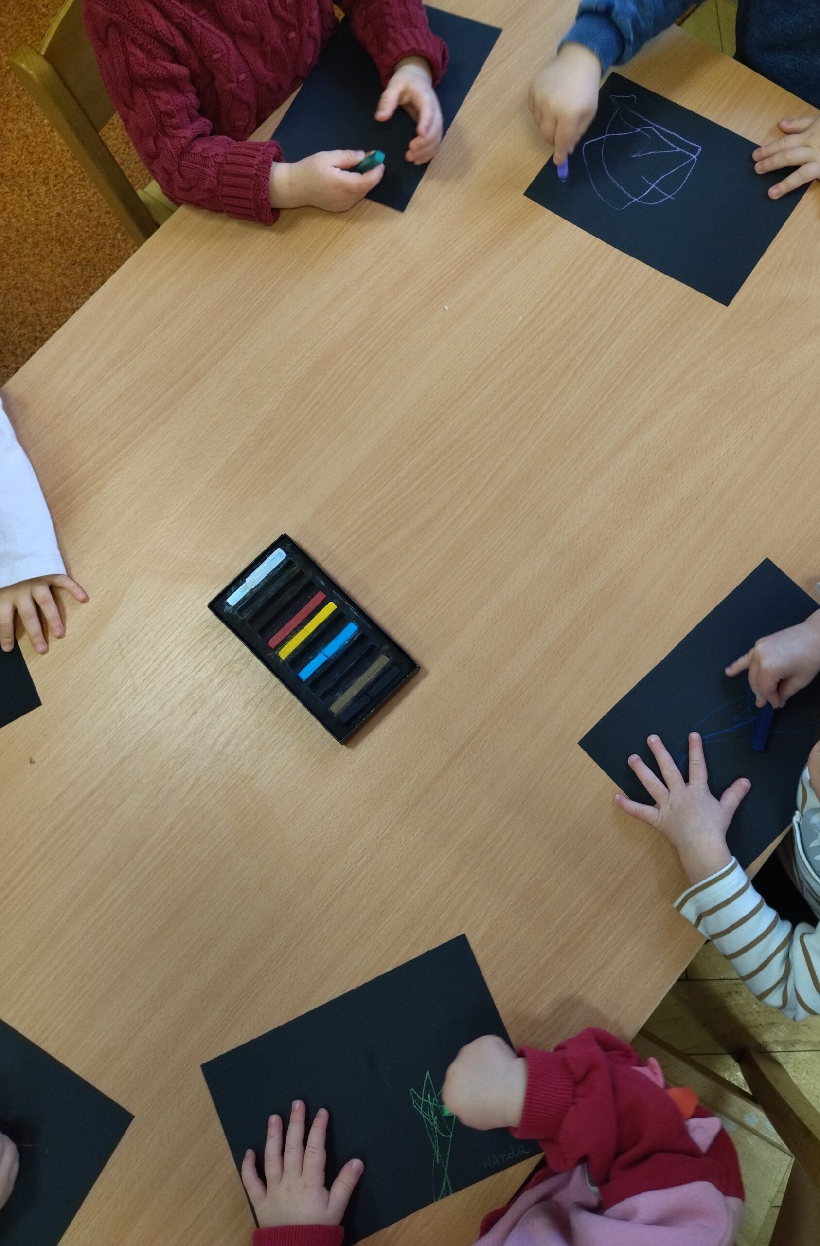 Ważnym elementem była także aktywność twórcza – dzieci malowały pastelami „Mieszkańców krainy lodu”, a także spontanicznie tworzyły prace plastyczne przy muzyce klasycznej, słuchając „Walca kwiatów”. Zajęcia te sprzyjały wyrażaniu emocji poprzez sztukę.