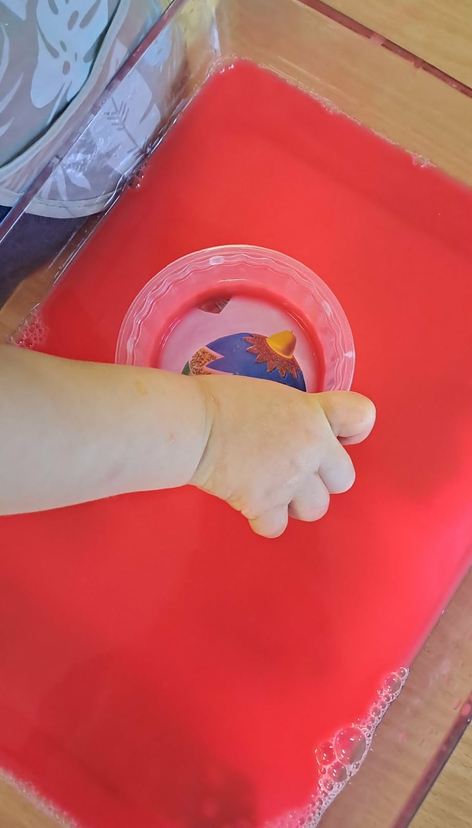 - zabawy z wodą przy stoliku – odnajdywanie elementów świątecznych zanurzonych w kolorowej wodzie