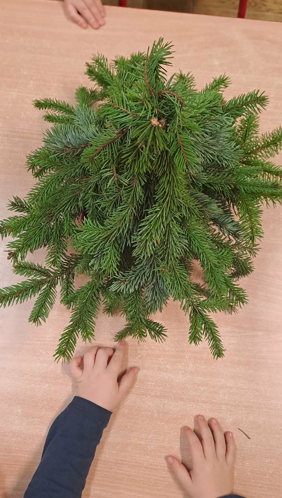 - wspólne wykonanie i ubieranie małej choinki z żywych gałązek.
