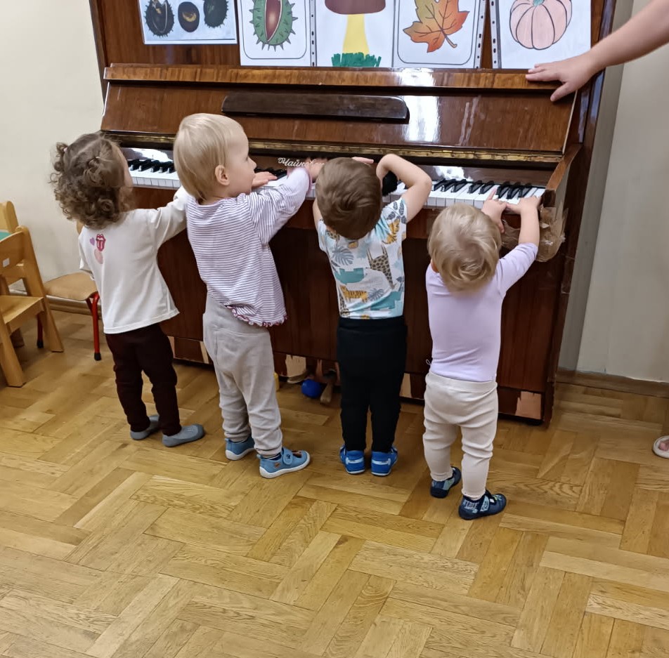 - zabawy muzyczno-ruchowe przy jesiennych utworach; „Kapu, kap”; „Poszła Ola na spacerek”, „Idą dzieci …” itp. z wykorzystaniem różnych instrumentów