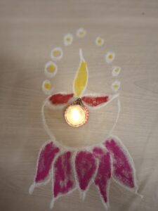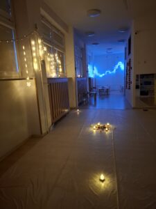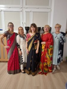 Pierwszym spotkaniem przenieśliśmy się w świat kultury hinduskiej. Symbolicznie obchodziliśmy Święto Diwali czyli Święto Światła. Cała oprawa tego święta jest bogata w kwiaty, światło i tradycyjne indyjskie śłodkości. Tak też było i u nas, a oprócz tego tradycyjne stroje, w które również personel żłobka został przebrany…oj co to się działo 😉