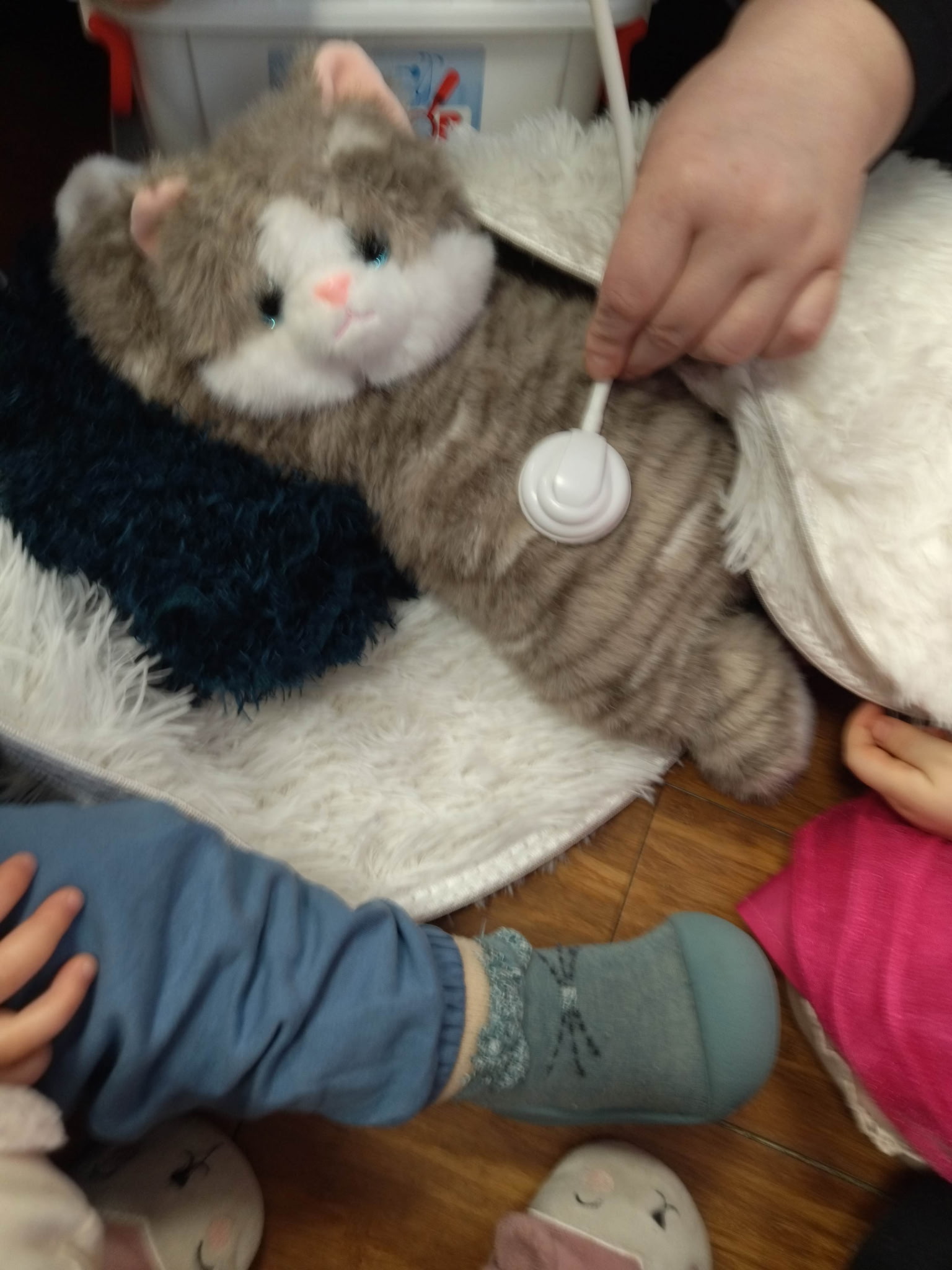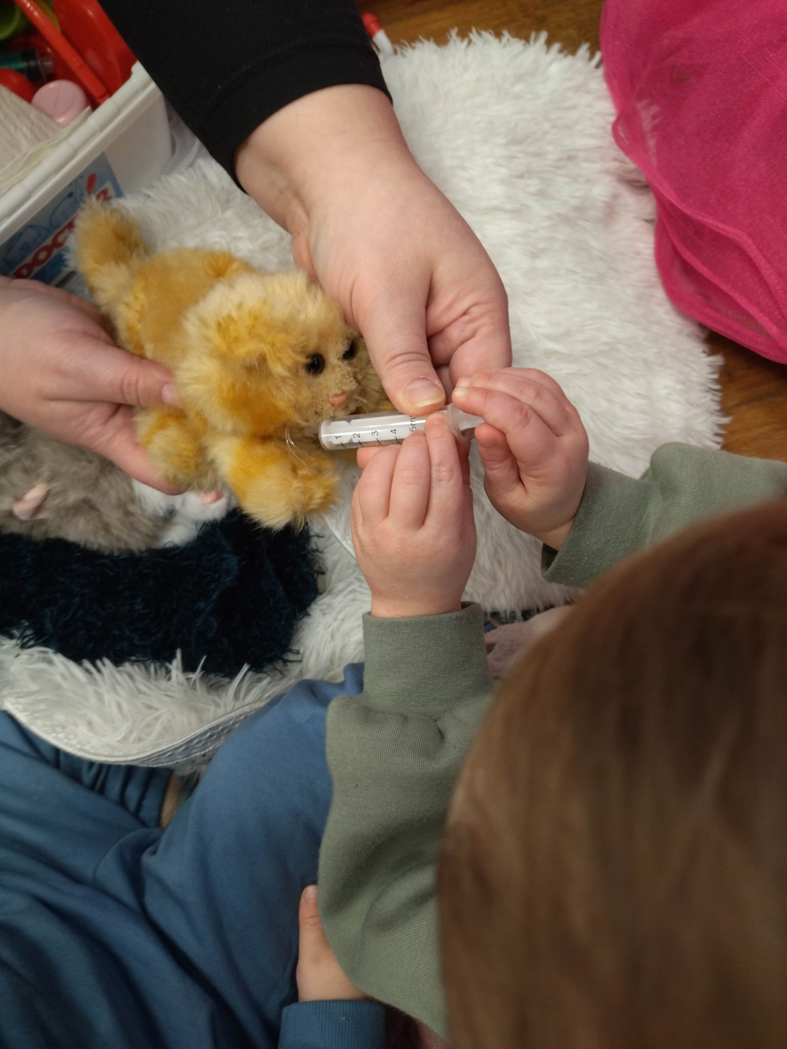 – zabawy sensoryczne – ,,Głaskanie kota ‘’ wykorzystywanie futrzanych dywaników lub maskotek
