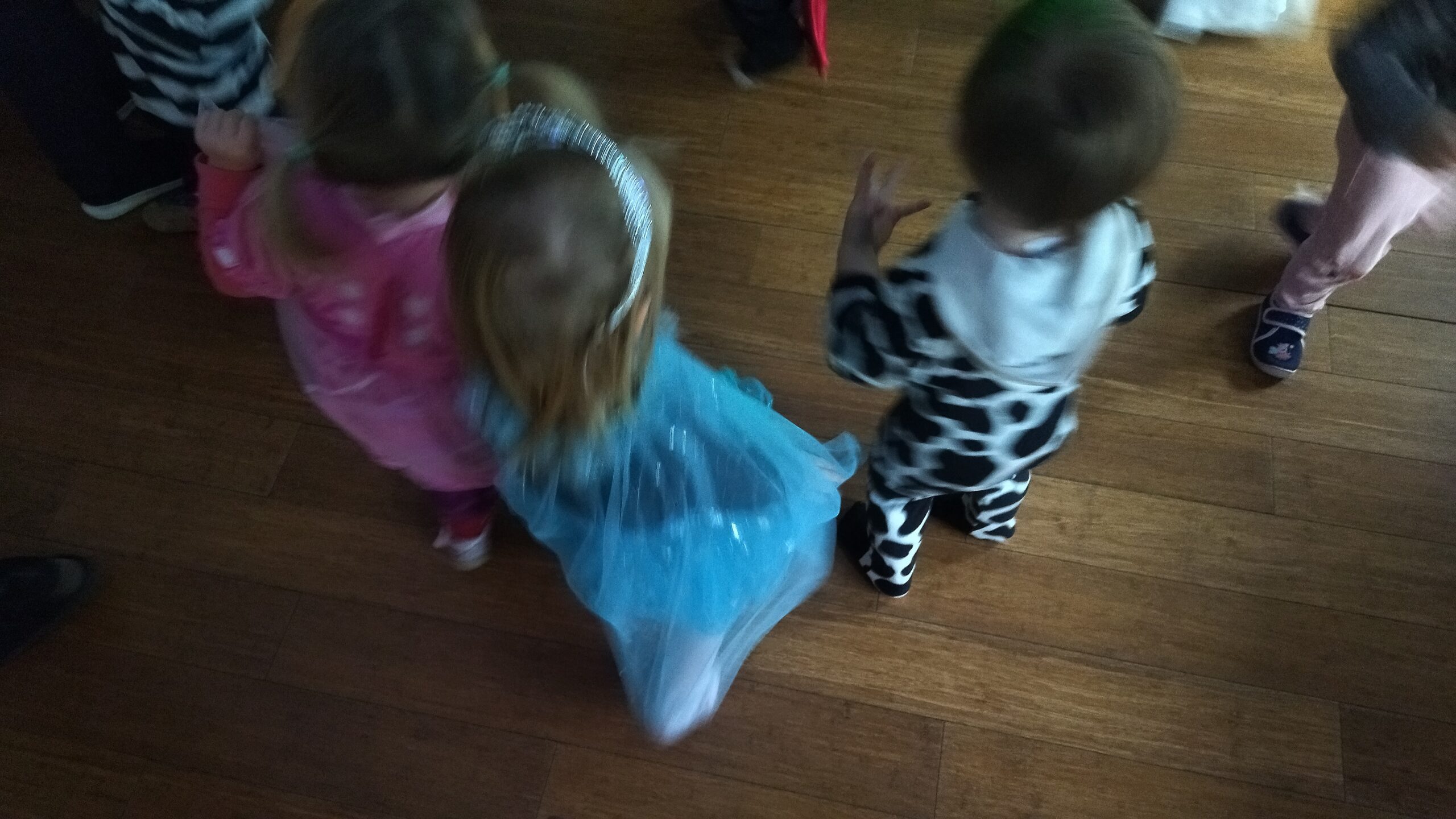 – zabawy ruchowe przy muzyce z zastosowaniem bibuły , balonów oraz obręczy