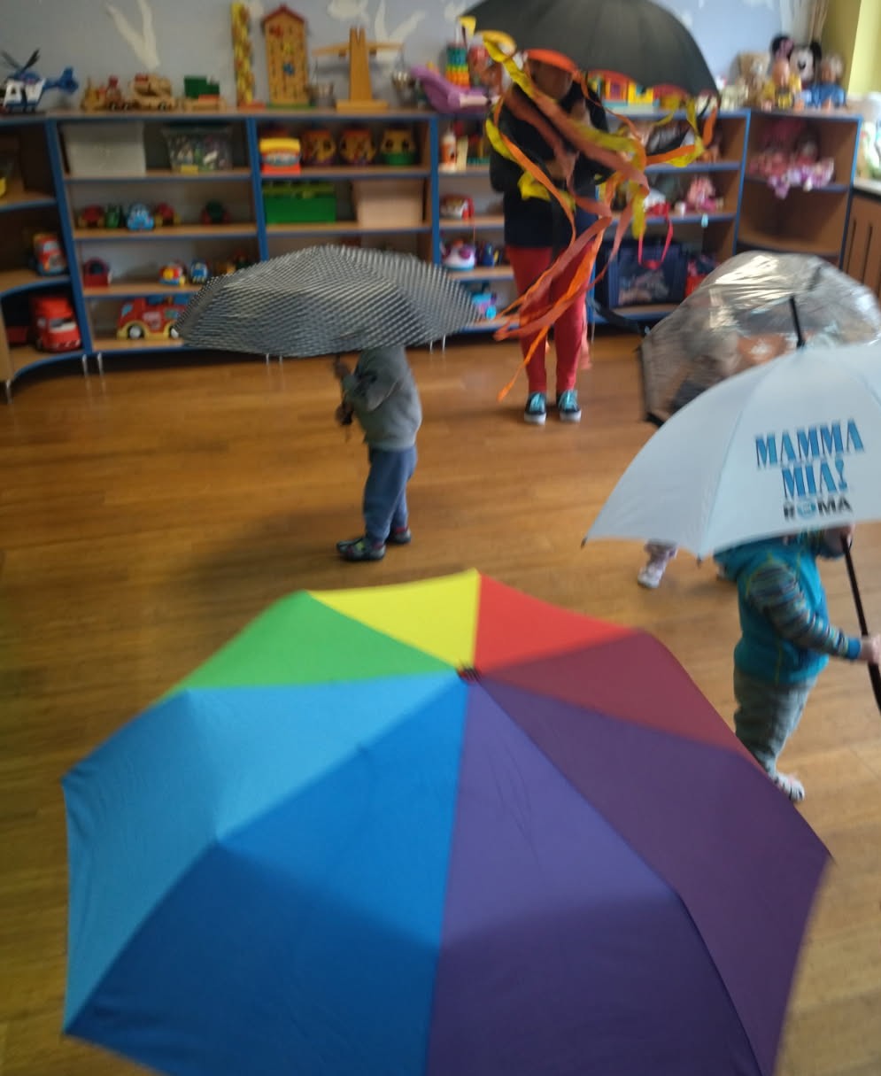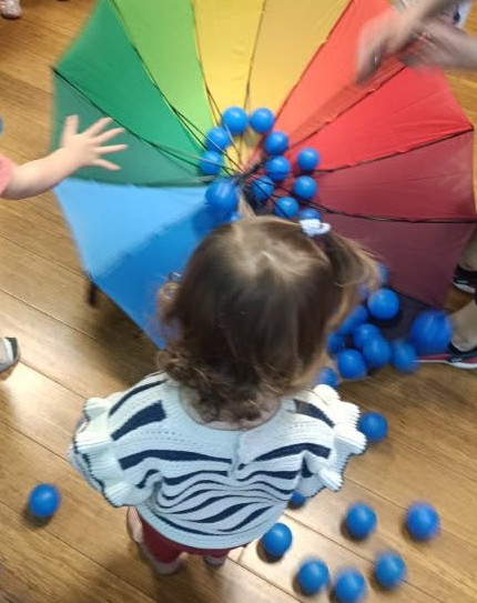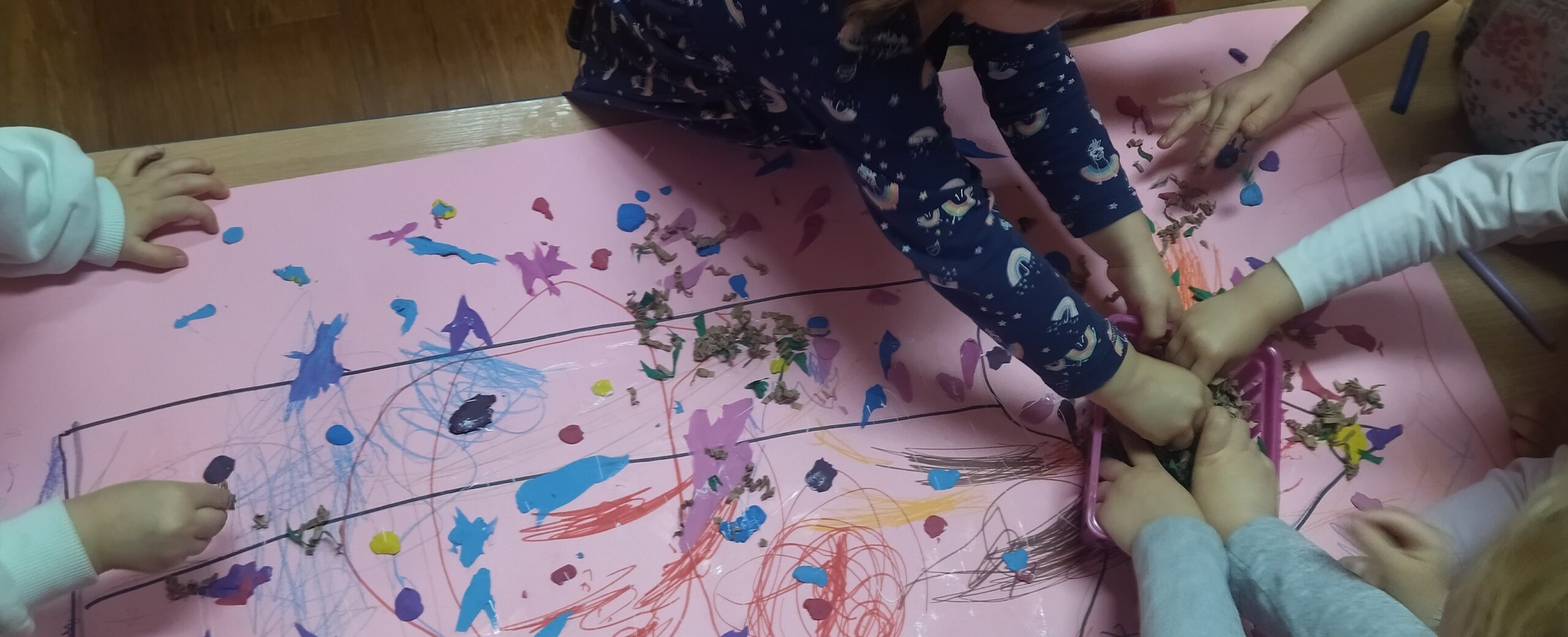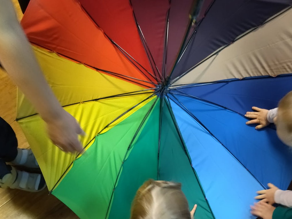 – zabawy ruchowe przy piosence ,, Kolorowe Kredki ‘’ – naśladowanie ruchów opiekunki , próby taneczne w parach