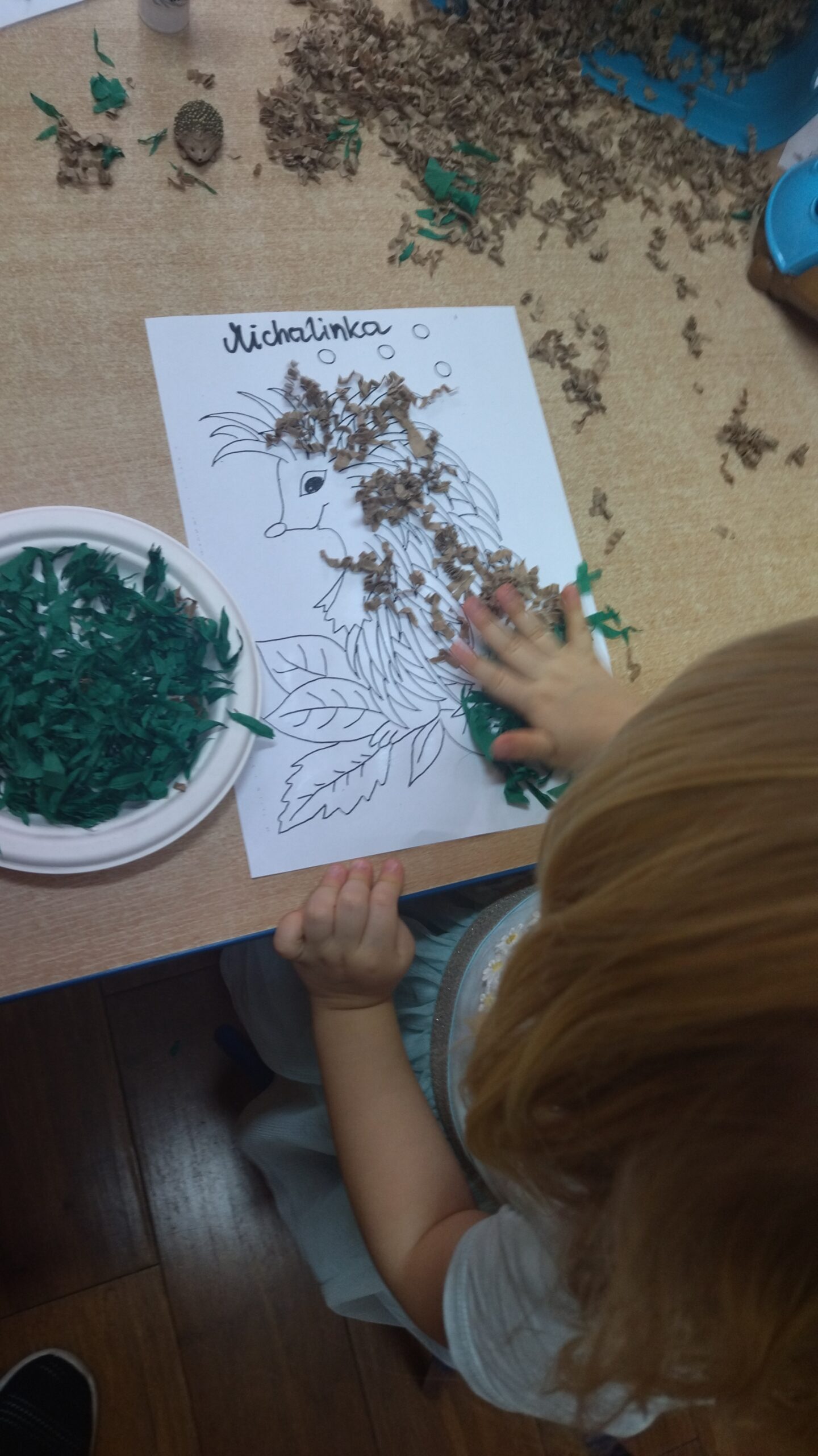 – praca plastyczna – ,, Jeż ‘’ – tworzenie jeża z gruszki i winogron