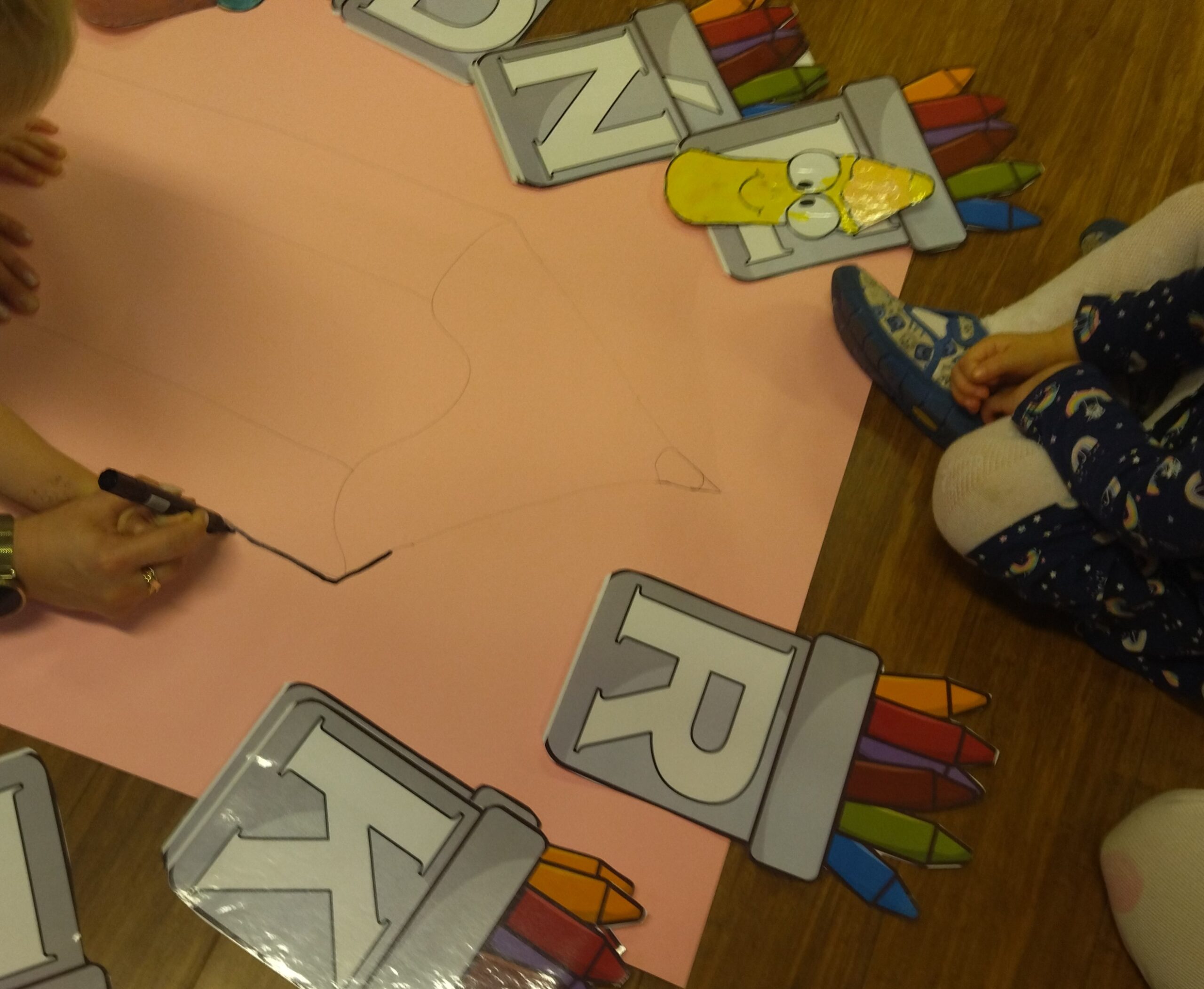 – nauka kolorów poprzez pokazywanie kredek – wykorzystanie plansz edukacyjnych