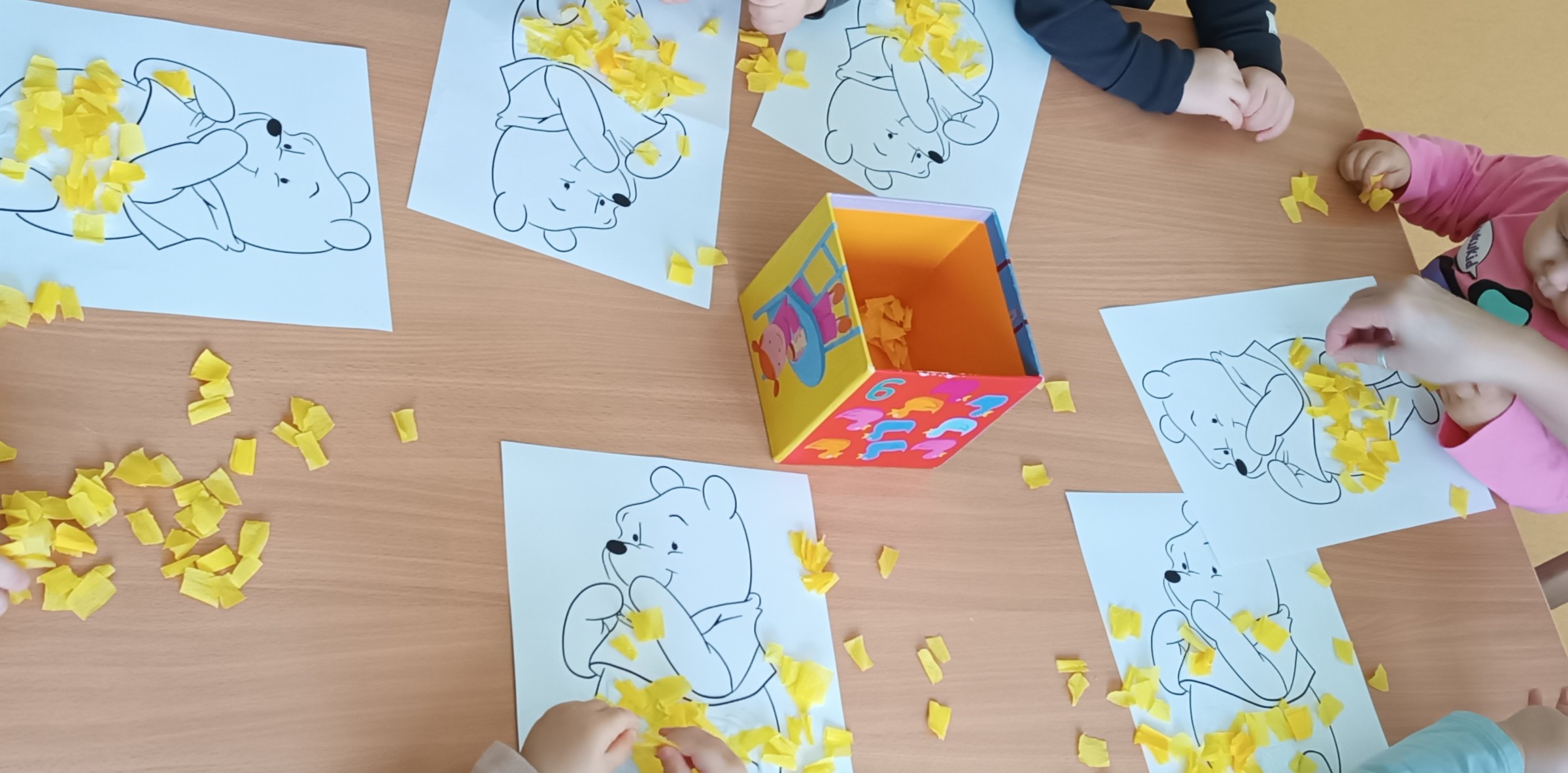 Styczeń w naszym żłobku upłynął w zimowej, radosnej atmosferze. Dzieci wykonały wspólną pracę plastyczną – bałwana, obchodziły Dzień Koloru Białego oraz brały udział w zabawach sensorycznych ze sztucznym śniegiem, rozwijając swoje zmysły i wyobraźnię. Ogromną atrakcją było spotkanie z kurą i małymi kurczakami, które wzbudziło wiele ciekawości i uśmiechu. Wspólnie poznawaliśmy także przygody bohatera bajek – Kubuś Puchatek. Ważnym wydarzeniem były również obchody Dnia Babci i Dziadka – dzieci z ogromnym zaangażowaniem przygotowały drobne upominki i występy, wyrażając w ten sposób swoją miłość i wdzięczność. Miesiąc zakończyliśmy wesołym balem karnawałowym pełnym tańców i kolorowych strojów.