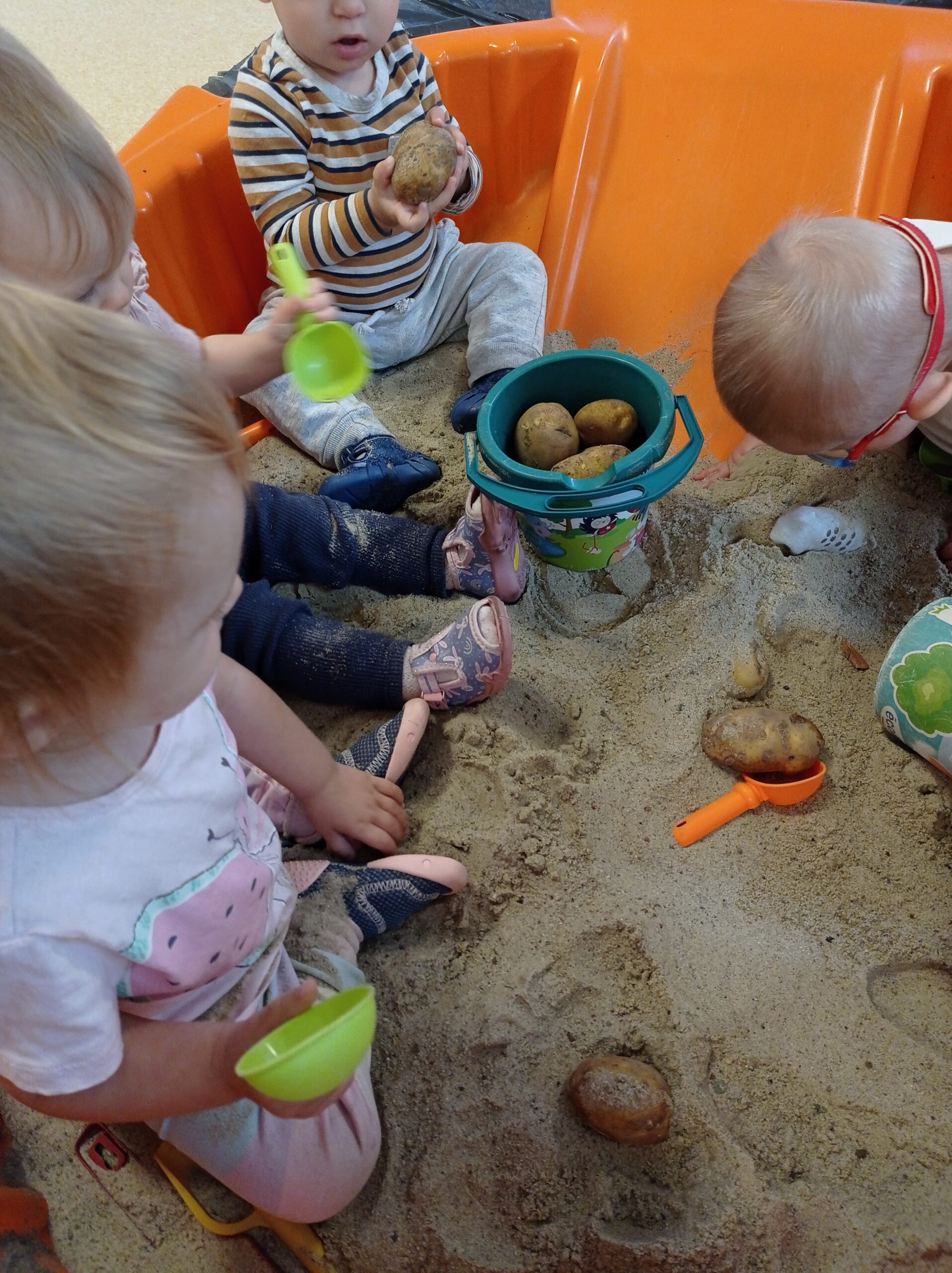 Wrzesień w żłobku to okres adaptacji nowych dzieci do placówki. Dzieci poznają otoczenie, opiekunki. CZAS świetnej zabawy i różnorodnych zajęć. Działania skupiają się na stworzeniu domowej atmosfery, budowaniu relacji zaufania, zarówno dzieci jak i rodziców. W naszym żłobkowym kalendarzu zapisały się: Dzień ziemniaka, wrzosu, kropki. odpędzania kataru, i oczywiście Dzień Chłopaka- w naszym wydaniu piłki nożnej i wiele, wiele innych atrakcji.