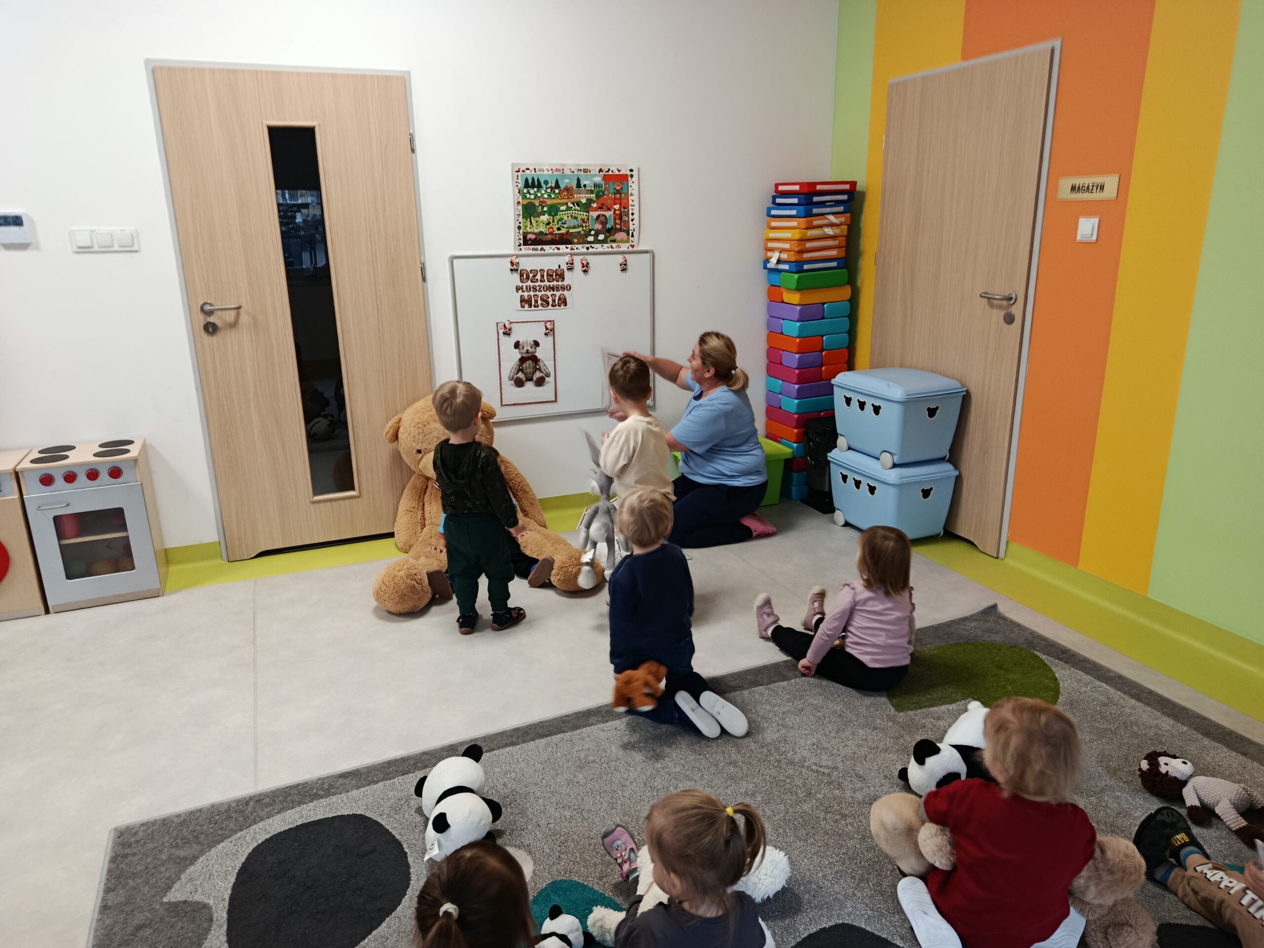 Świętowaliśmy również Dzień Pluszowego Misia-jedno z najbardziej wyczekiwanych wydarzeń wśród naszych makuchów.Dzieci tworzyły różnorodne prace plastyczne z motywem misiów, rozwijając przy tym swoją wyobraźnię oraz umiejętności manualne.Cały dzień przepełniony był radosnym uśmiechem ,tańcami, wspólną zabawą i mnóstwem pozytywnych emocji.To był wyjątkowy czas, który z pewnością na długo pozostanie w naszej pamięci.