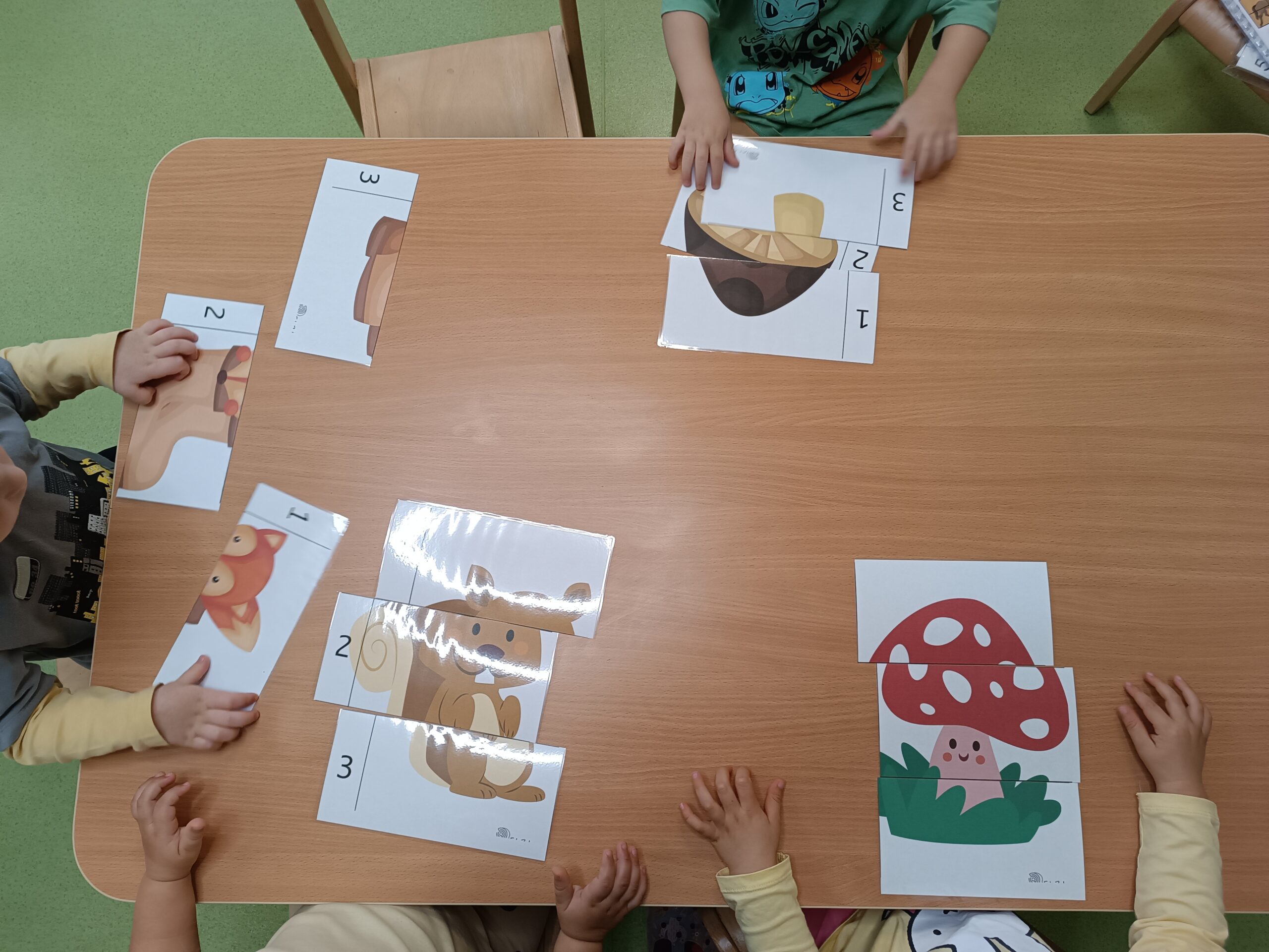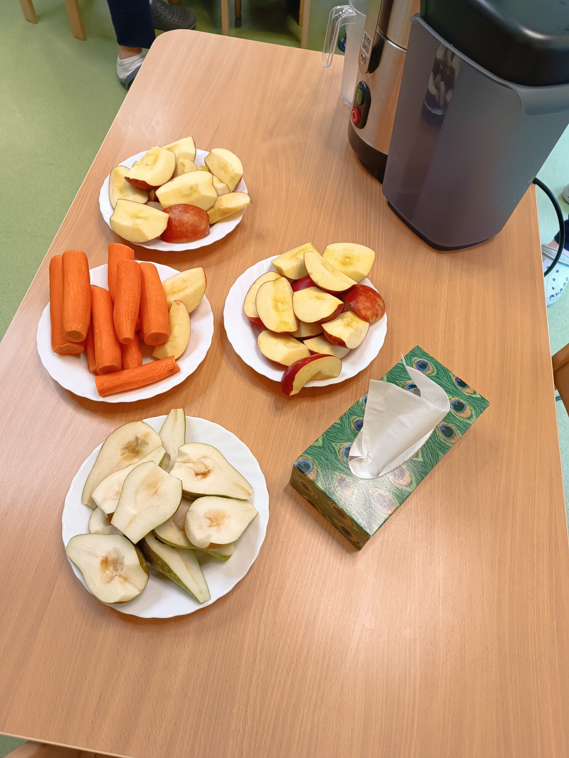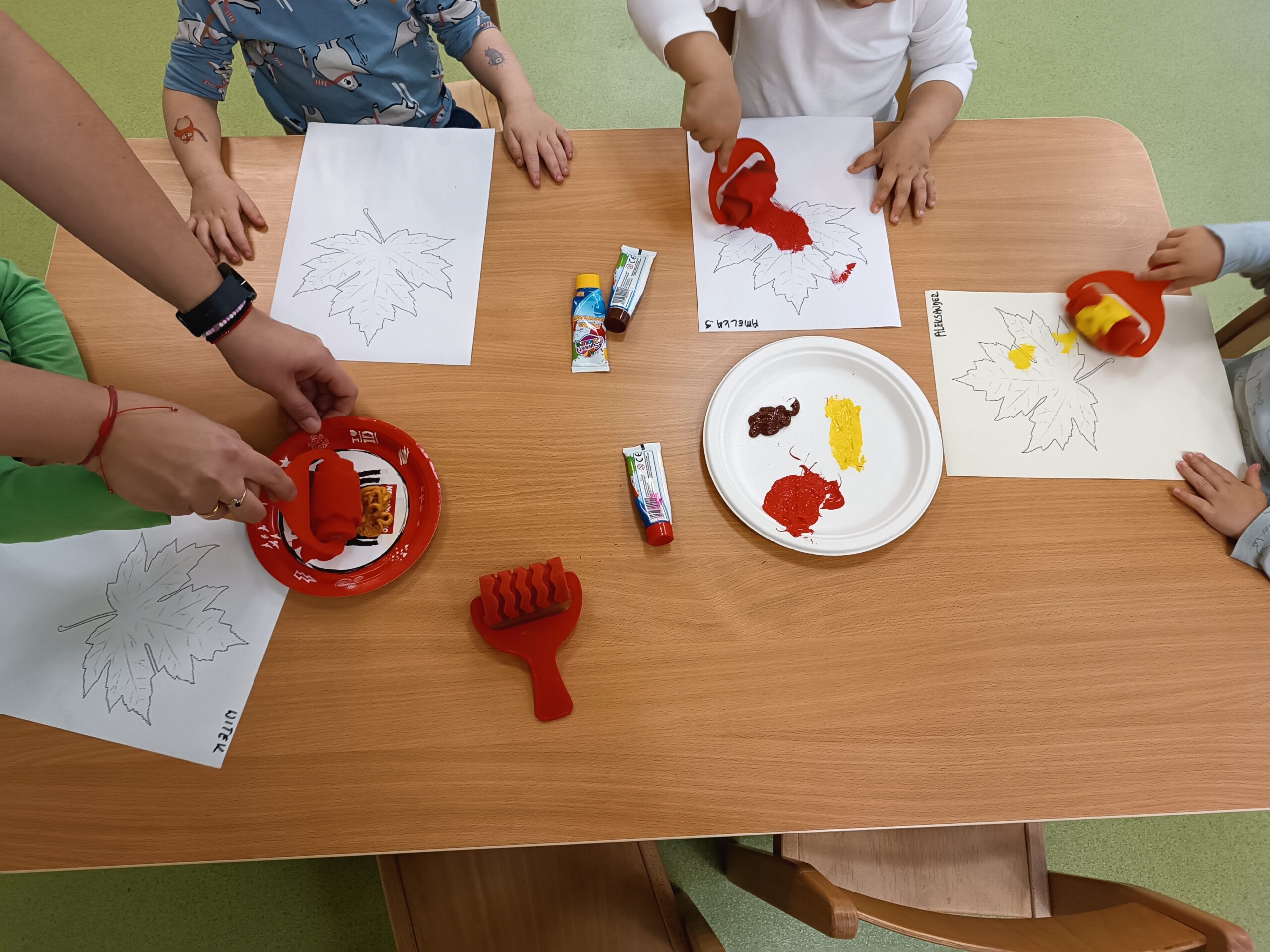 We wrześniu w naszym żłobku odbyły się pełne radości i zabawy zajęcia, które pomogły dzieciom w łagodnej adaptacji do nowego środowiska. Wspólnie obchodziliśmy Dzień Biedronki, który był okazją do pierwszych prac plastycznych – wyklejaliśmy biedronki i odbijaliśmy rączki. Nie zabrakło też zabaw ruchowych – tańczyliśmy z chustami i poznawaliśmy różne instrumenty podczas zajęć muzycznych. Odwiedziła nas Pani Jesień, która przyniosła ze sobą dary jesieni, a dzieci z radością brały udział w malowaniu liści, tworzeniu jesiennego kącika oraz w zabawach sensorycznych. Robiliśmy sok z owoców i warzyw, a także układaliśmy proste puzzle, rozwijając spostrzegawczość i koordynację. Wrzesień był czasem pełnym ciepła, kolorów i pierwszych wspólnych doświadczeń.