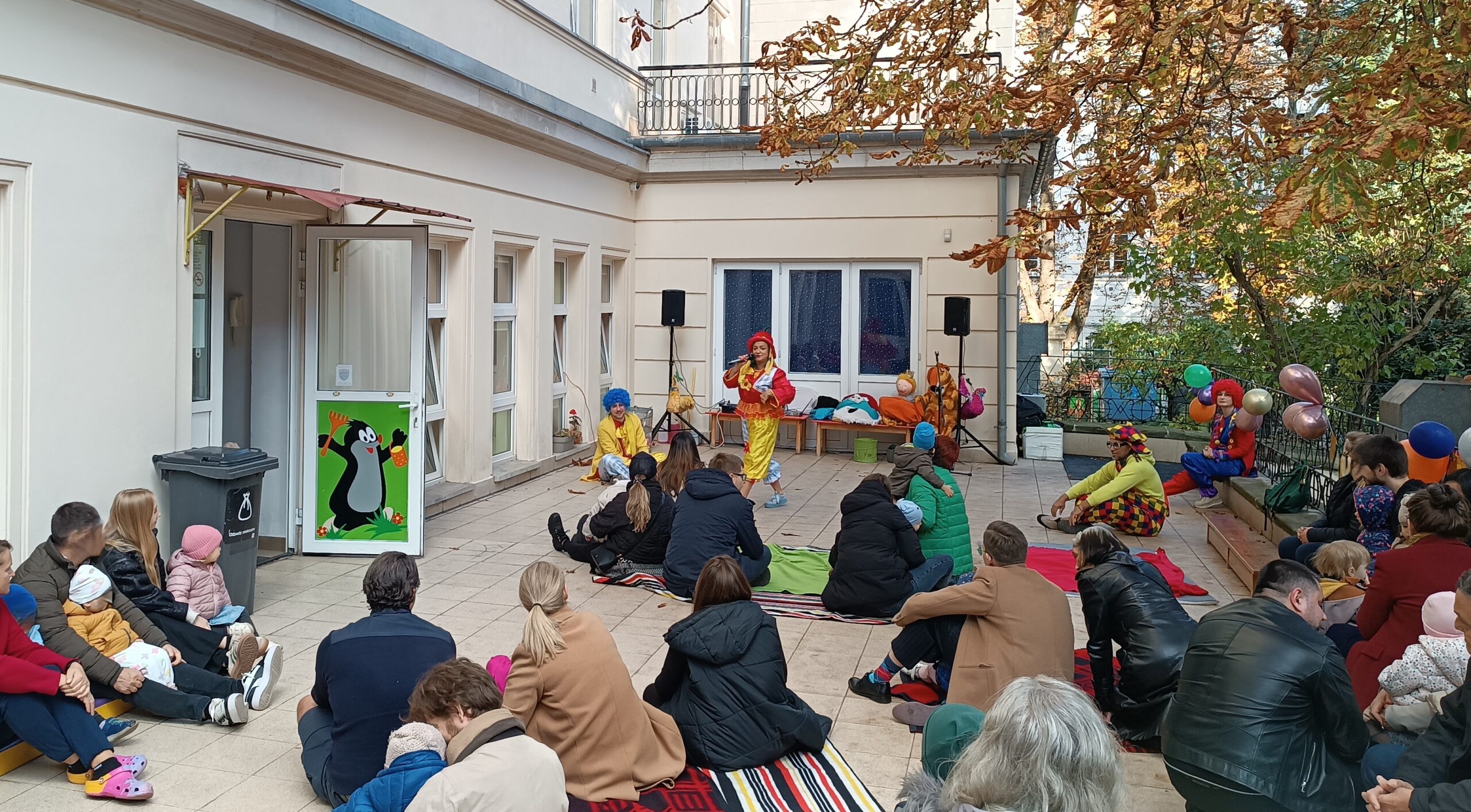 Nadszedł październik. Wykorzystujemy ciepłe, jesienne dni na radosną zabawę w ogrodzie z nadzieją, że słoneczna pogoda potrwa jak najdłużej. Dzieci uczą się rozpoznawać oznaki nadchodzącej jesieni, poznają owoce i warzywa, tworzą kolorowe prace plastyczne. Najmłodsi żłobkowicze powoli przyzwyczajają się do spędzania dni w gronie koleżanek i kolegów pod czujnym okiem pań opiekunek. Fantastycznym akcentem października były festyny rodzinne prowadzone przez aktorów z Teatru Prima. Maluszki i ich rodzice byli zachwyceni 🙂