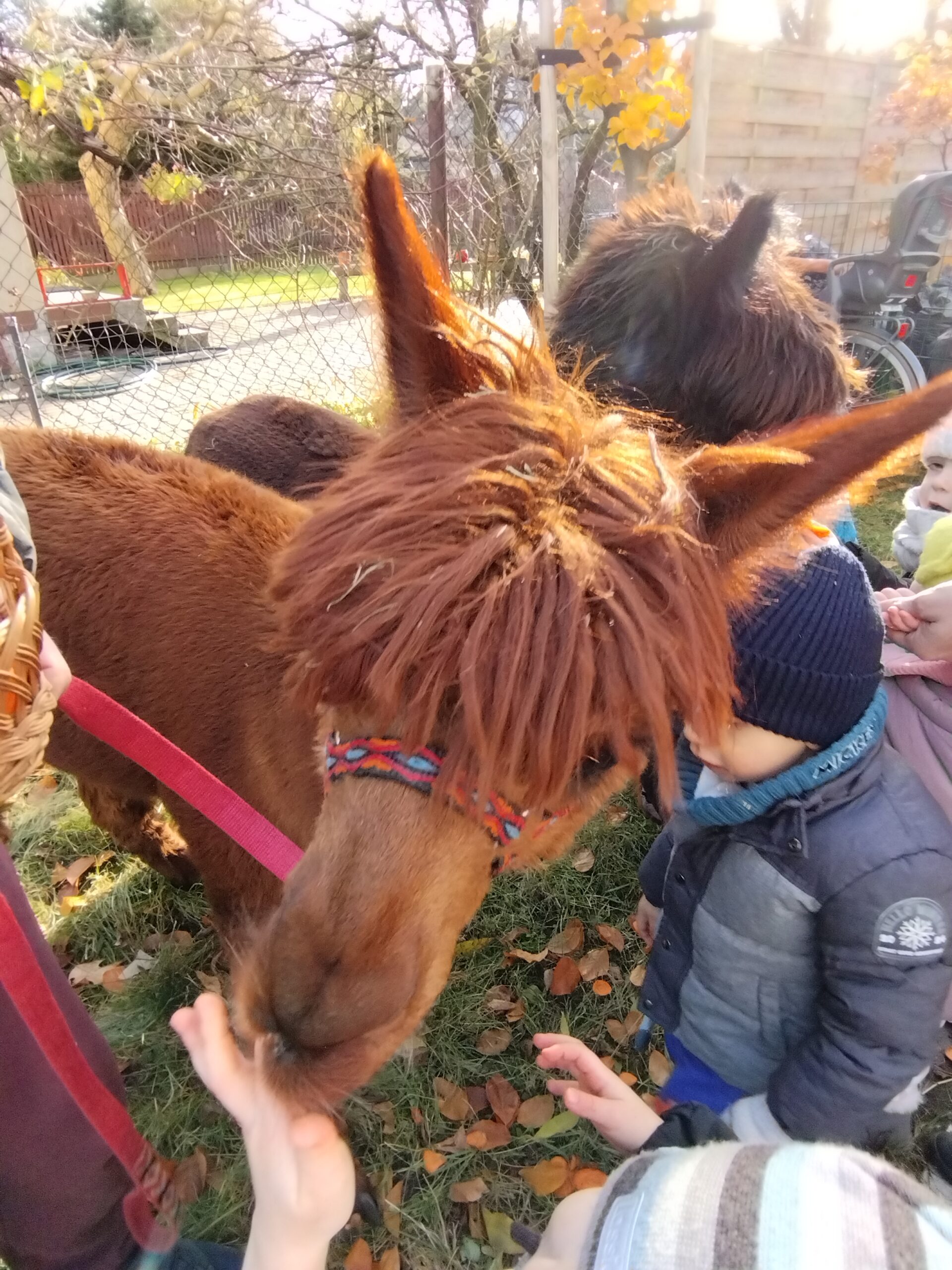Odwiedziły nas alpaki, które dzieci mogły karmić marchewką.