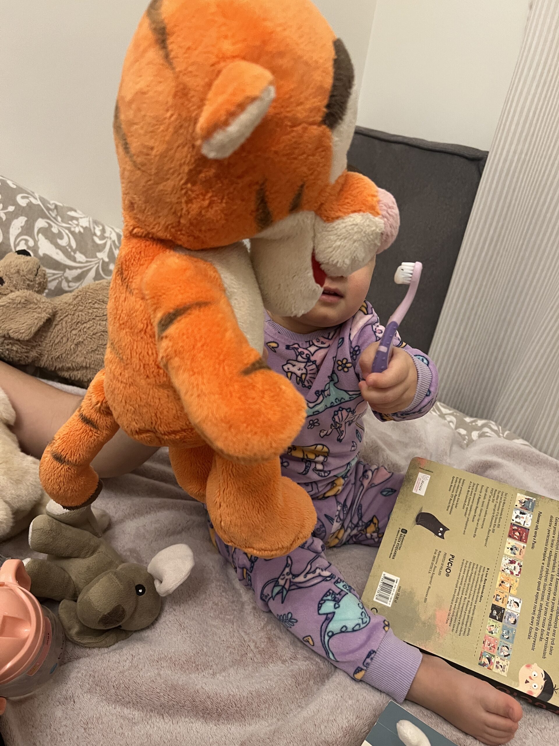 W ramach projektu „ Tygrysek i Przyjaciele” dzieci jednej z grup zabierają tygryska na weekend do domu. W jeden z weekendów Misio mył ząbki 😊