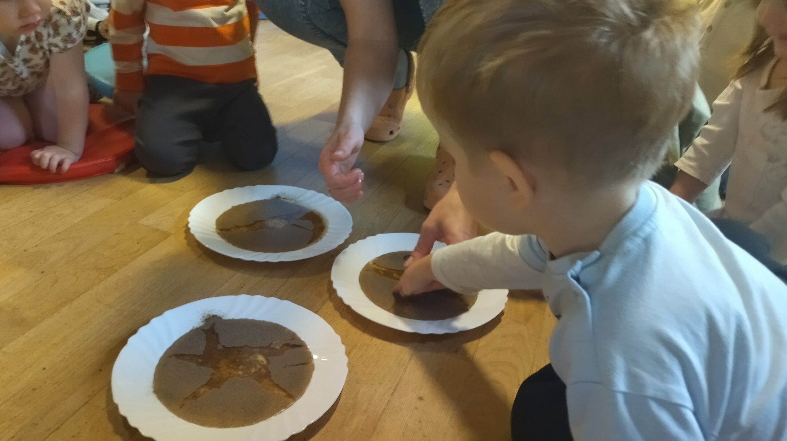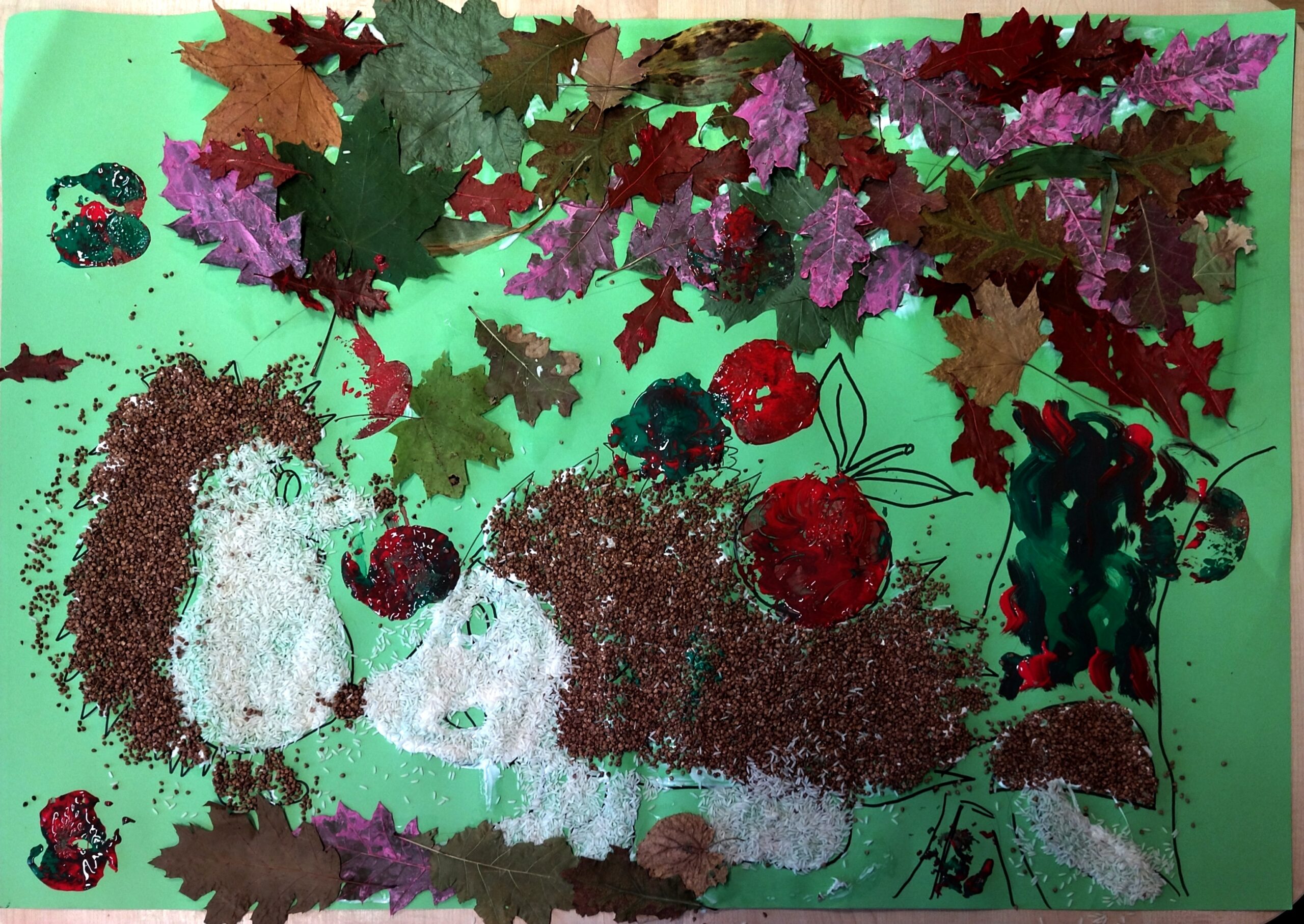 Kolejny miesiąc pełen atrakcji za nami. Głównym tematem przewodnim była jesień. Dzieci wykonywały prace plastyczne w tej tematyce używając różnych metod. Podczas zajęć dzieci szukały i poznawały skarby jesieni czy też odbyły spacer sensoryczny pośród jesiennych skarbów.