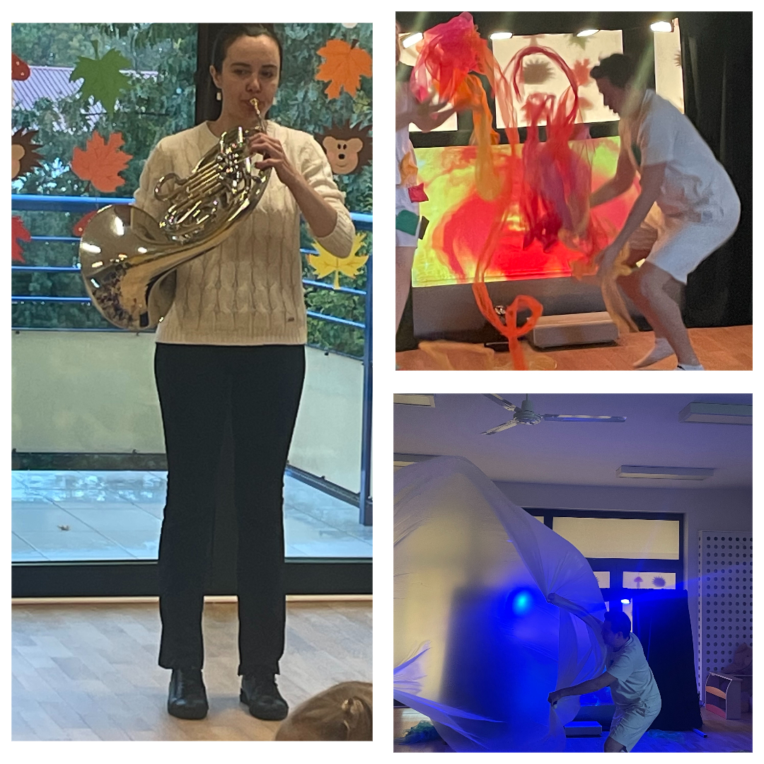 Odwiedził nas teatrzyk ‘’Duo „ z przedstawieniem „Barwy odkrycia” oraz Pani z instrumentem waltornia.