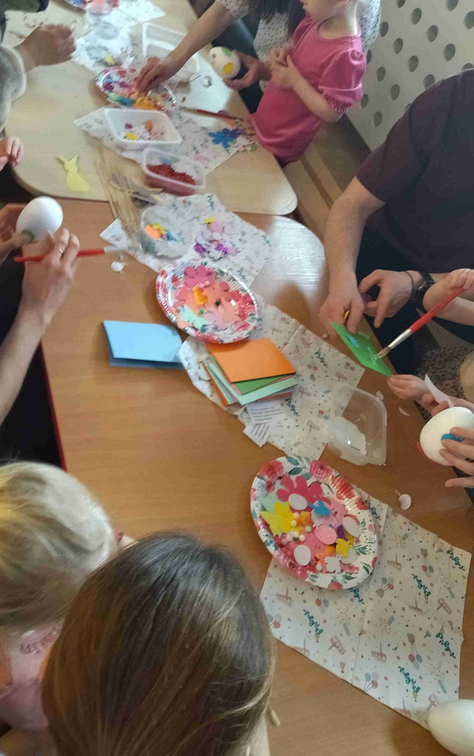 Wspólnie z rodzicami uczestniczyliśmy w warsztatach wielkanocnych, podczas których powstały piękne, kolorowe prace inspirowane budzącą się do życia przyrodą oraz symbolami świątecznymi tj. pisanki, zajączki. Był to wyjątkowy czas integracji, kreatywności i wspólnej zabawy.