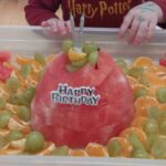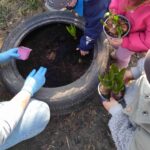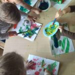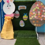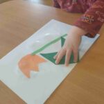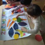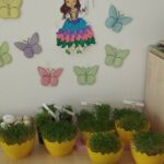 Sadziliśmy kwiaty, sialiśmy rzeżuchę, zrobiliśmy wielkanocną fotobudkę, upiekliśmy maślane ciasteczka. Było mnóstwo zabaw sensorycznych, plastycznych, muzycznych a nawet gimnastyka. Dla dzieci, które miały urodziny panie kucharki przygotowały specjalny tort owocowy.