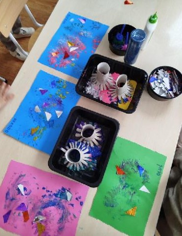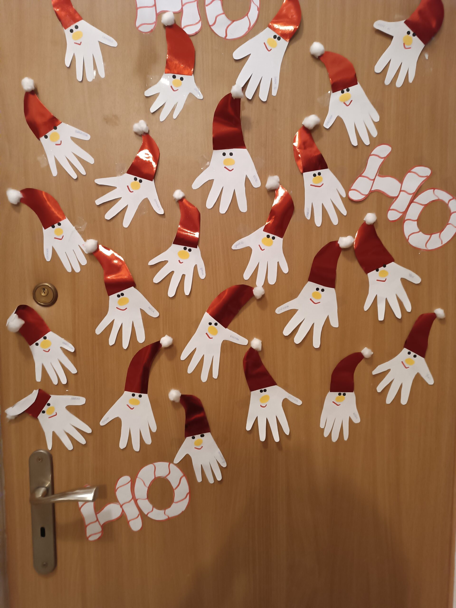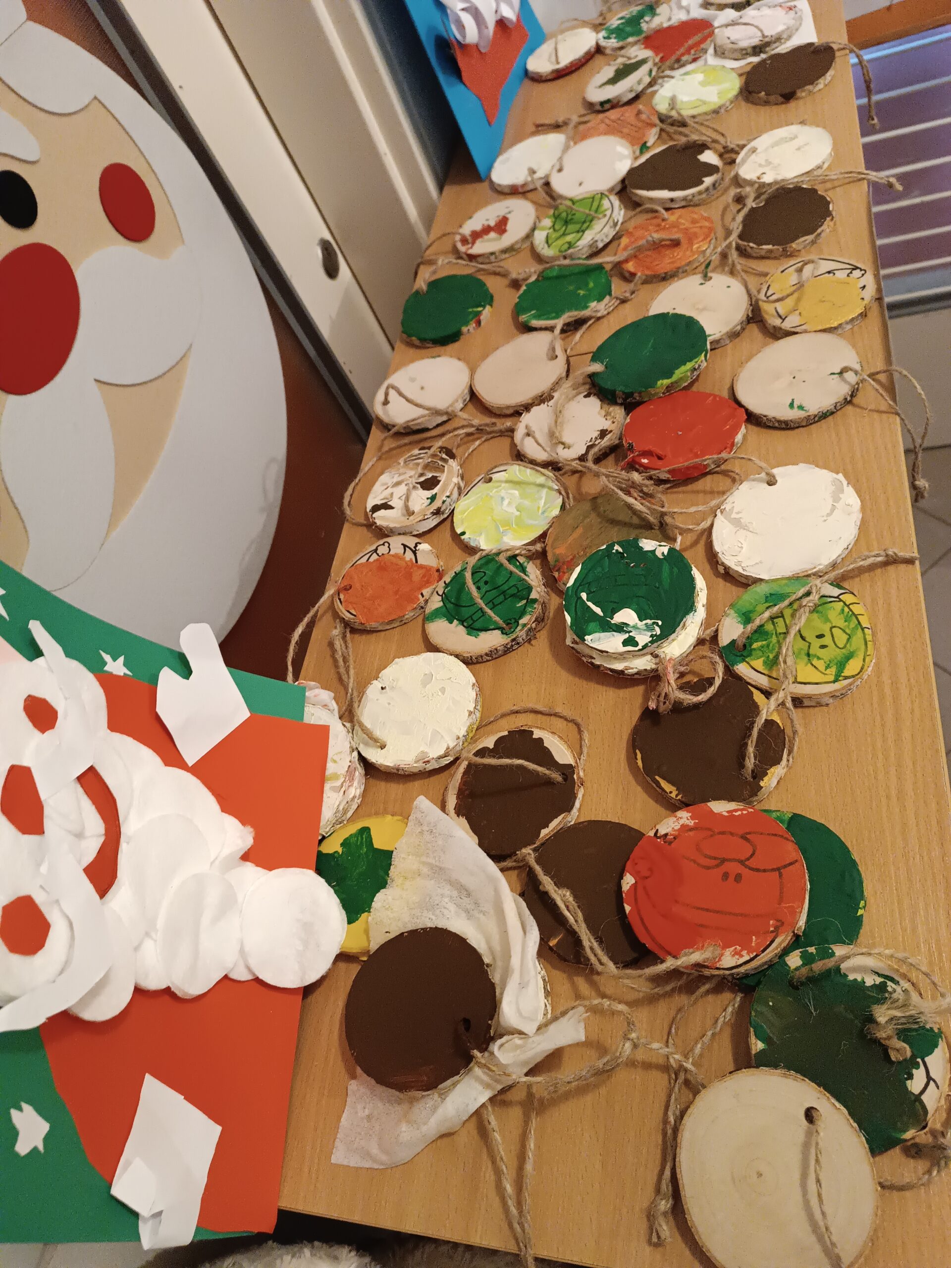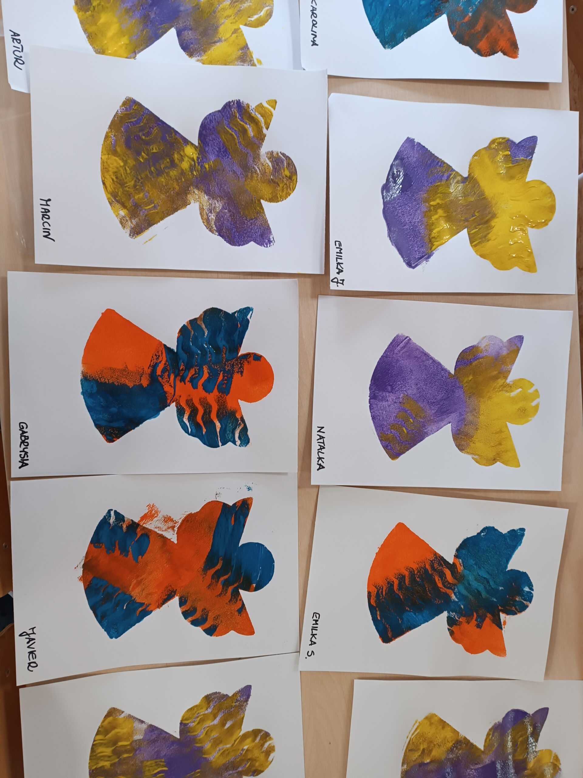 W miesiącu grudniu dzieci wykonywały prace plastyczne w tematyce świątecznej. Dzieci zrobiły Mikołaje z rączek, aniołki i sylwestrowe fajerwerki.