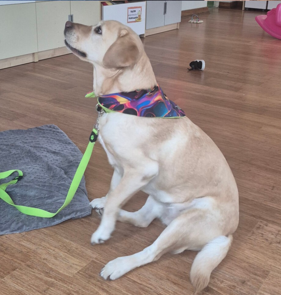 Również w tym miesiącu do naszego żłobka zawitał czworonożny przyjaciel. Dzieci miały okazję pogłaskania oraz nakarmienia pieska a także zobaczyć różne sztuczki jakie piesek wykonuje.
