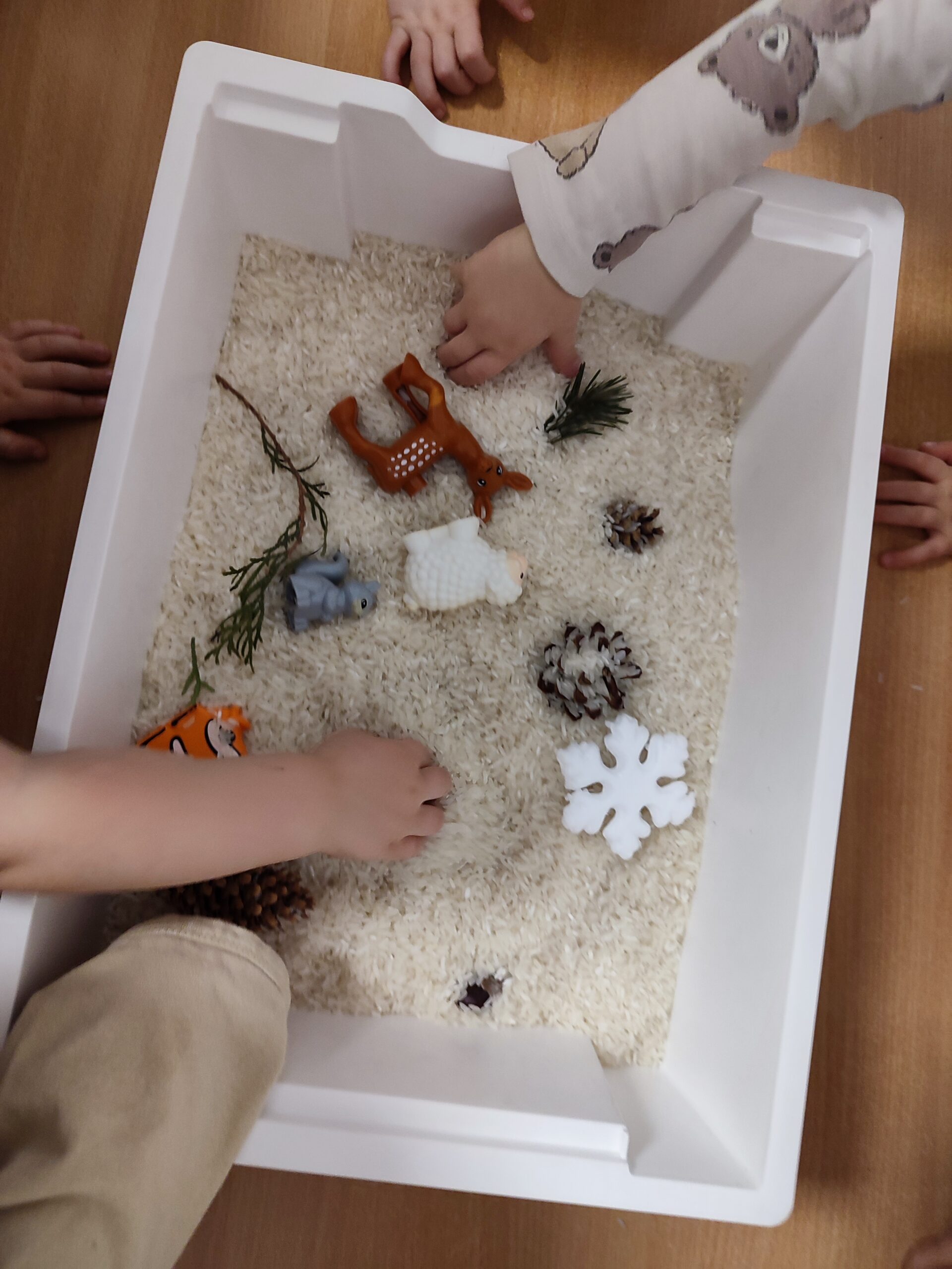 Świętowaliśmy bal karnawałowy z tańcami i zabawami muzycznymi, obchodziliśmy walentynki, ucząc się życzliwości i wyrażania emocji. Korzystaliśmy z zimowej aury podczas zabaw na świeżym powietrzu i na śniegu, rozwijając sprawność ruchową oraz odporność. Odbywały się również zajęcia sensoryczne wspierające rozwój zmysłów, motoryki małej i koordynacji. Cały miesiąc upłynął w atmosferze bezpieczeństwa, radości i wspólnej zabawy.