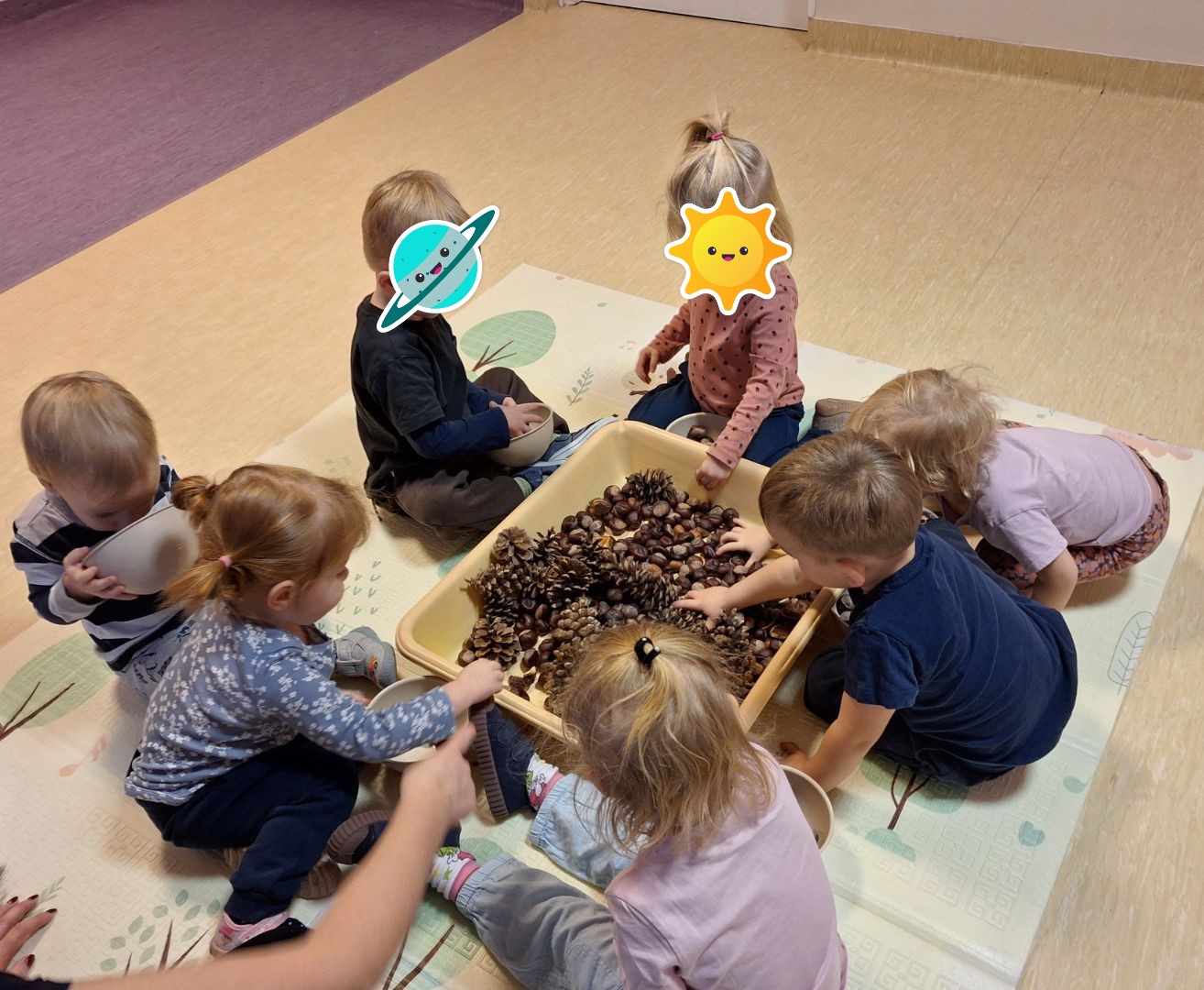 Swobodna zabawa na sali sensorycznej, wspólne prace plastyczne sprzyjała integracji i rozwijaniu wyobraźni oraz budowaniu relacji rówieśniczych.