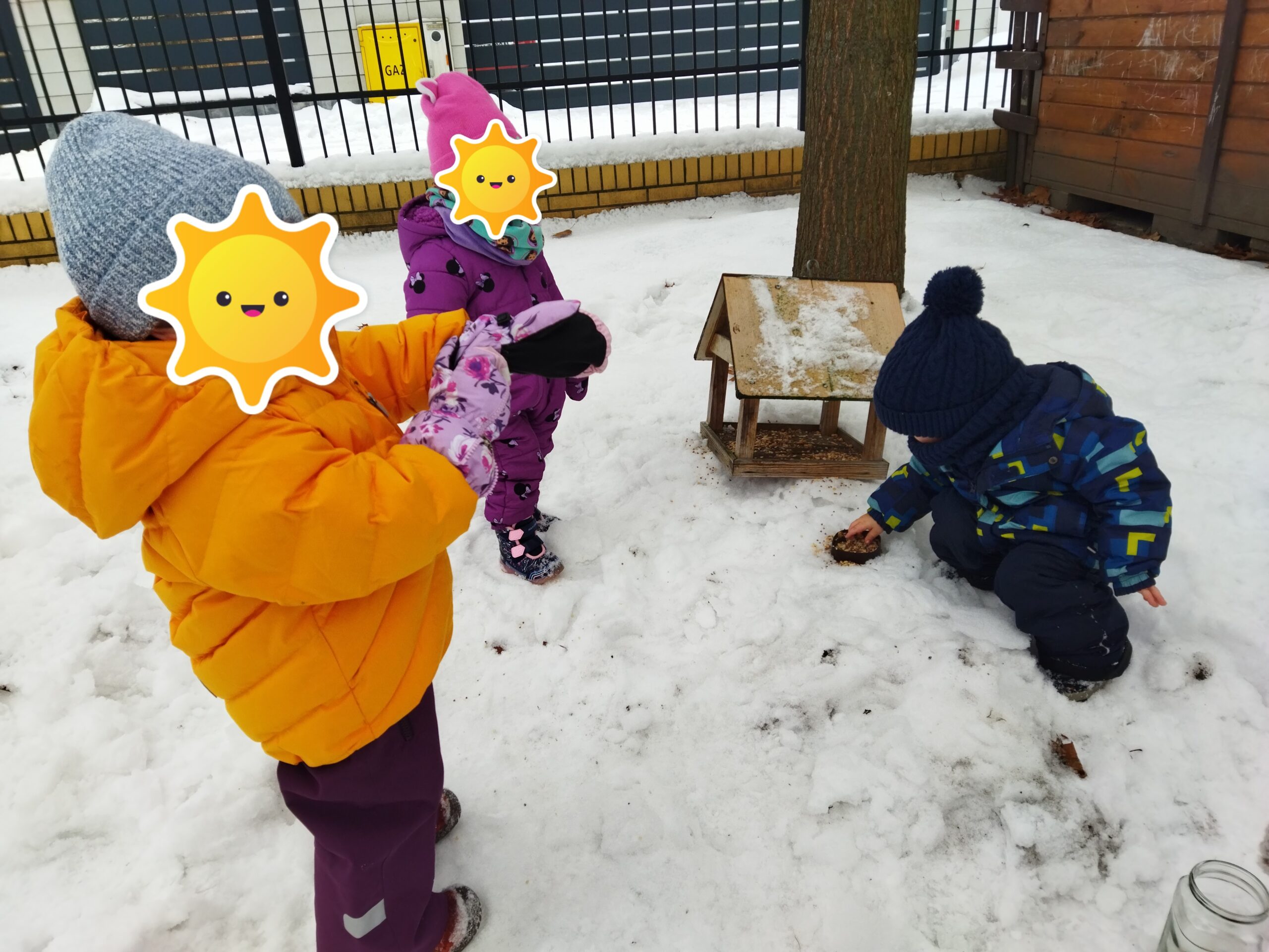 Podczas cieplejszych dni dzieci miały okazję wyjść na krótki spacer, aby dokarmiać ptaki i obserwować zimową pogodę. Ze względu na niskie temperatury wyjścia na świeże powietrze były jednak ograniczone.
