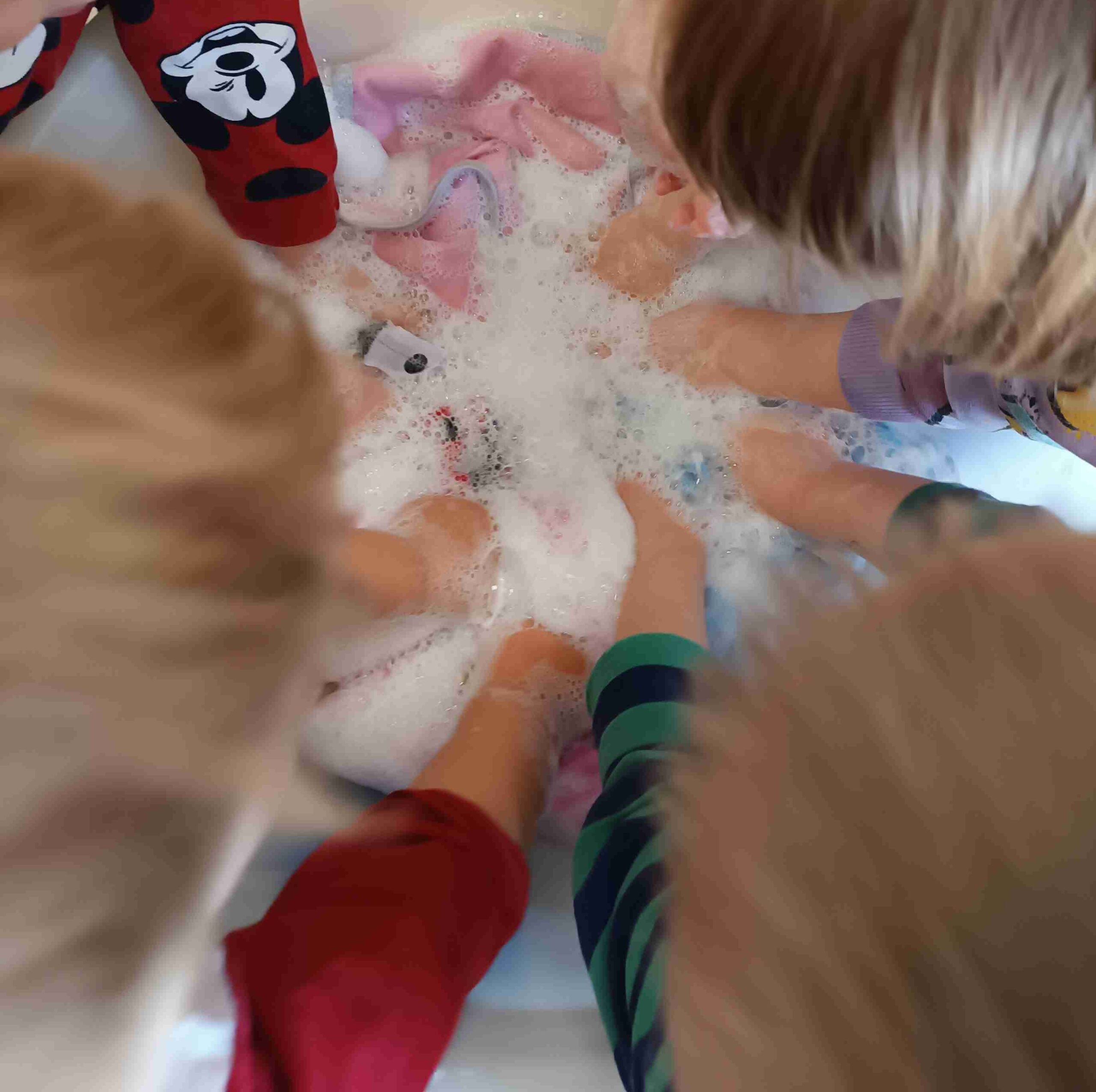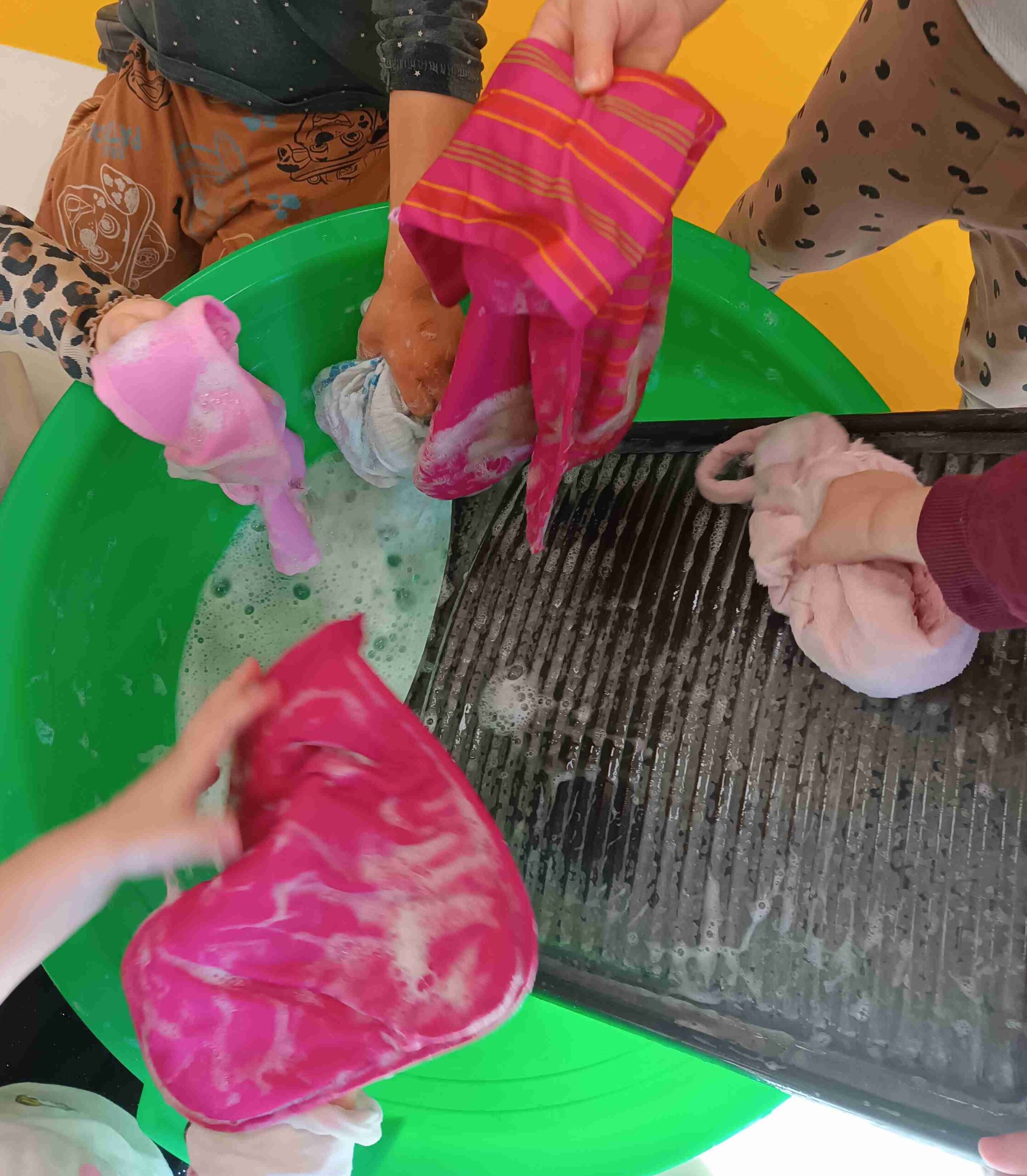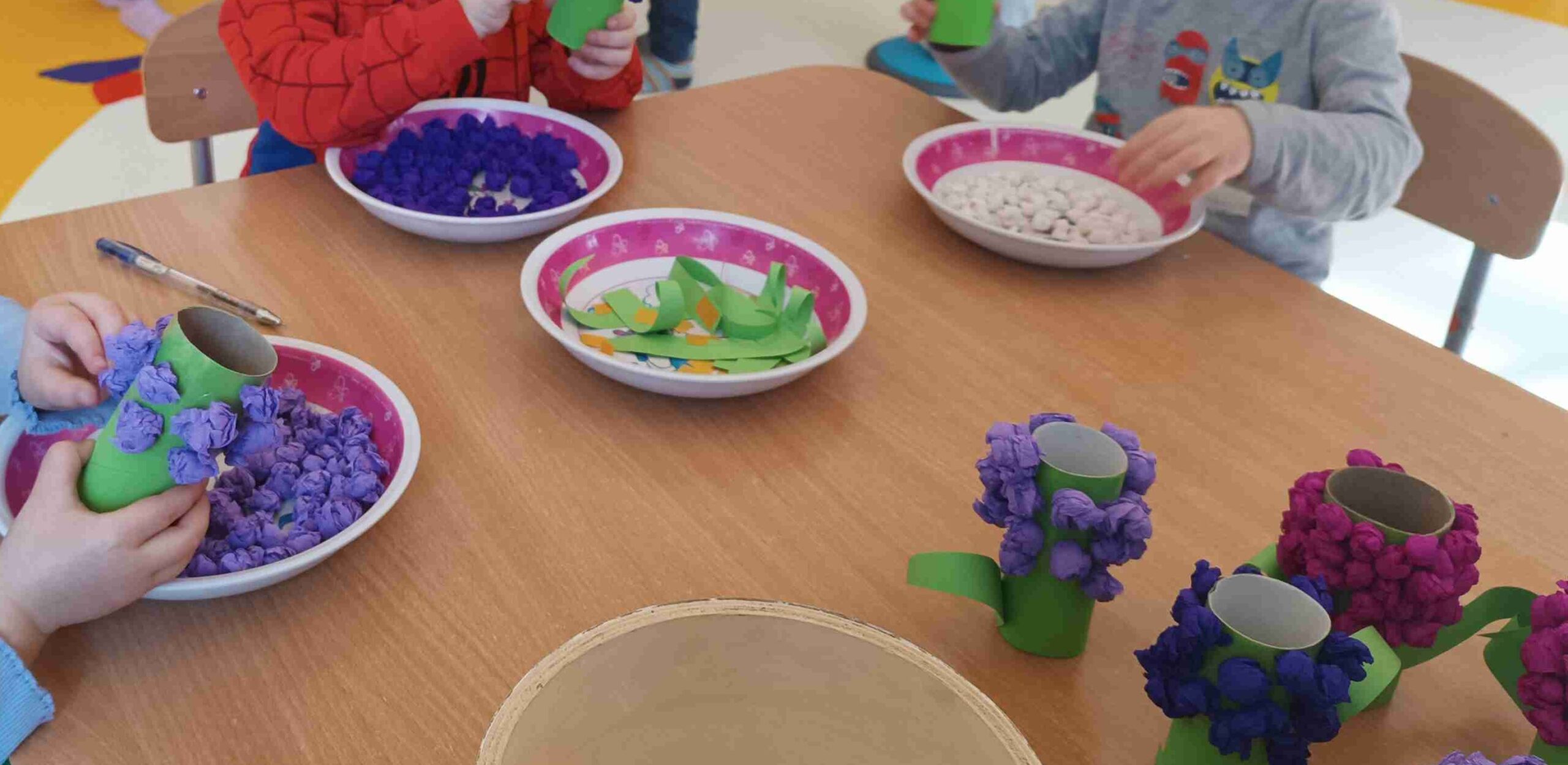 Marzec w naszym żłobku był pełen radości i twórczej aktywności 🌱🎨 Dzieci z zaangażowaniem tworzyły różnorodne prace plastyczne, rozwijając swoją wyobraźnię i zdolności manualne. Dużo frajdy sprawiła im również twórczość na świeżym powietrzu – powstały ciekawe prace z kartonów, które możecie zobaczyć na zdjęciach. Podczas wspólnych zabaw maluchy poznawały także, jak wyglądało pranie kiedyś – z wielkim zainteresowaniem prały ubranka dla lalek na tradycyjnej tarze 😊 Nie zabrakło również pierwszych kroków w świecie przyrody – dzieci posadziły nasiona fasoli i rozpoczęły swoją małą, domową hodowlę. Dodatkową atrakcją była wizyta teatrzyku, która dostarczyła wszystkim wielu emocji i uśmiechu 🎭 To był piękny i inspirujący miesiąc!