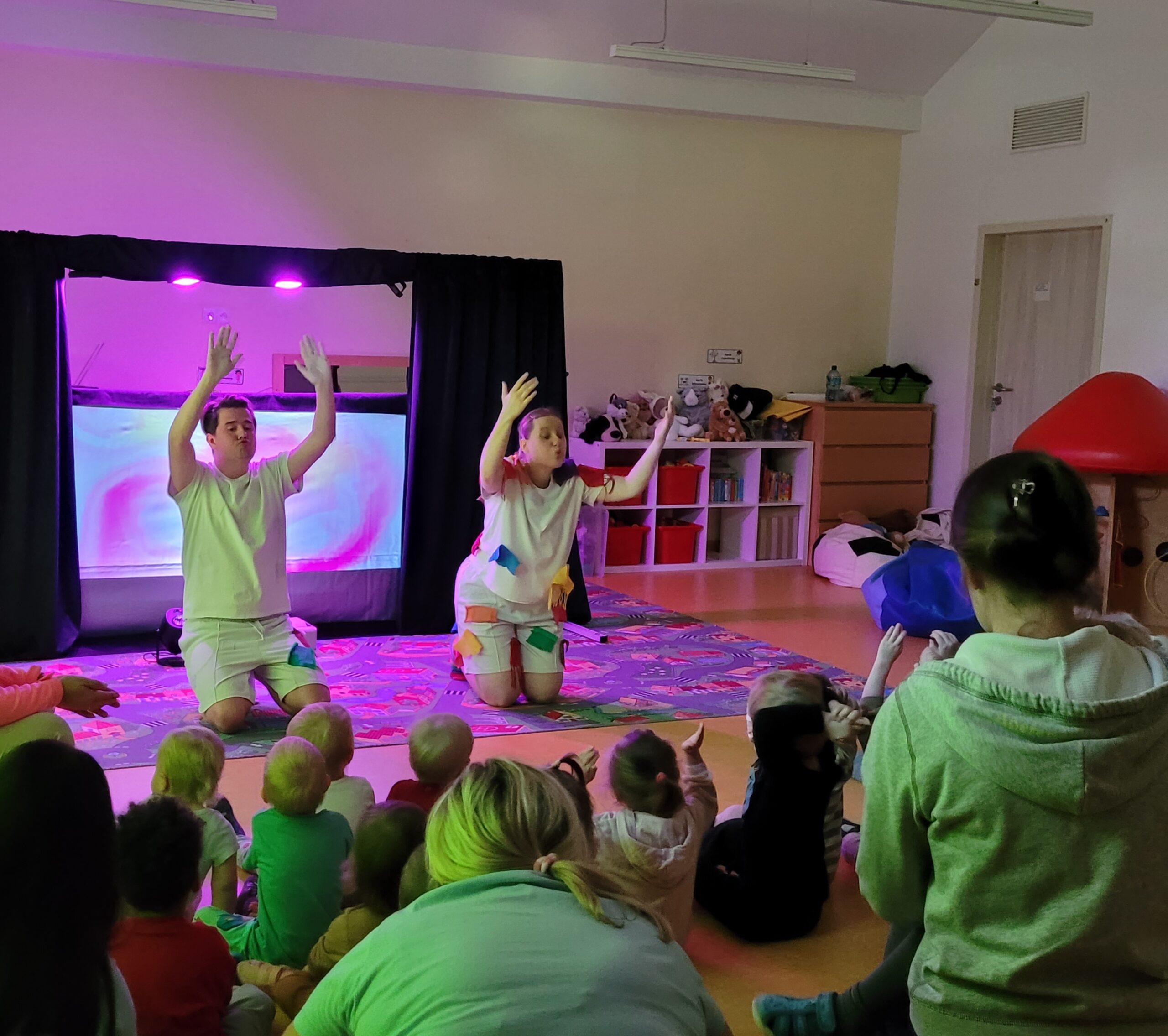 We wrześniu dzieci które rozpoczęły przygodę ze żłobkiem maja czas adaptacji; poznają otoczenie, zasady panujące w żłobku, nowe koleżanki oraz kolegów a także swoje Ciocie które robią wszystko aby czas rozłąki z Rodzicami minął jak najmilej. Ale wrzesień to nie tylko adaptacja. Bawiliśmy się wesoło wspólnie rodzinnie na pikniku w ogródku , obejrzeliśmy teatrzyk o kolorach których rozpoznawania się na nim uczyliśmy. I dalej to nie wszystko: „brykaliśmy” w ogrodzie bo pogoda ładna, robiliśmy pieczątki dłońmi, kleiliśmy, malowaliśmy, śpiewaliśmy, tańczyliśmy…