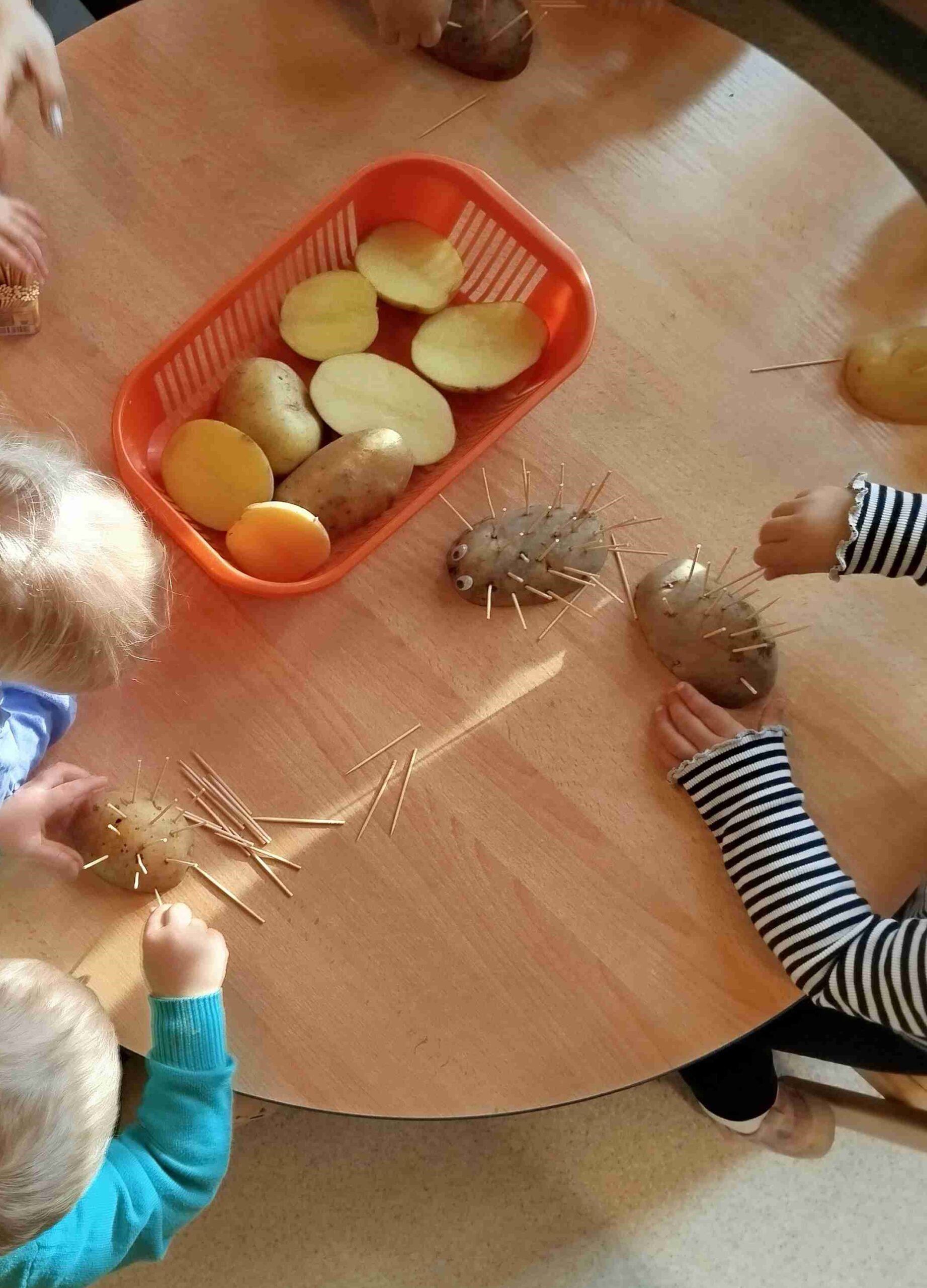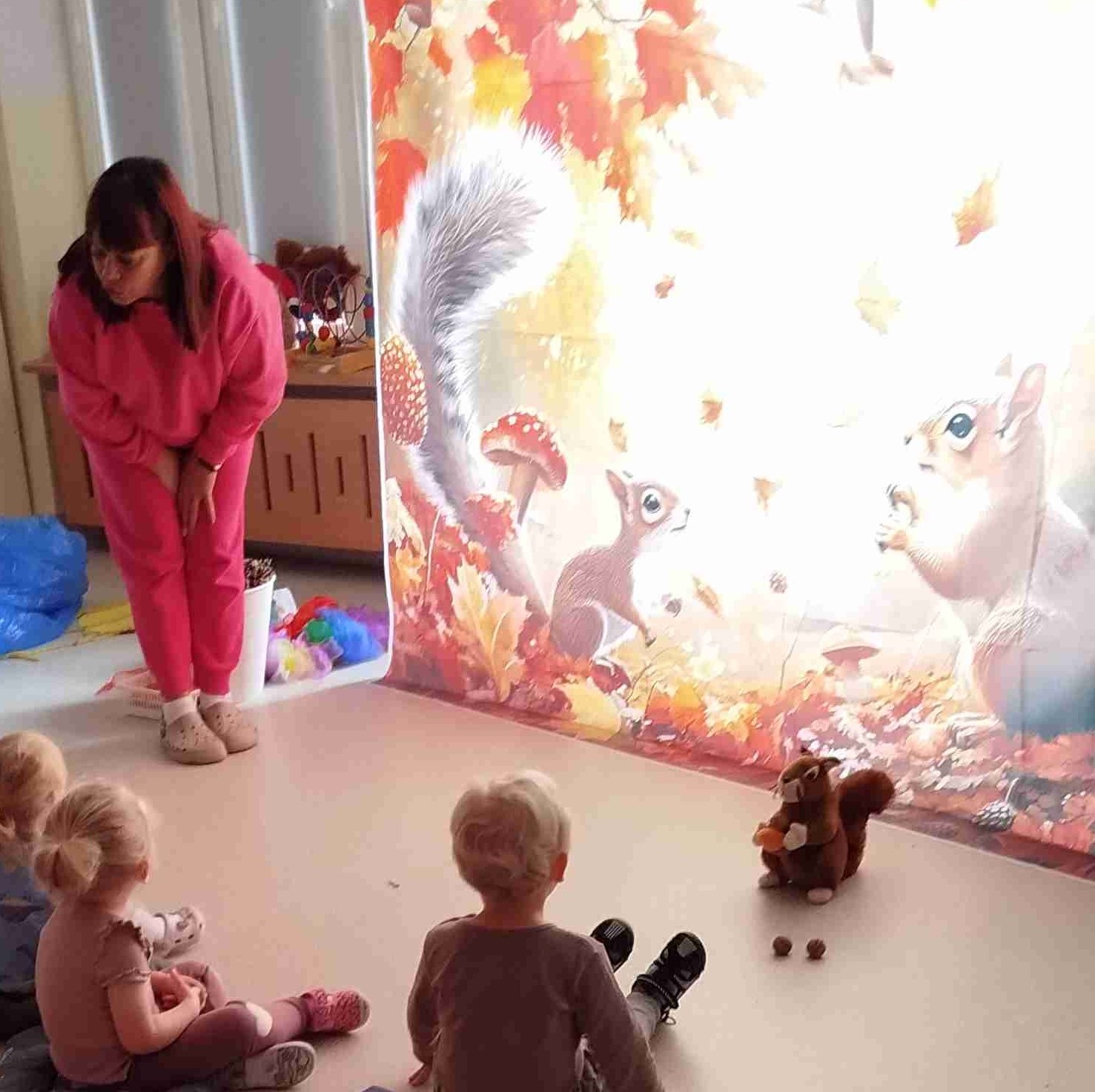 W listopadzie w naszym żłobku realizowaliśmy wiele różnorodnych i rozwijających aktywności. Dzieci brały udział w zajęciach sensorycznych, podczas których tworzyły własne gniotki, poznając nowe faktury i stymulując zmysły. W ramach zajęć dydaktycznych odkrywały, co dzieje się w przyrodzie jesienią – obserwowały zmiany pogody, kolorów liści oraz przygotowania zwierząt do zimy.