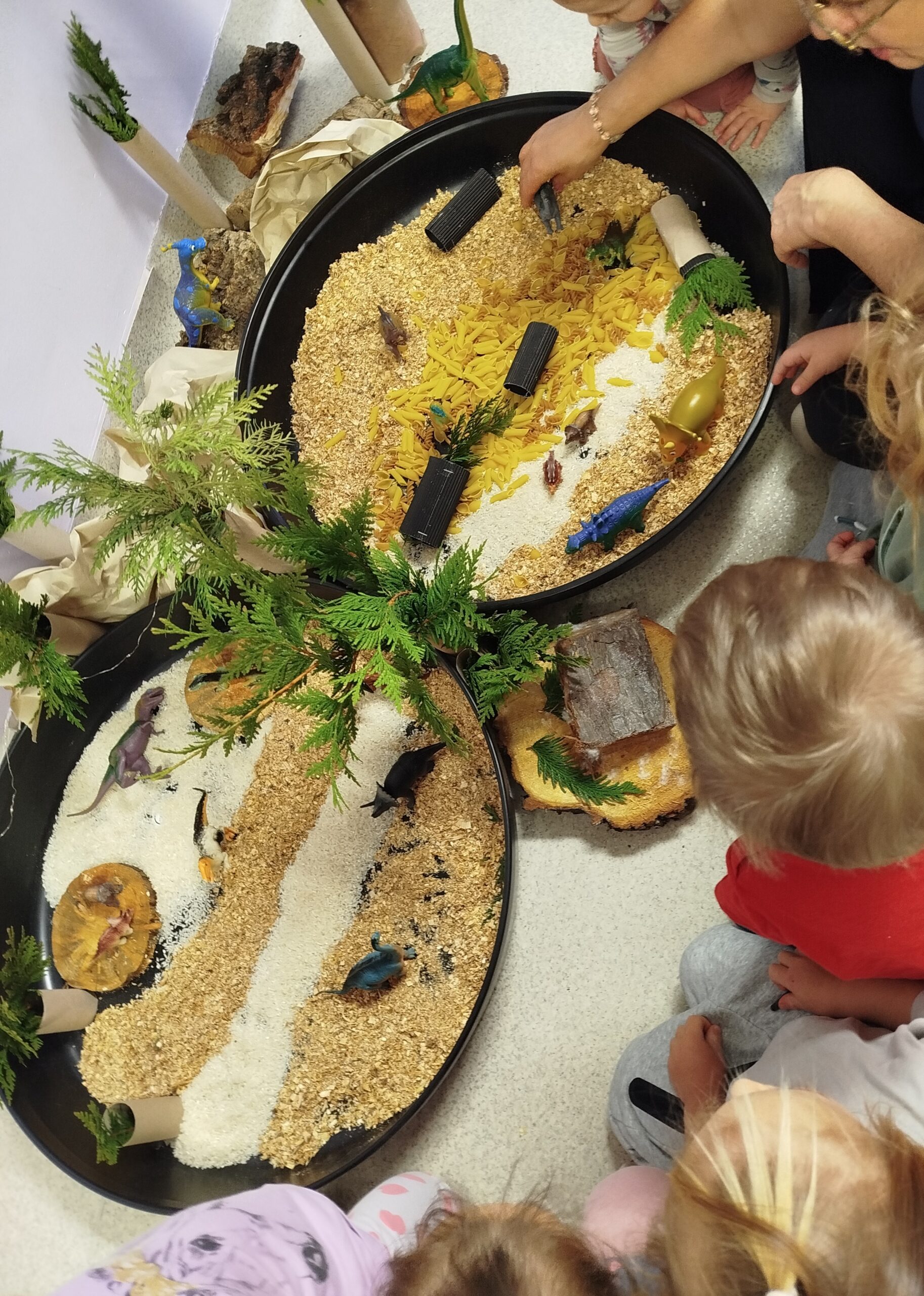 W lutym obchodziliśmy również dzień dinozaura, podczas którego dzieci poznawały świat prehistorycznych zwierząt poprzez zabawy i prace plastyczne. Dzieci uczestniczyły w licznych zajęciach sensorycznych oraz aktywnościach zimowych organizowanych w salach jak i na świeżym powietrzu.