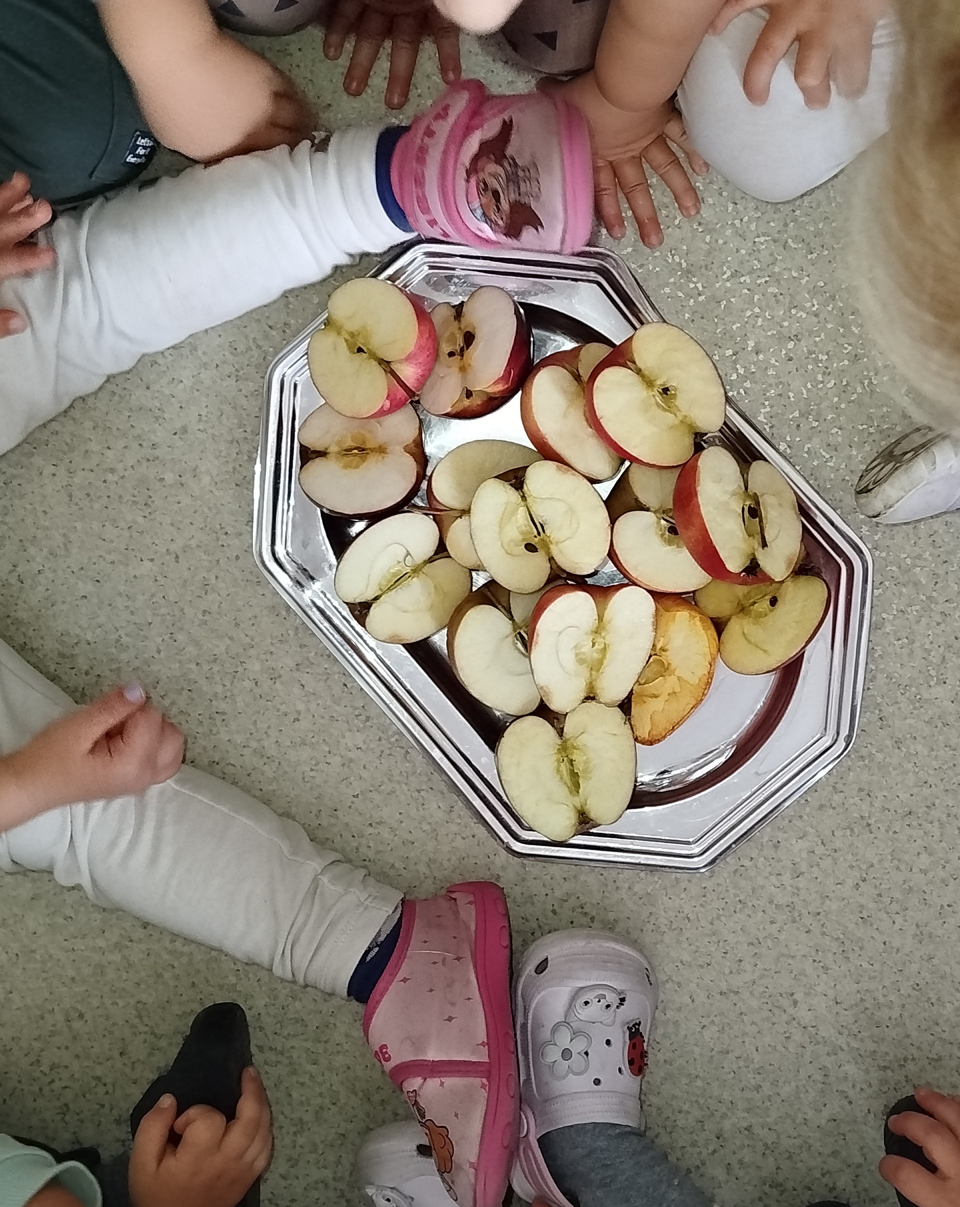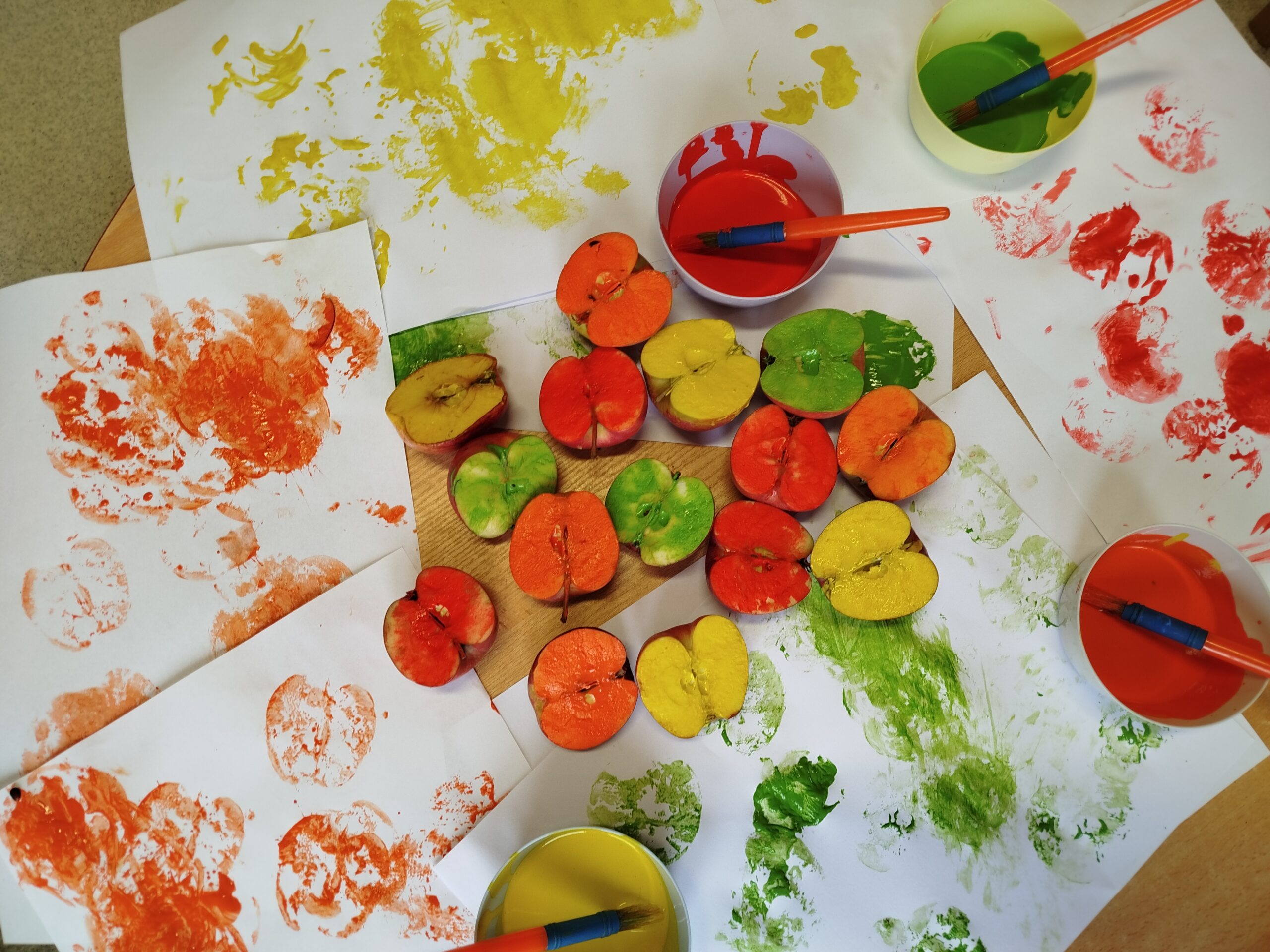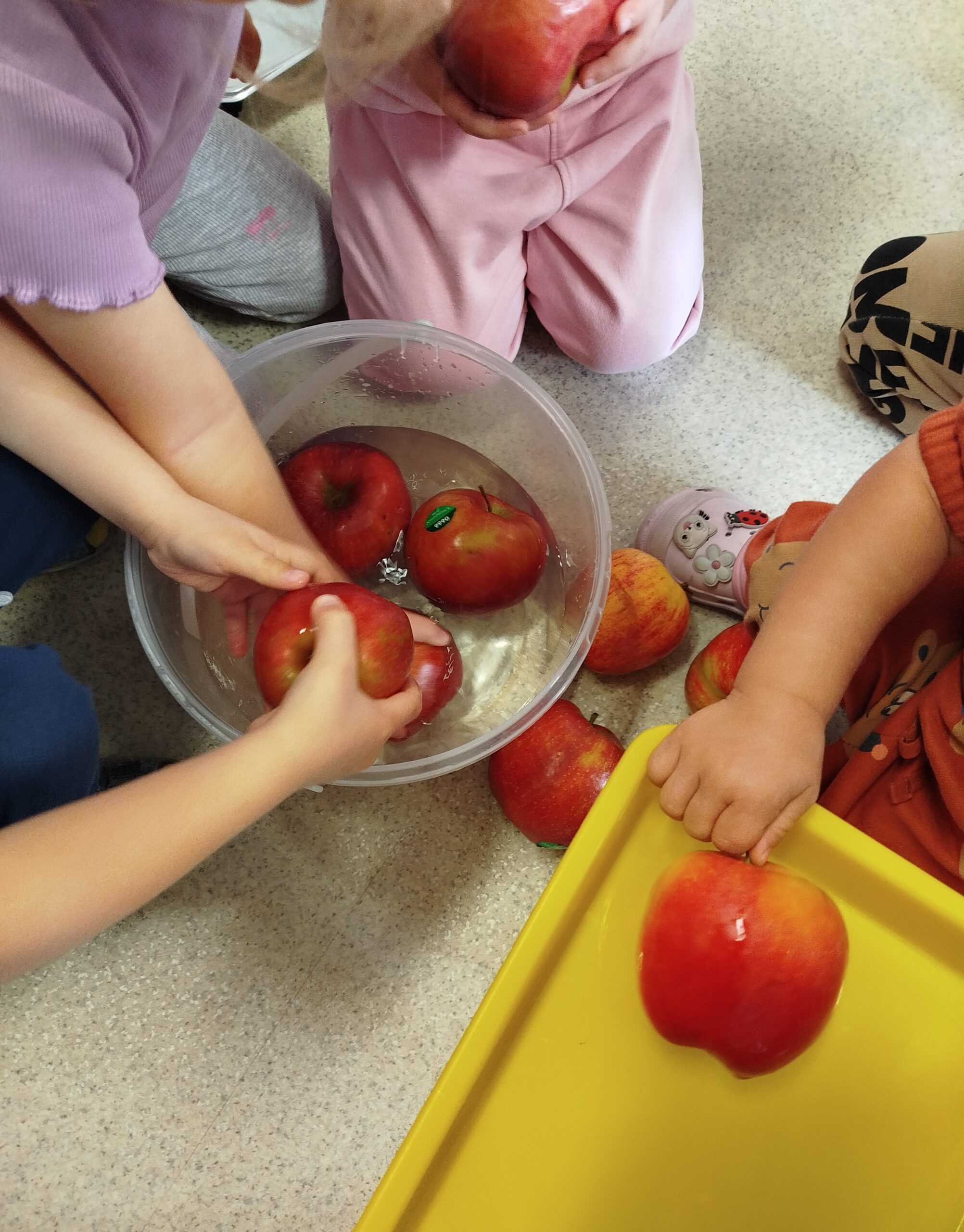 W placówce obchodziliśmy Dzień Jabłka, podczas którego Maluchy degustowały sok z jabłek i tworzyły liczne prace plastyczne. W ramach zajęć kulinarnych wspólnie kisiliśmy ogórki, ucząc się o przemianach zachodzących w żywności. Podczas zajęć dydaktycznych dzieci poznawały kolory i uczestniczyły w zajęciach sensorycznych, rozwijających zmysły i ciekawość świata.