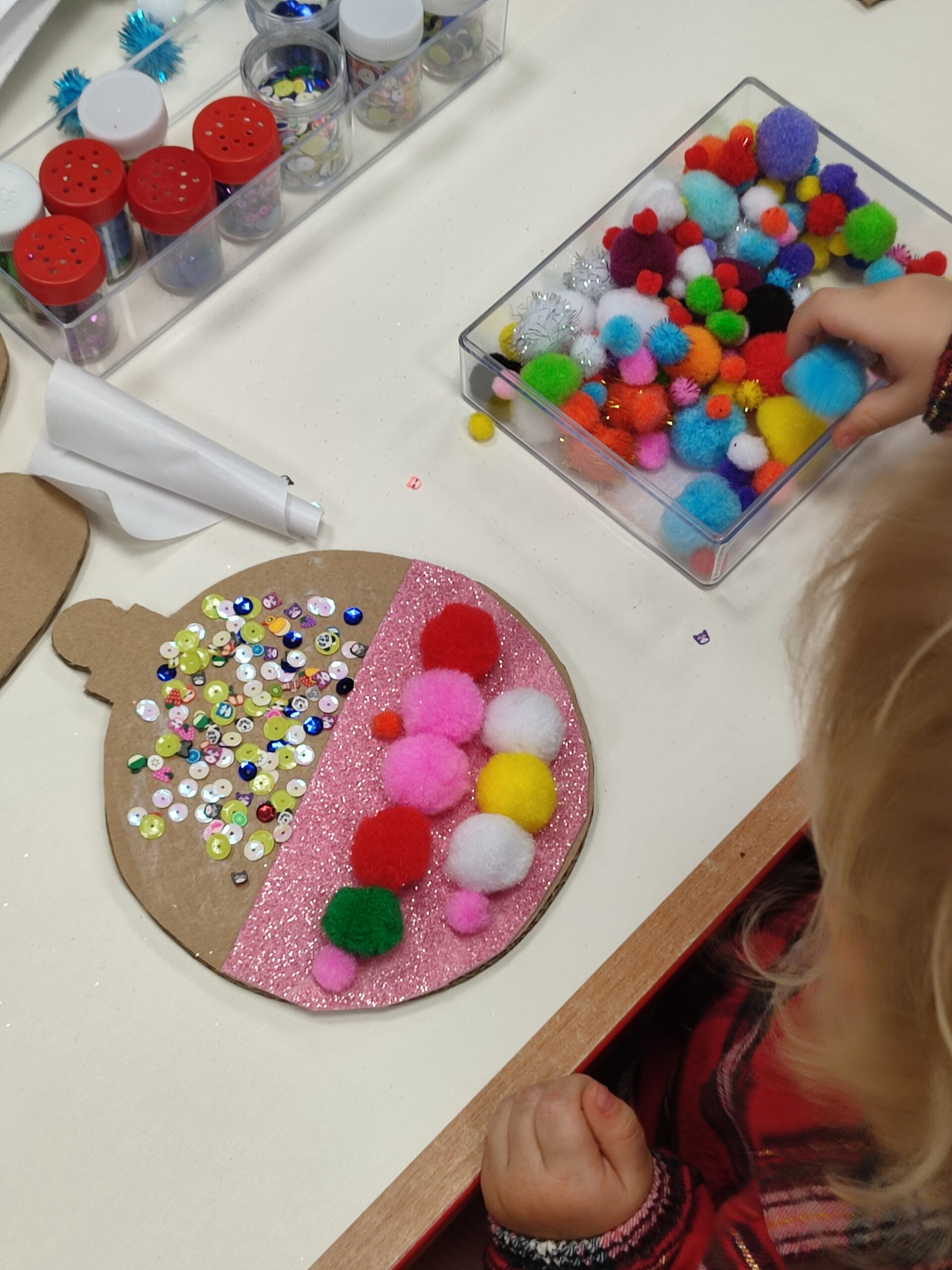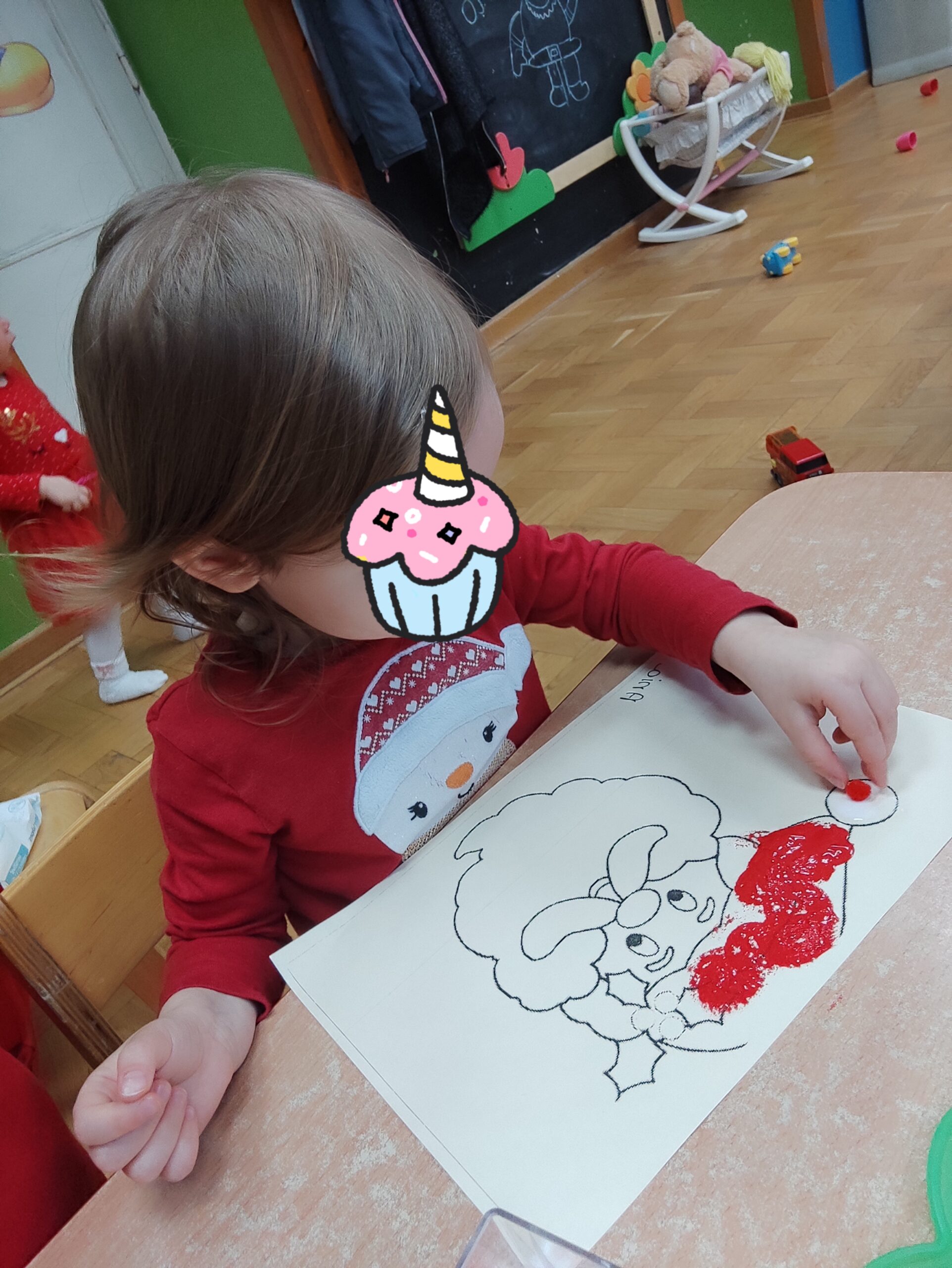 - Watą wyklejaliśmy czapki Mikołajowe,
