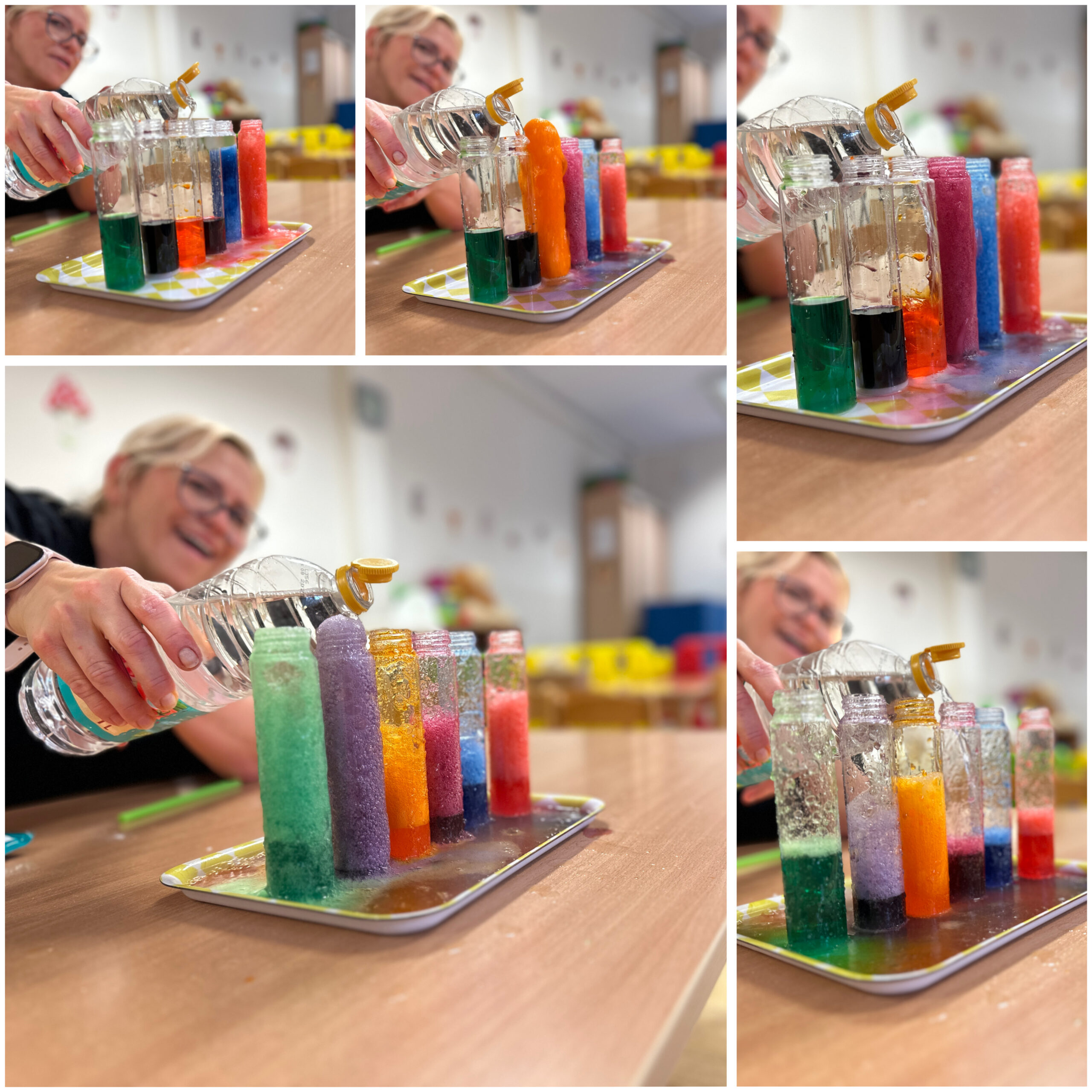 W laboratorium cioci Basi znów zakłębiły się kolorowe eksperymenty – bulgoczące, wirujące i fruwające jak małe naukowe zaklęcia. Dzieci badały świat z powagą małych odkrywców, a każde doświadczenie było jak otworzenie kolejnej magicznej szkatułki wiedzy.
