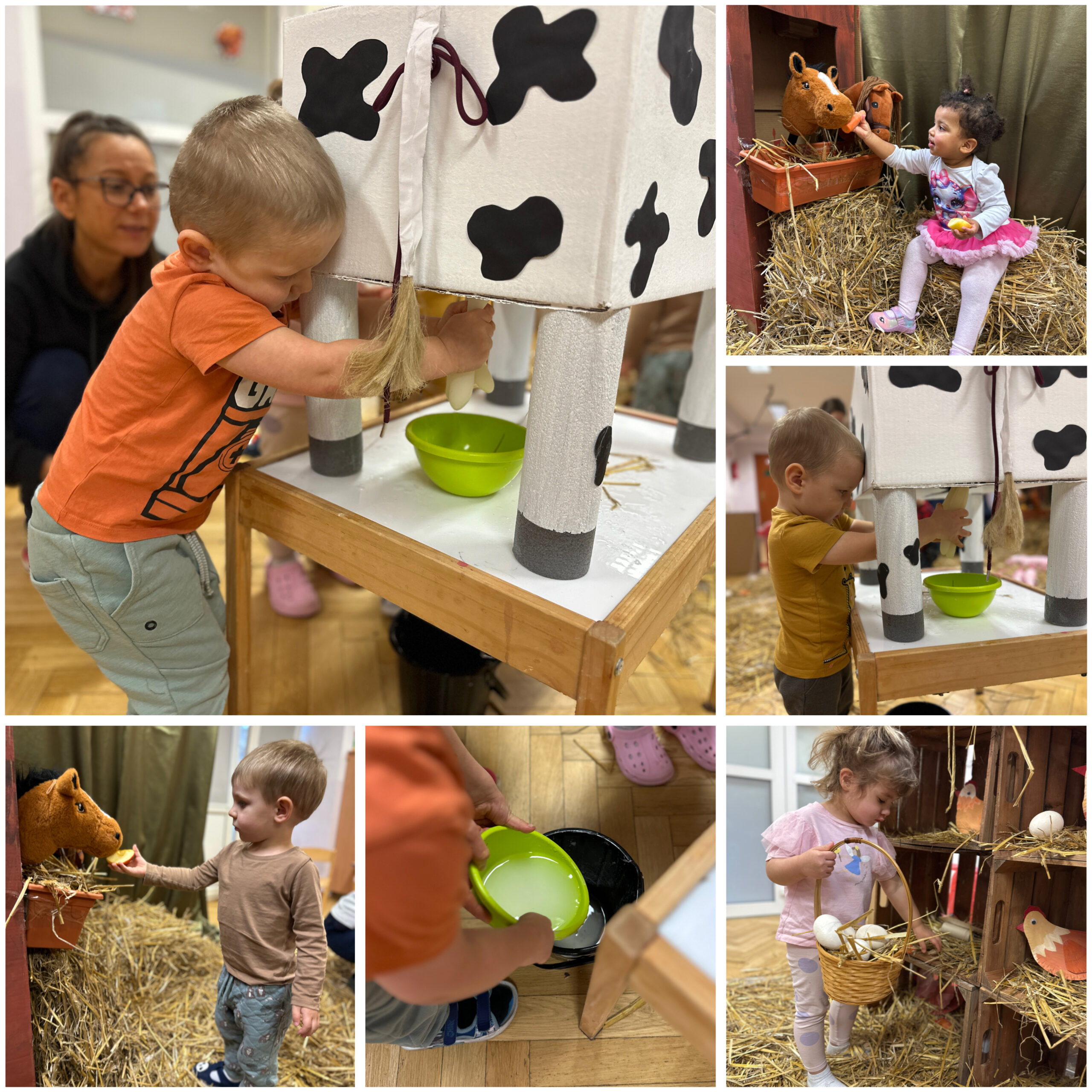 W listopadowej księdze przygód nie mogło zabraknąć wyprawy na farmę. Tam czekały prawdziwe wiejskie cuda – ciepłe jajka prosto z kurnika, chrupiące karmienie świnek i koni oraz możliwość spróbowania dojenia krowy, gdzie kropla po kropli rodziła się mleczna opowieść o tym, jak trafia ono na nasze stoły.