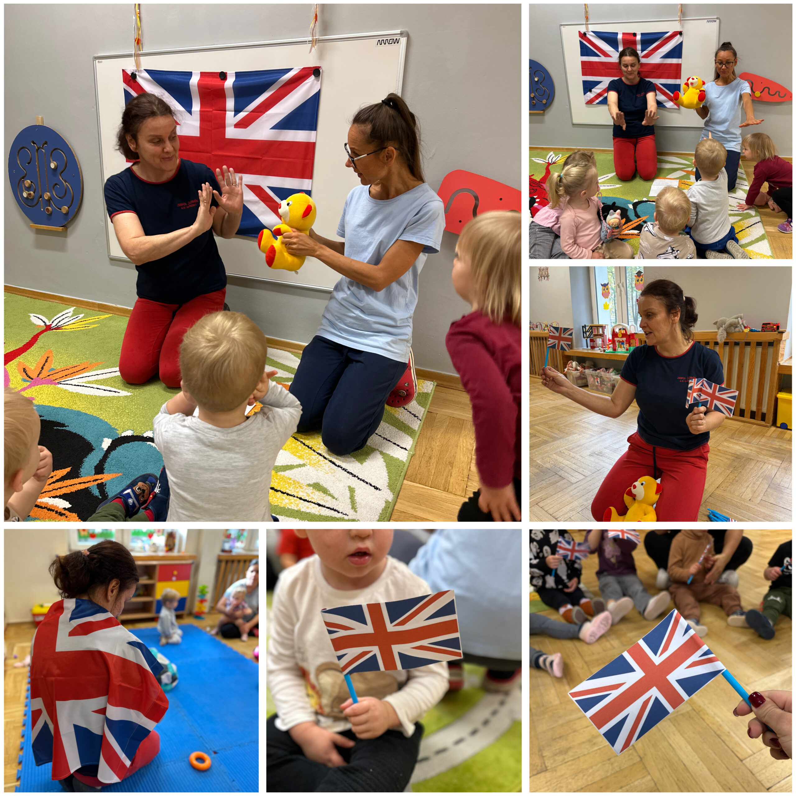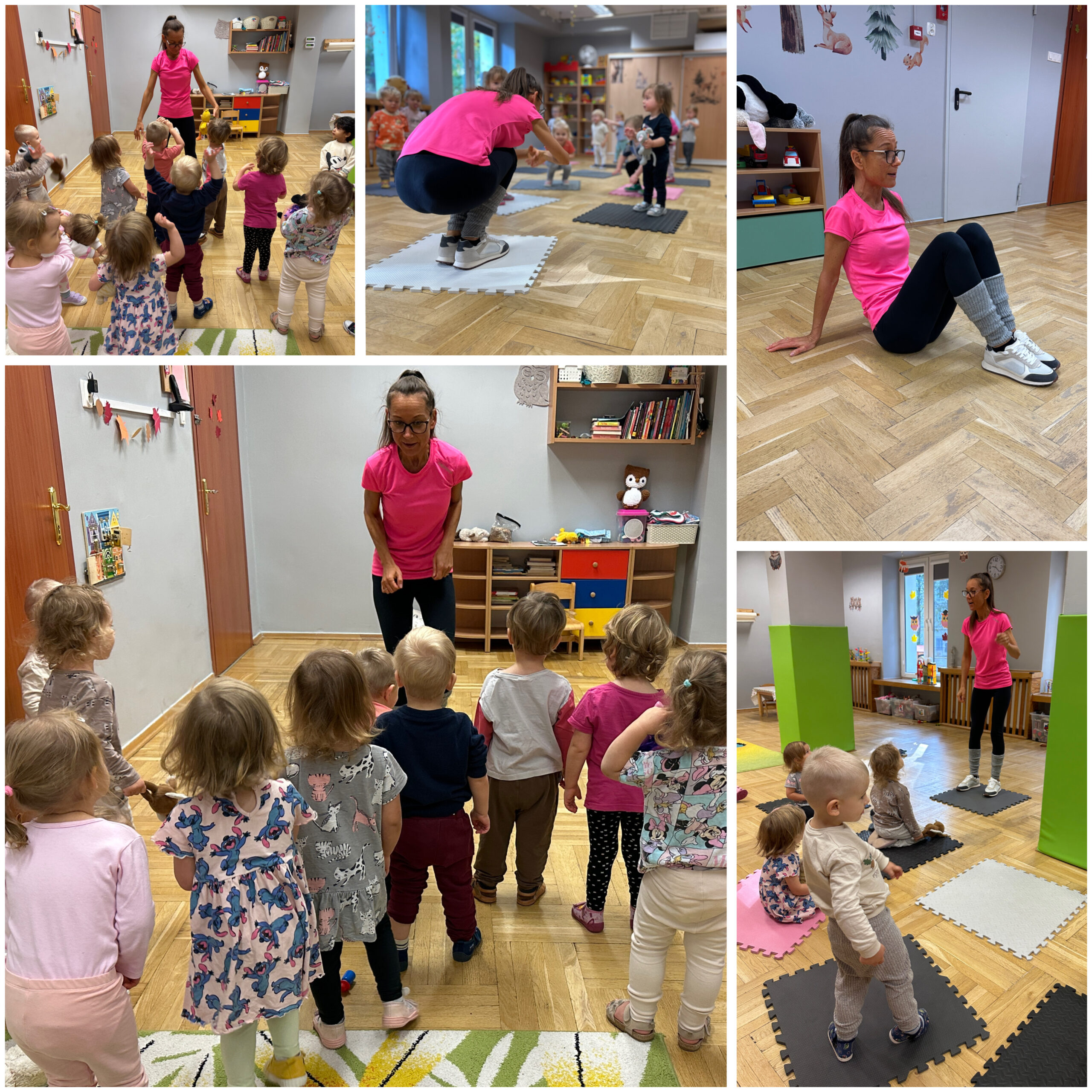 Nie zabrakło również zajęć prowadzonych przez nasze utalentowane ciocie. Ciocia Liliana wprowadziła dzieci w świat języka angielskiego poprzez radosne zabawy, nowe słówka i wesołe rymowanki. Natomiast ciocia Dominika zaprosiła maluszki na pełne energii zajęcia zumby oraz relaksacyjne sesje jogi, łącząc ruch, muzykę i świetną zabawę.