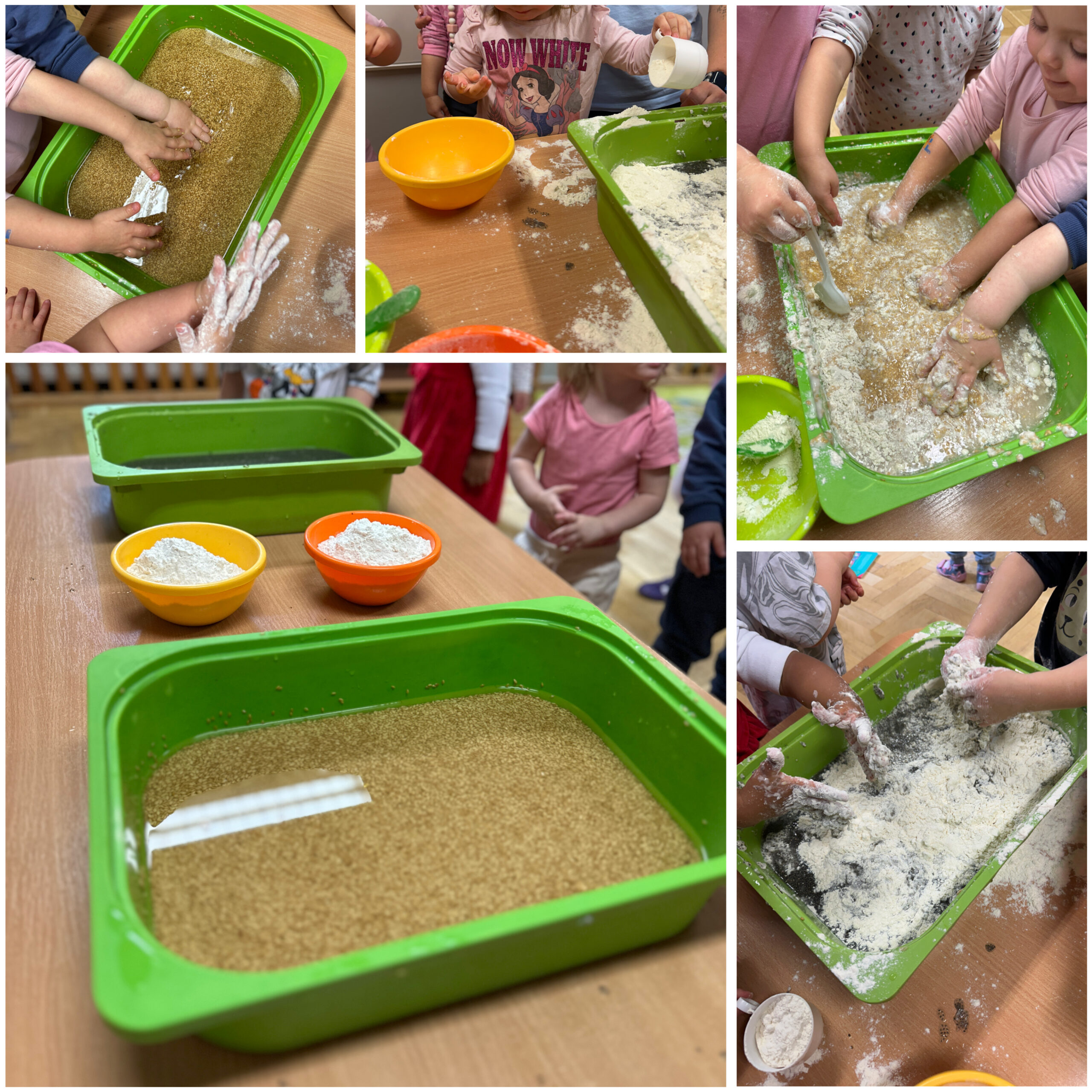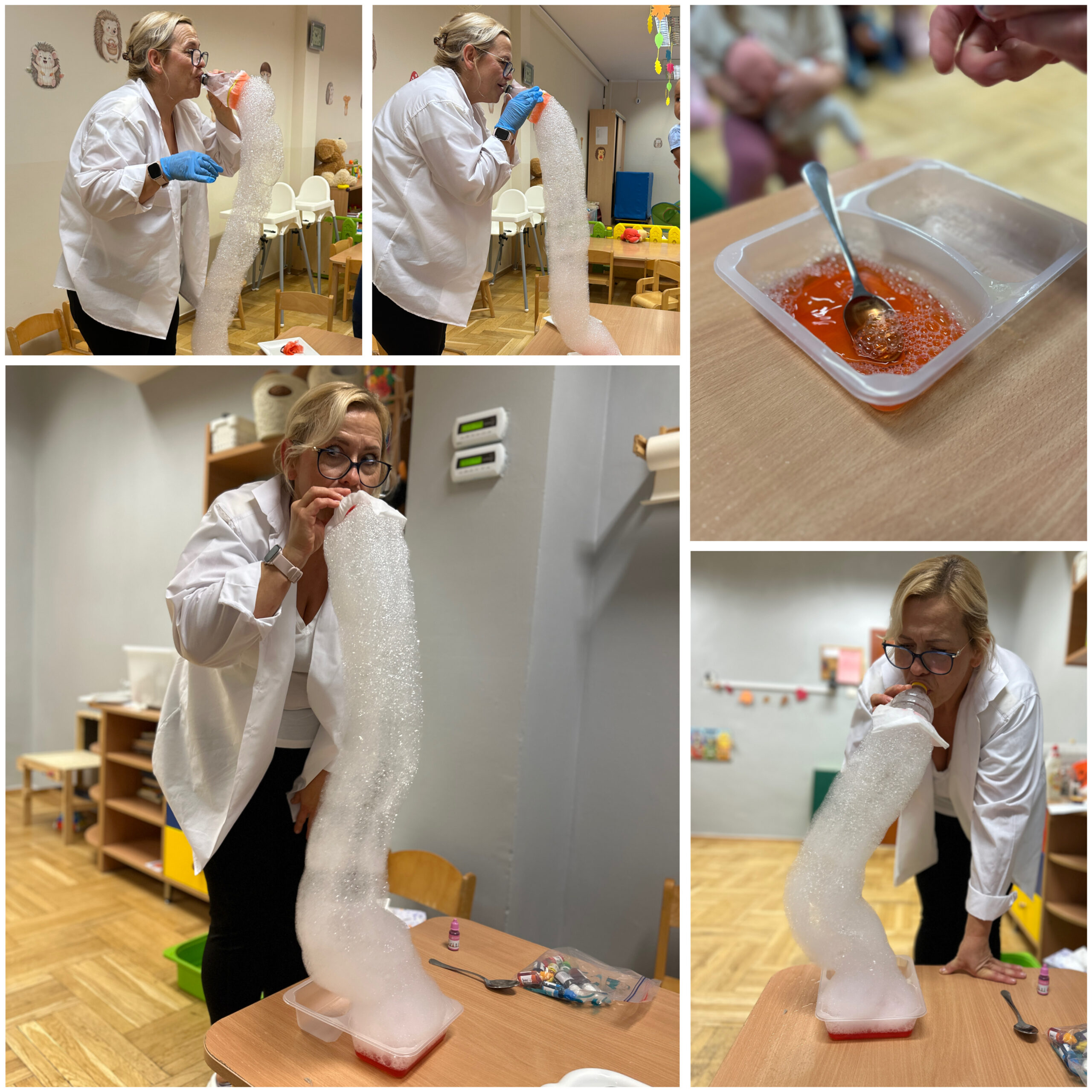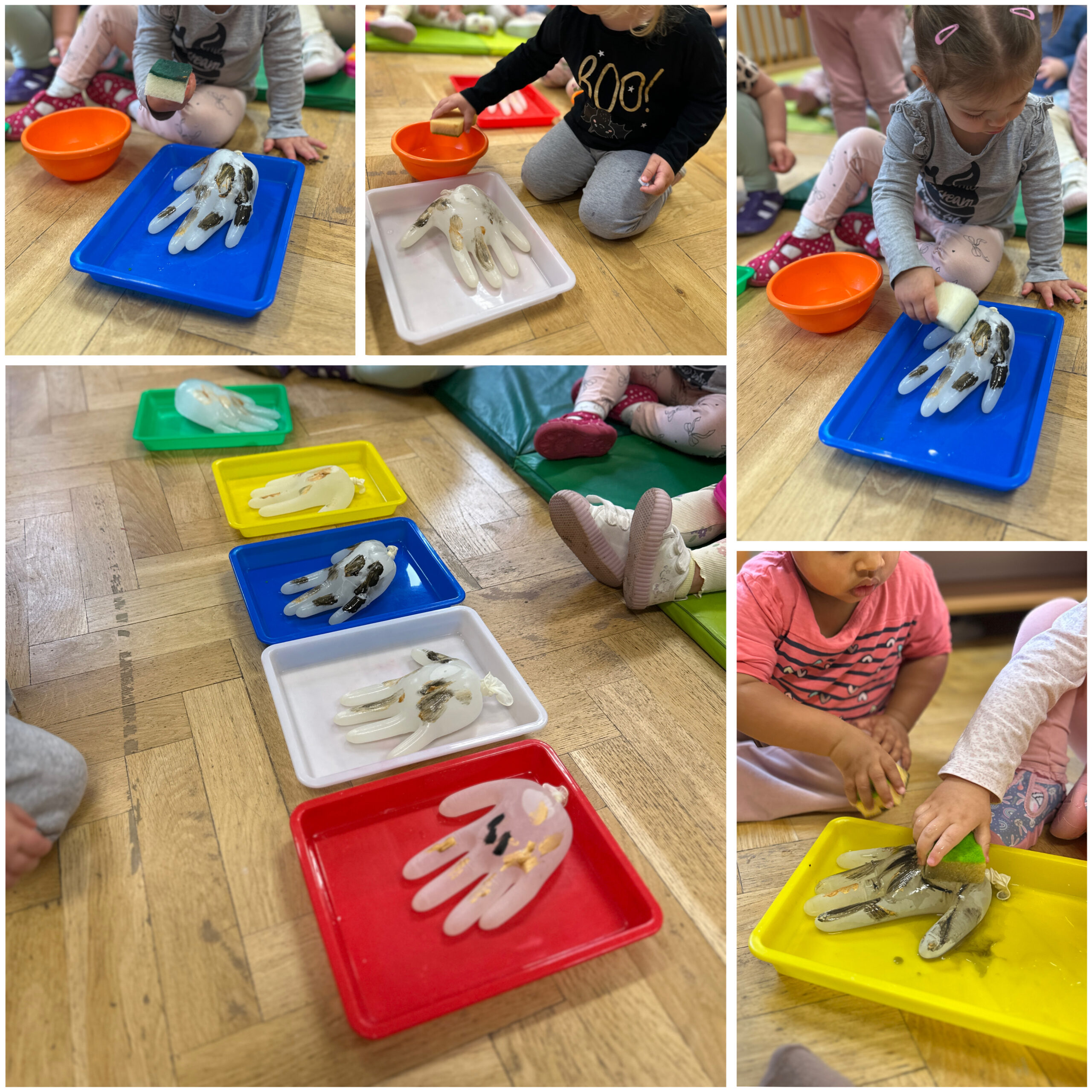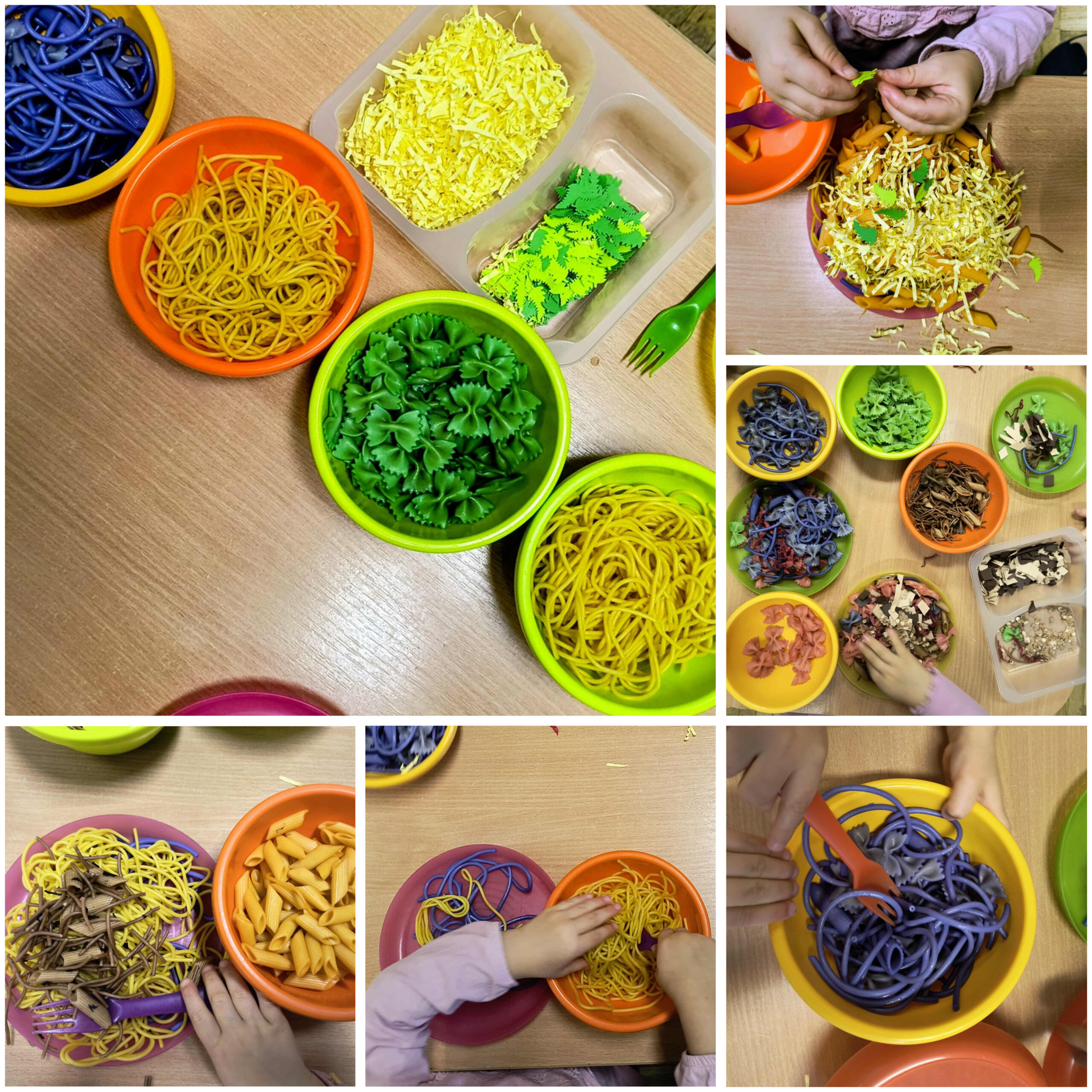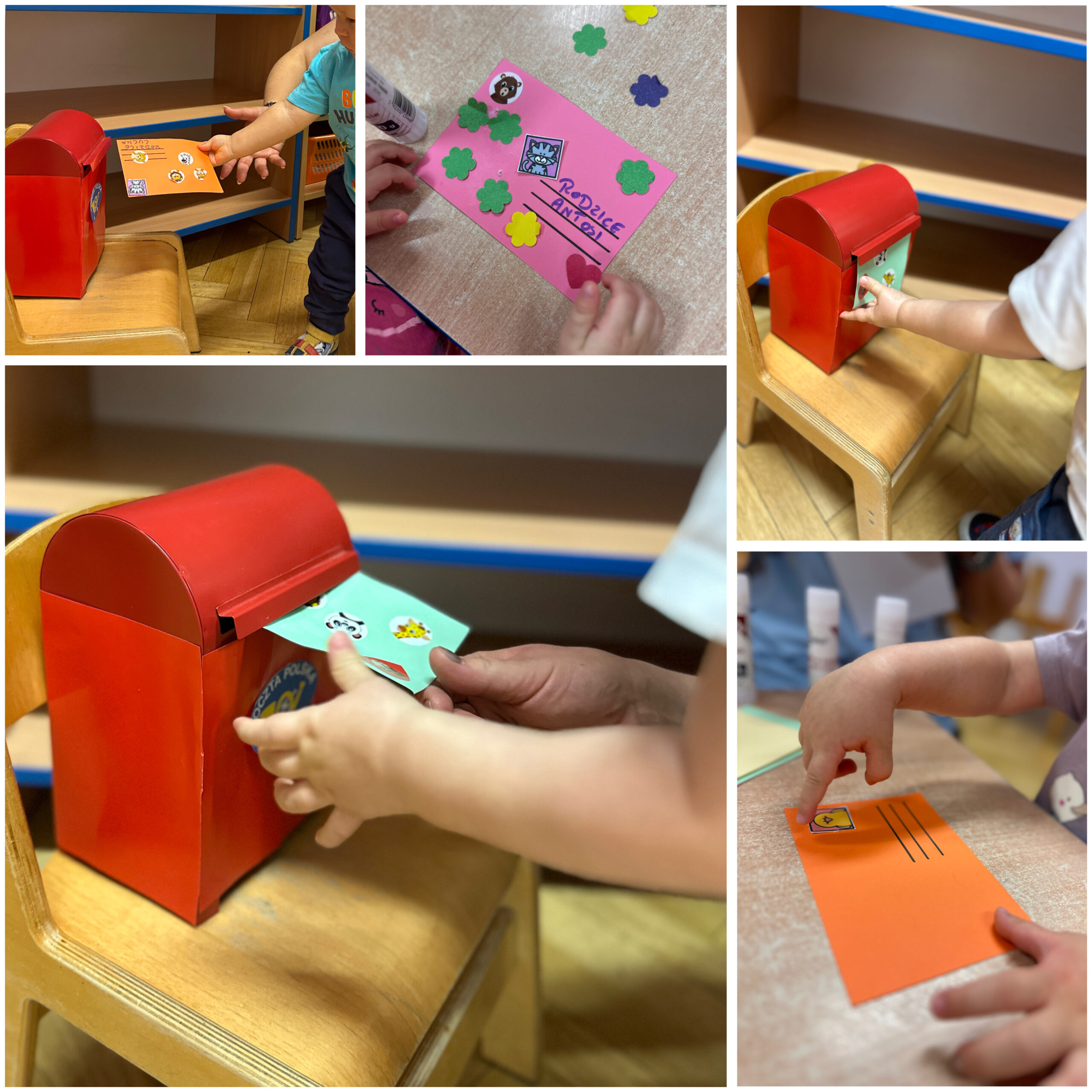 W październiku obchodziliśmy również kilka ciekawych świąt tematycznych. Światowy Dzień Mycia Rąk był doskonałą okazją do utrwalenia zasad higieny i dbania o zdrowie. Podczas Światowego Dnia Makaronu czekało na dzieci mnóstwo zabaw, zajęć sensorycznych oraz kreatywnych prac plastycznych z wykorzystaniem makaronu. Natomiast Dzień Poczty Polskiej pozwolił maluszkom poznać pracę listonosza, pobawić się w wysyłanie listów oraz stworzyć własne, wyjątkowe „znaczki”.