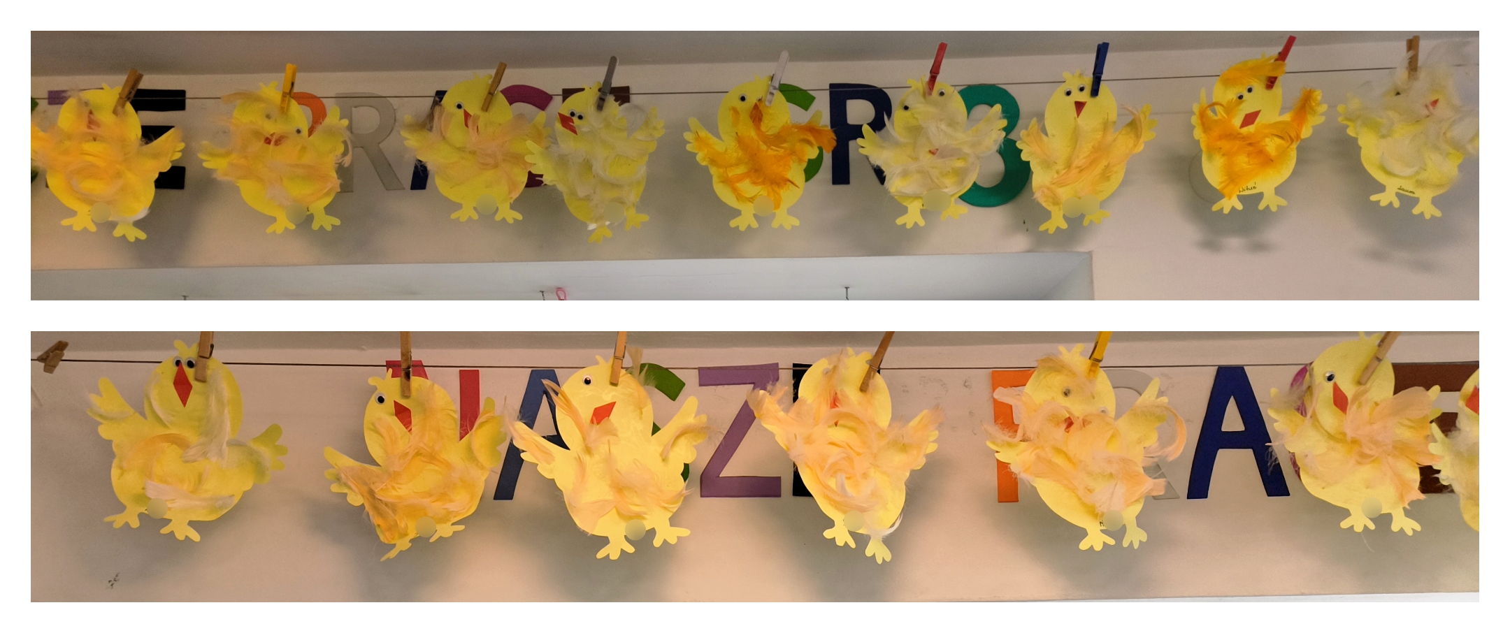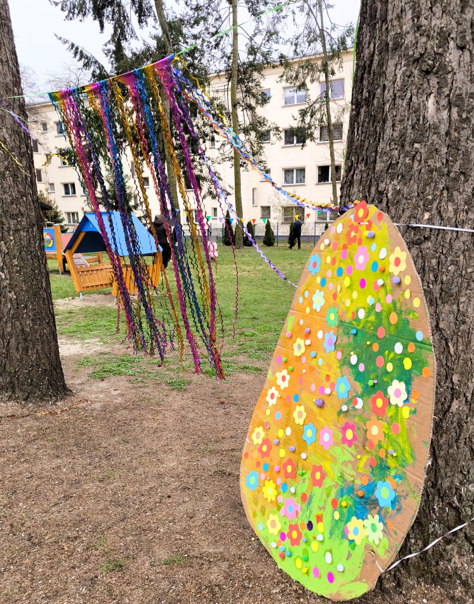 W żłobku odbyły się również warsztaty świąteczne. Rodzice wraz z dziećmi wzięli udział w poszukiwaniu jajeczek ukrytych w naszym ogrodzie przez wielkanocnego zajączka, co dostarczyło wszystkim wielu uśmiechu i niezapomnianych chwil.