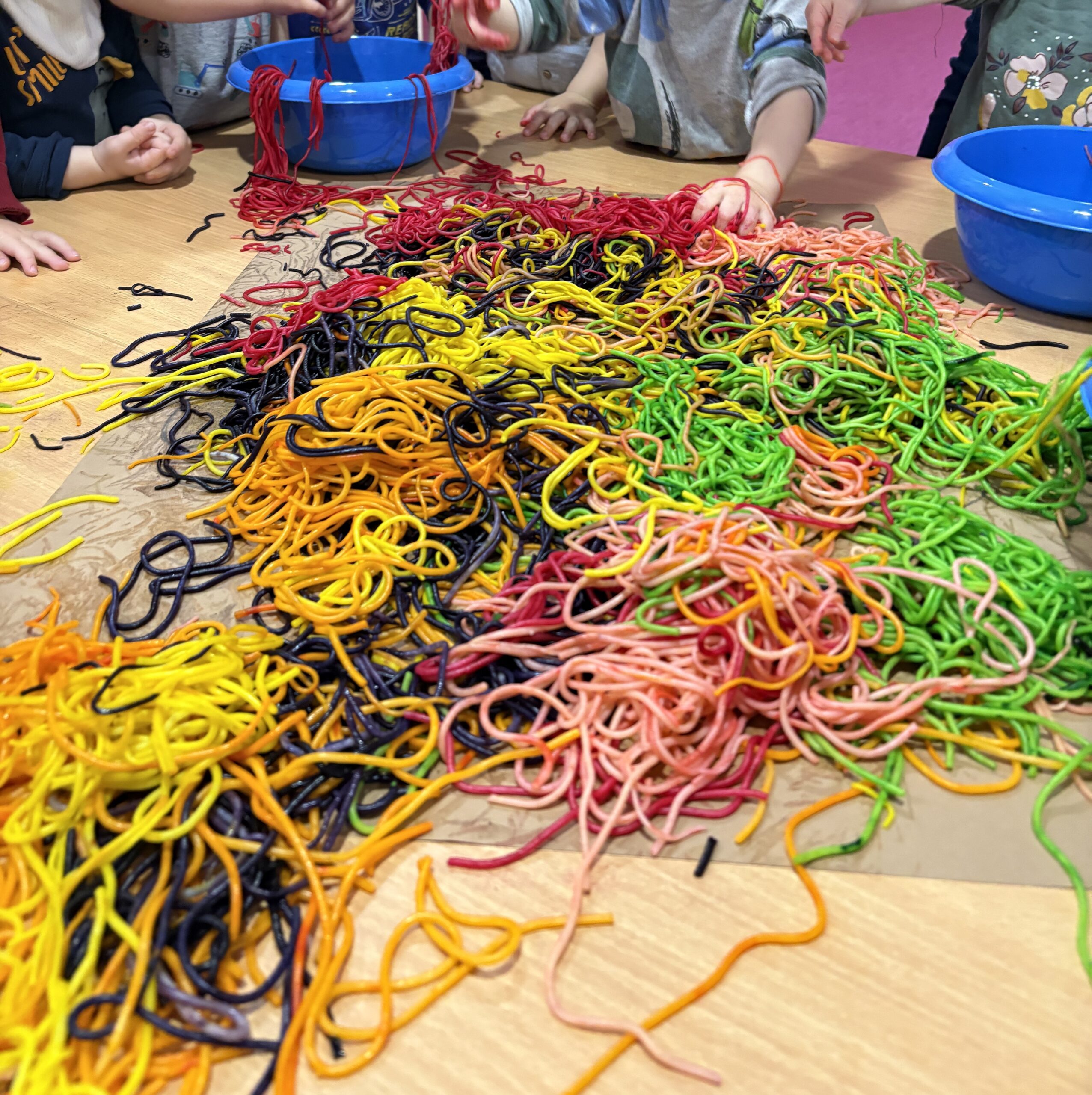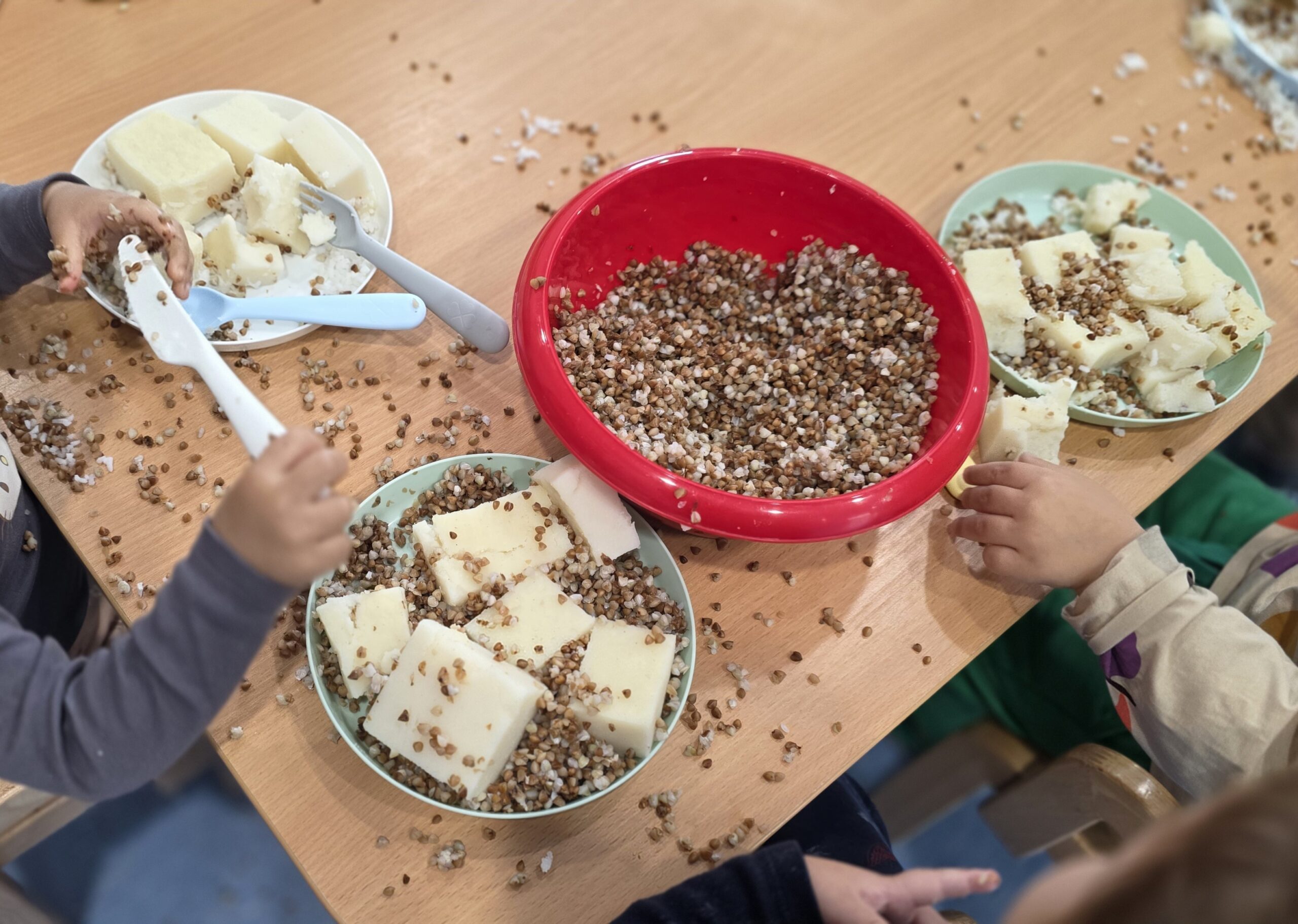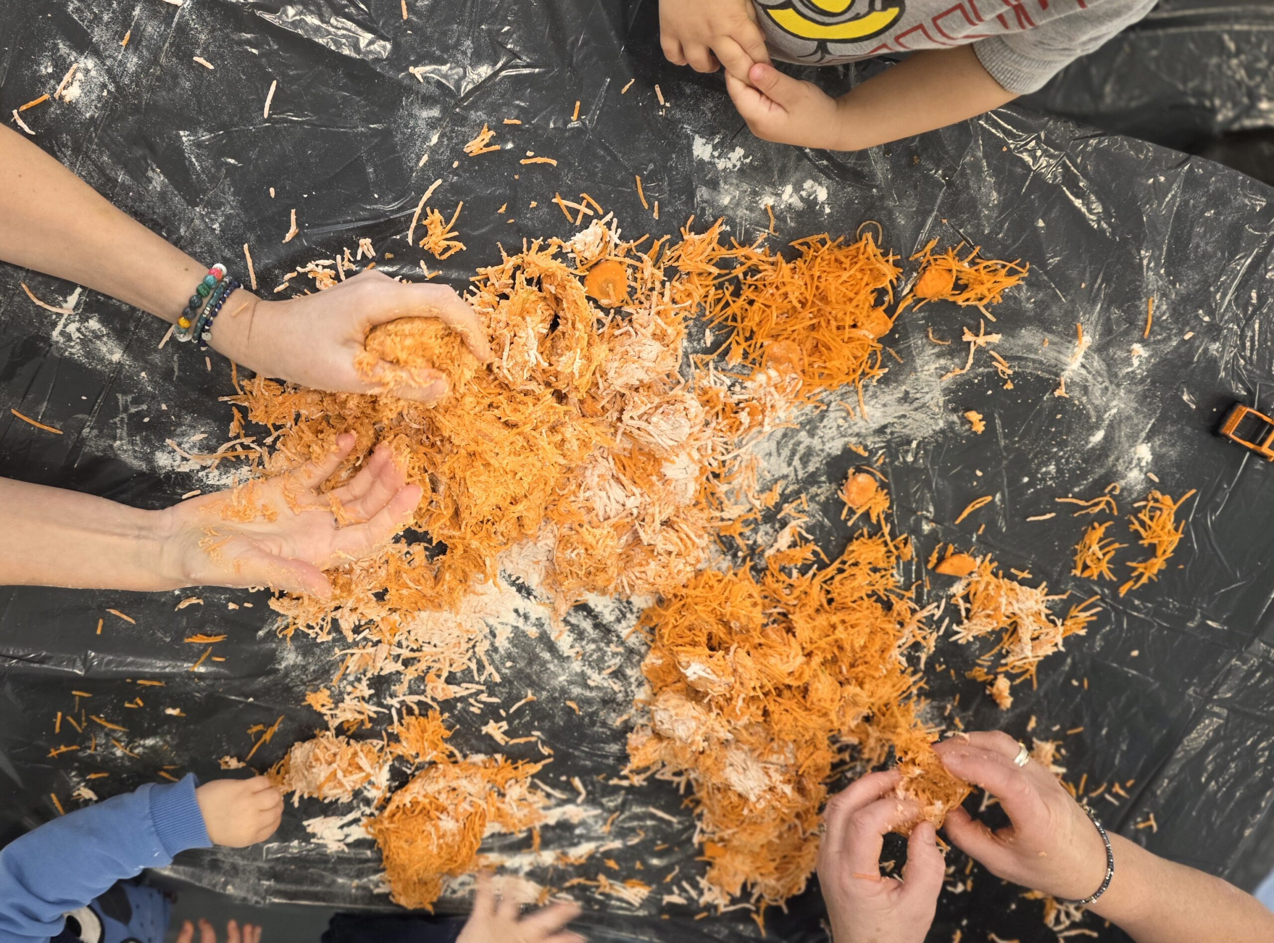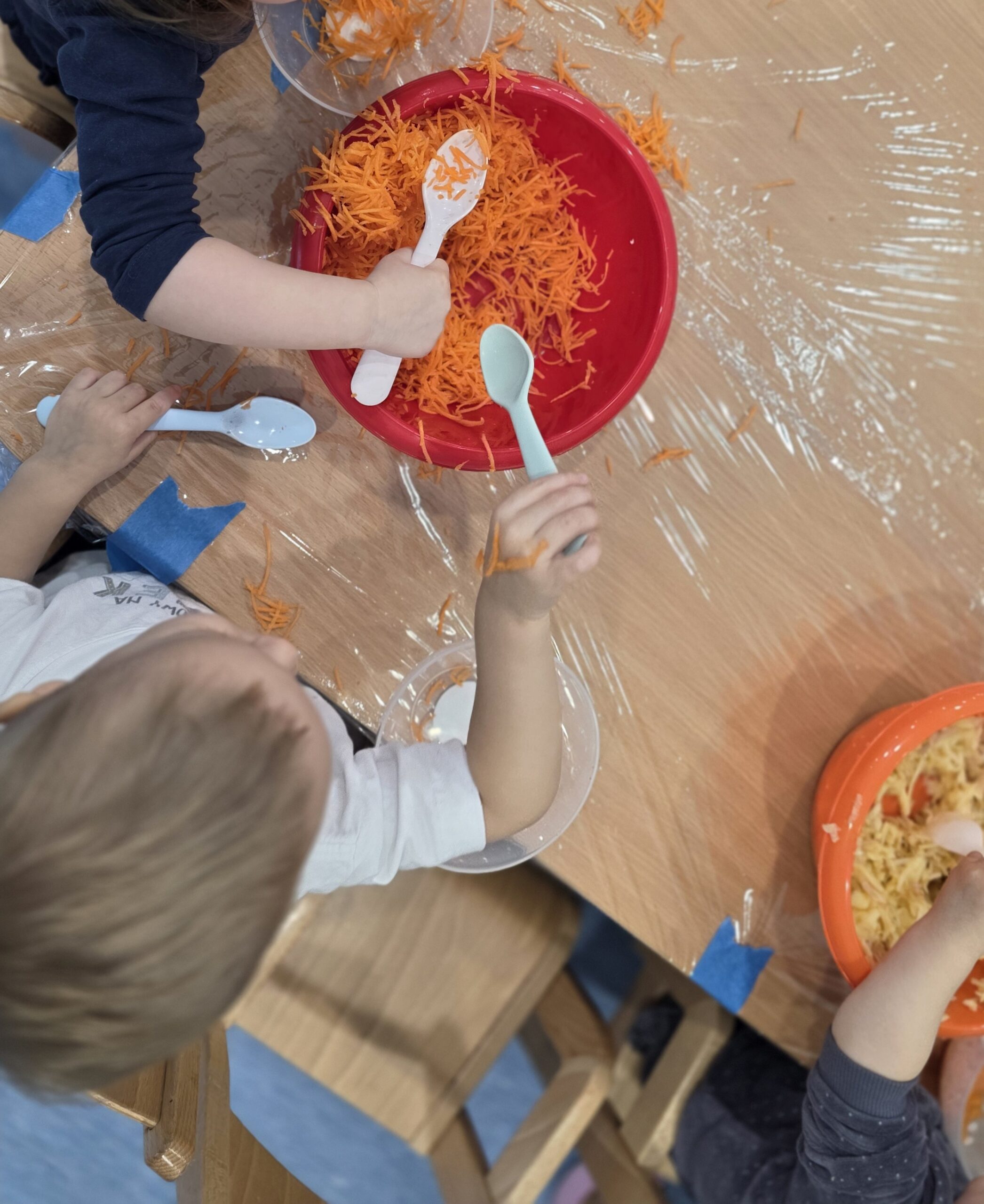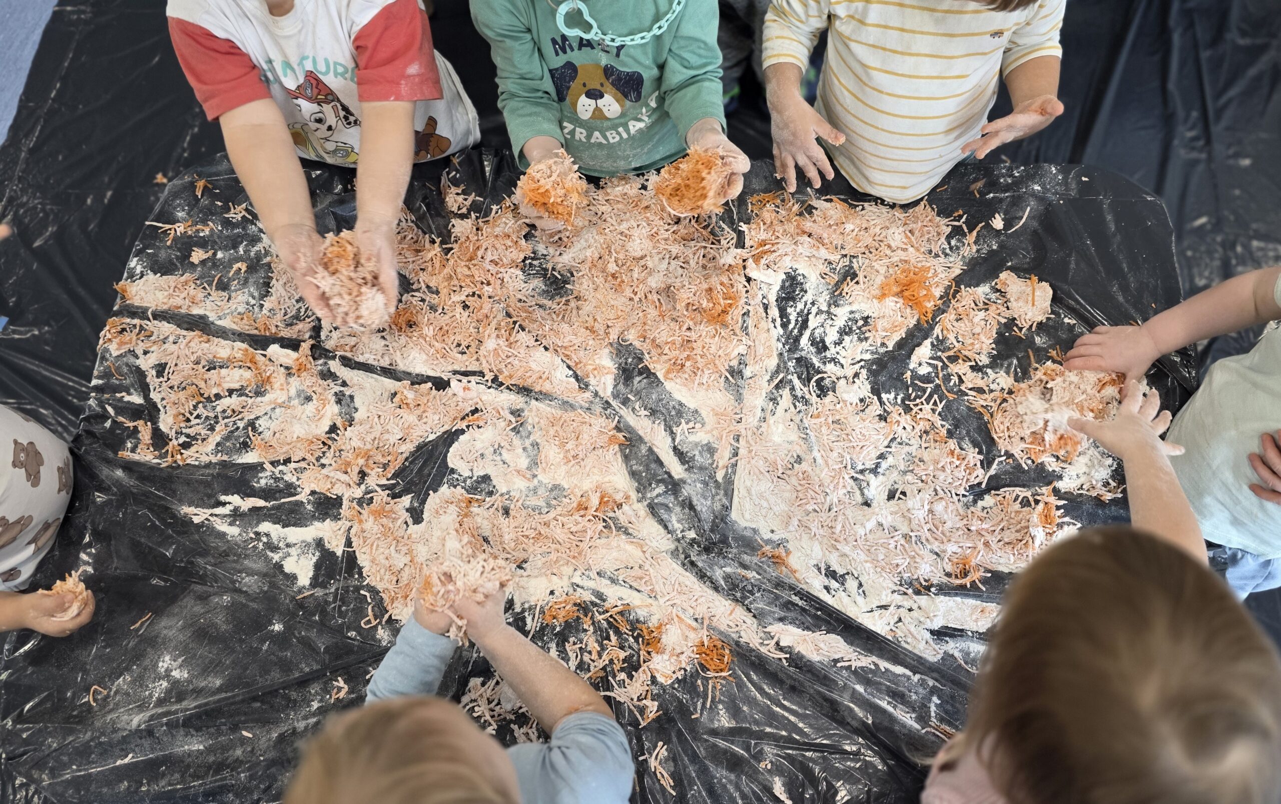 Maluchy uczestniczyły w zajęciach sensorycznych i sensoplastycznych inspirowanych jesiennymi warzywami i pogodą, a także wykonały związane z tematem prace plastyczne.