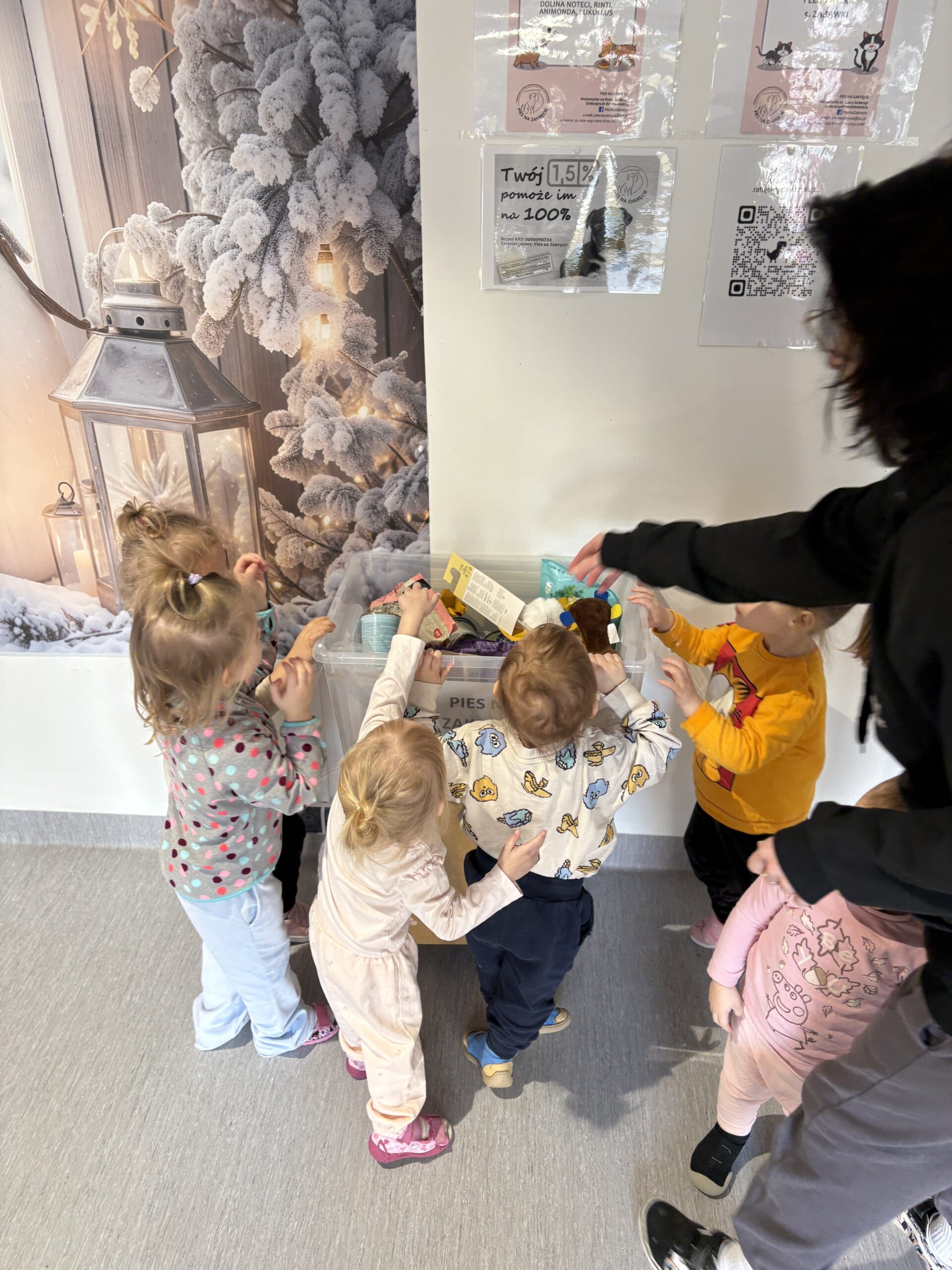 W lutym przeprowadziliśmy także akcję „Luty pełen serca”, wspierającą organizację „Pies na zakręcie”. Dzięki zaangażowaniu dzieci i rodziców udało się zebrać karmę, zabawki oraz inne potrzebne dary dla podopiecznych fundacji. Serdecznie dziękujemy wszystkim za okazane serce i pomoc!