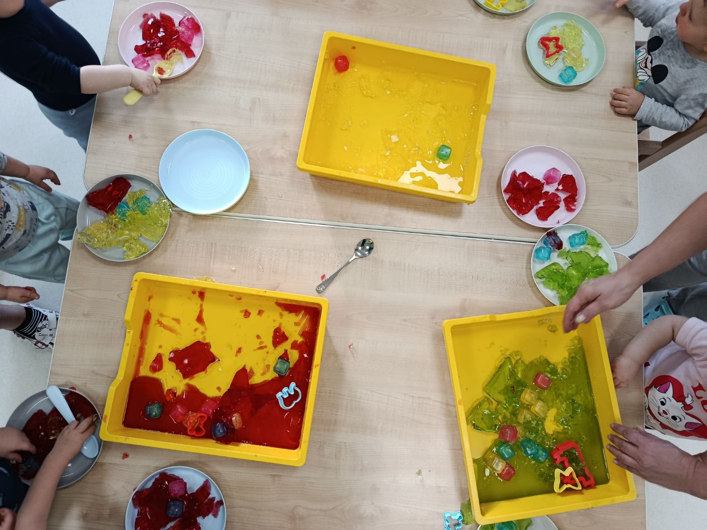- Wycinaliśmy z galaretki zimowe kształty- przy pomocy foremek do pierniczków,