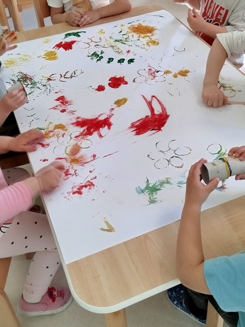- stemplowaliśmy kwiaty za pomocą rolek papieru,