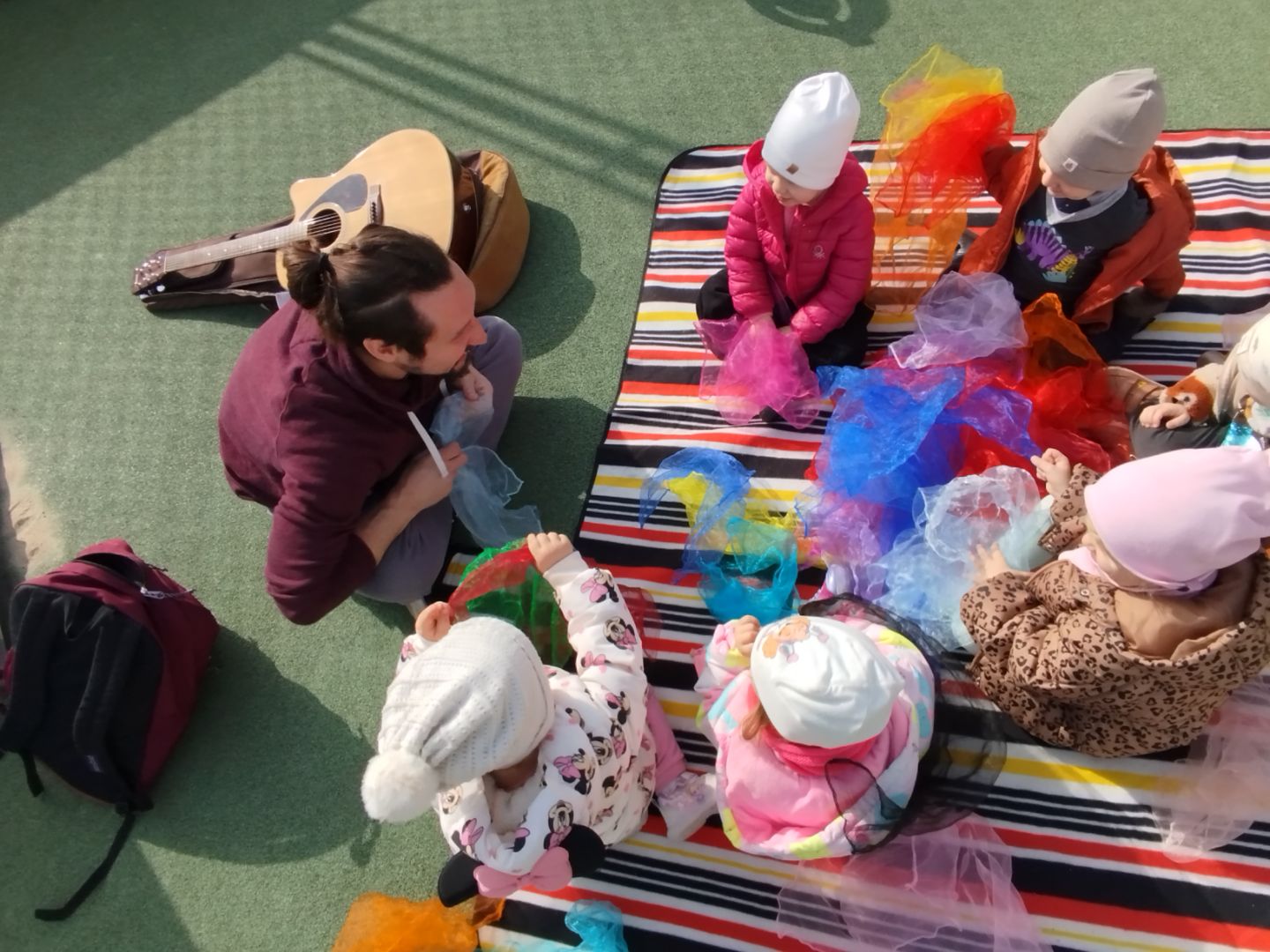 - tańczyliśmy z kolorowymi chustami,