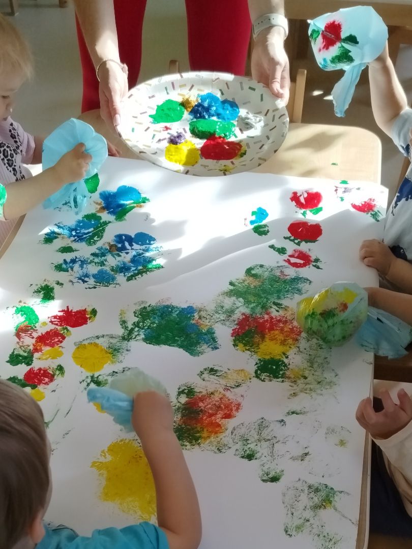 - Malowaliśmy wiosenną łąkę przy pomocy woreczków foliowych,